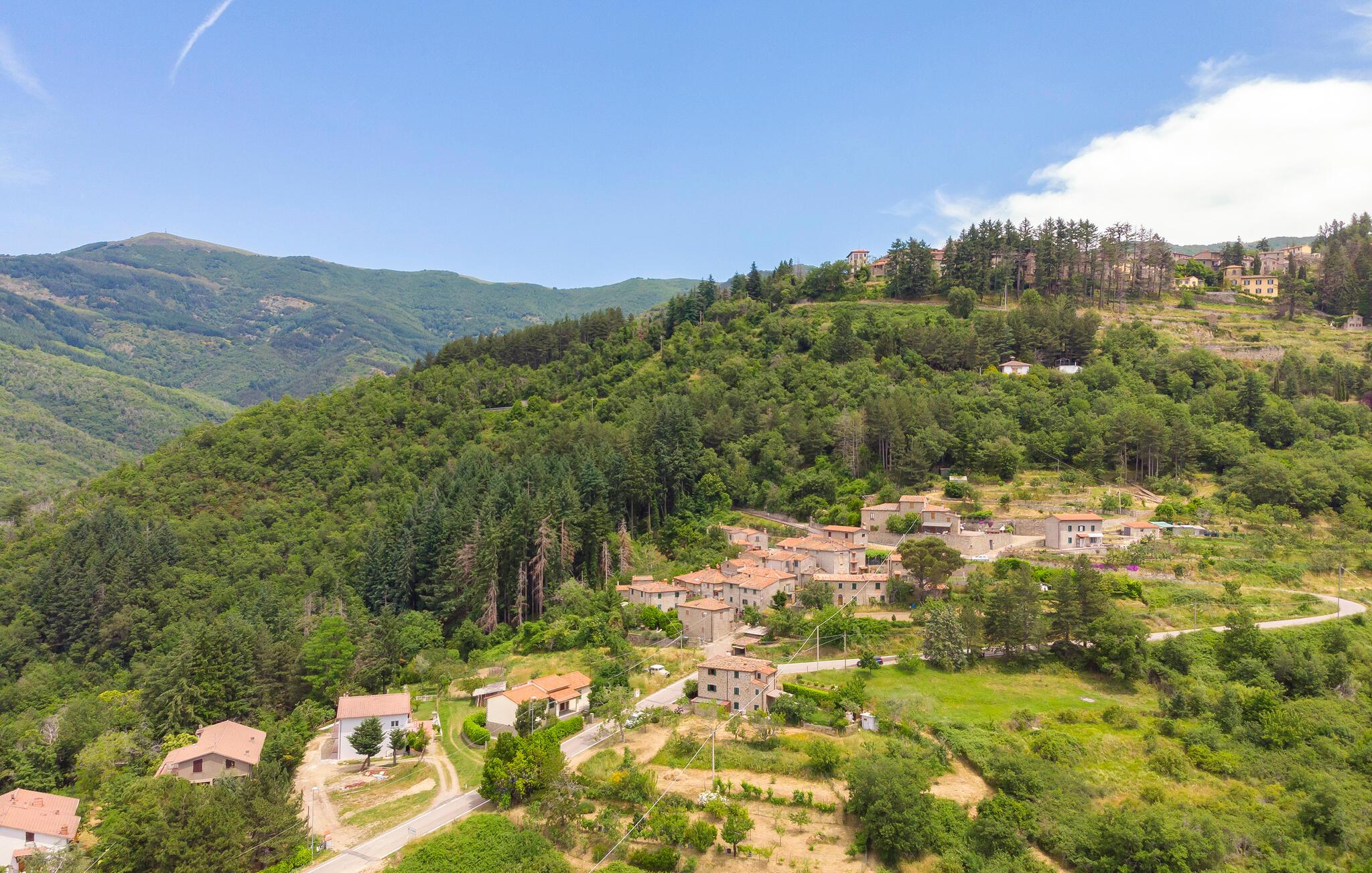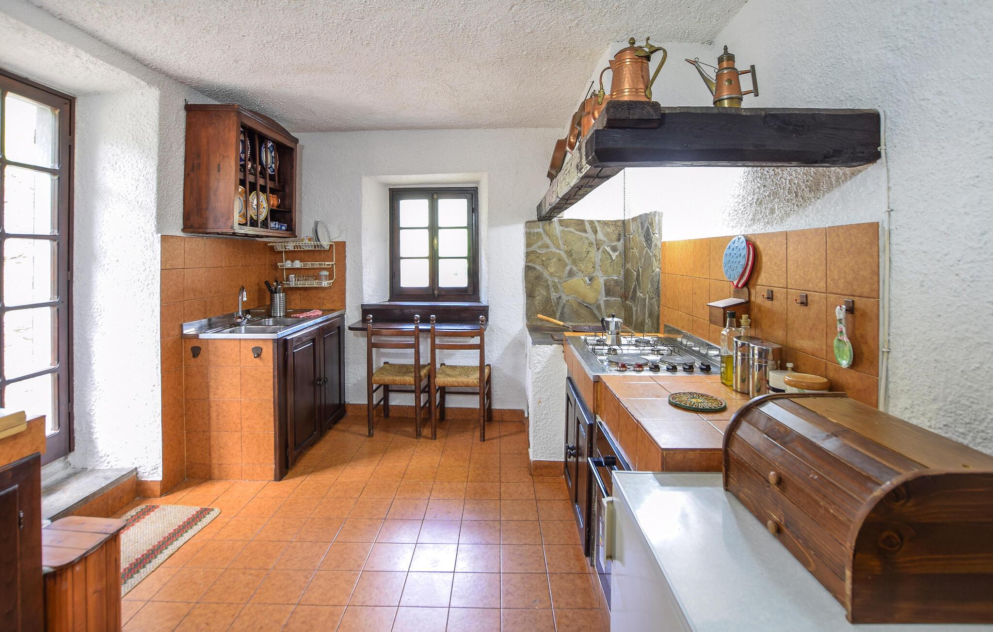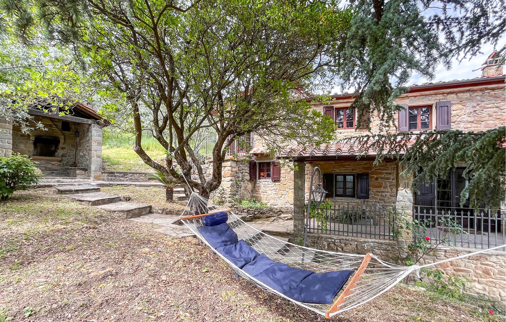 Dette charmerende hus i Loro Ciuffenna, i hjertet af Valdarno, lægger op til en vidunderlig ferie fuld af afslapning og spændende aktiviteter. Huset fordeler sig over tre plan og har plads til en stor familie. Inde i huset finder I en hyggelig stue med traditionelle træbjælkelofter og en pejs, der bidrager med hyggelig varme på kølige aftener. Spiseområdet er også i rustik stil, og her får I en vidunderlig udsigt over det omkringliggende landskab. Glæd jer til dagens måltider og atmosfæren i denne historiske bygning.
