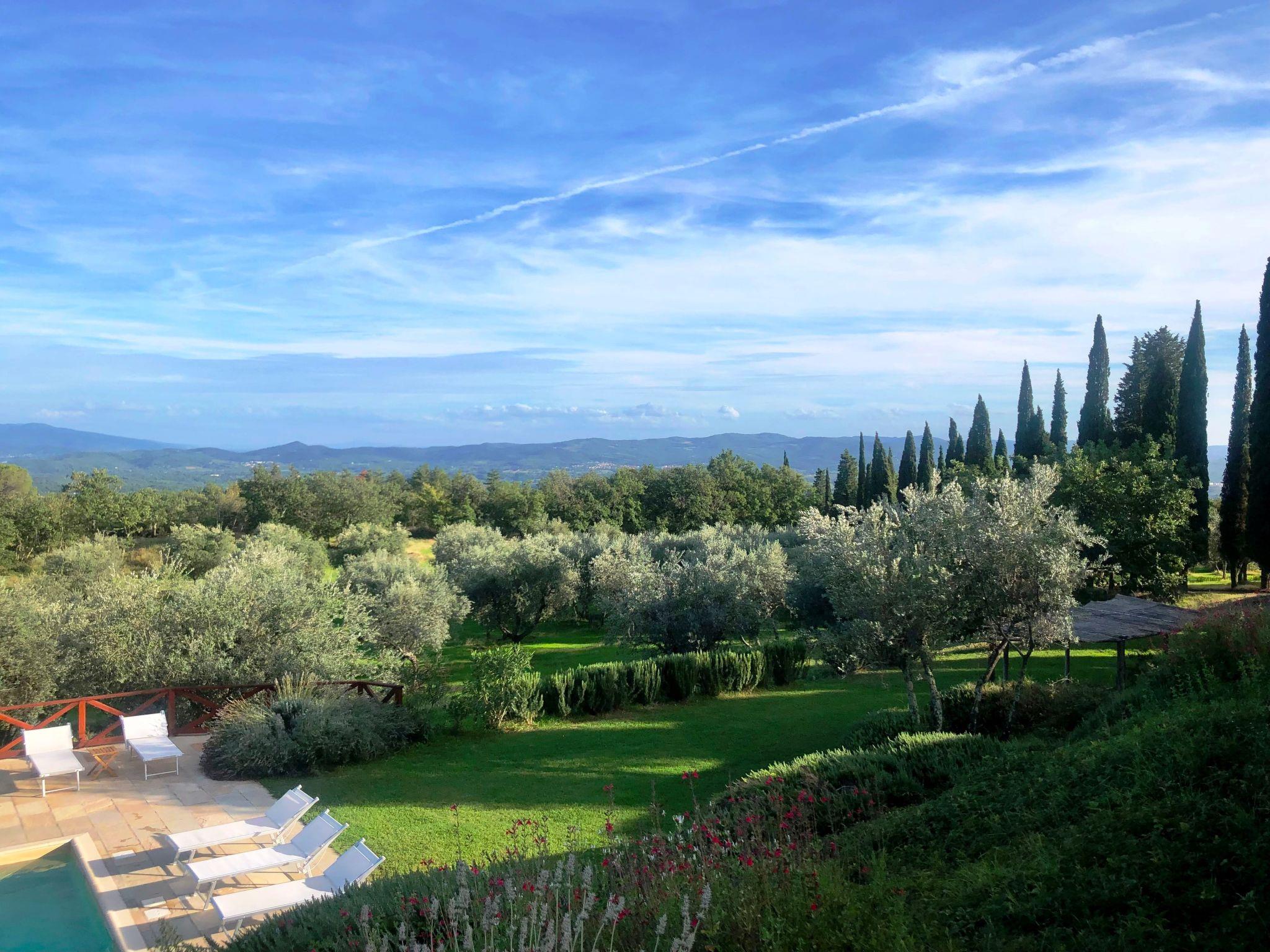 The house, on the Poggio Corsucci estate, belongs to an articulated and renovated farmhouse complex with every comfort in a context of absolute privacy and confidentiality. Set in a large panoramic garden with private swimming pool, it offers a view of the Tuscan countryside of rare beauty. An excellent starting point for the most renowned tourist and eno-gastronomic destinations in the region. Barycentric position between Florence Arezzo and Siena, one and a half hours from the sea, from Pisa Lucca and Livorno only two hours from Rome.