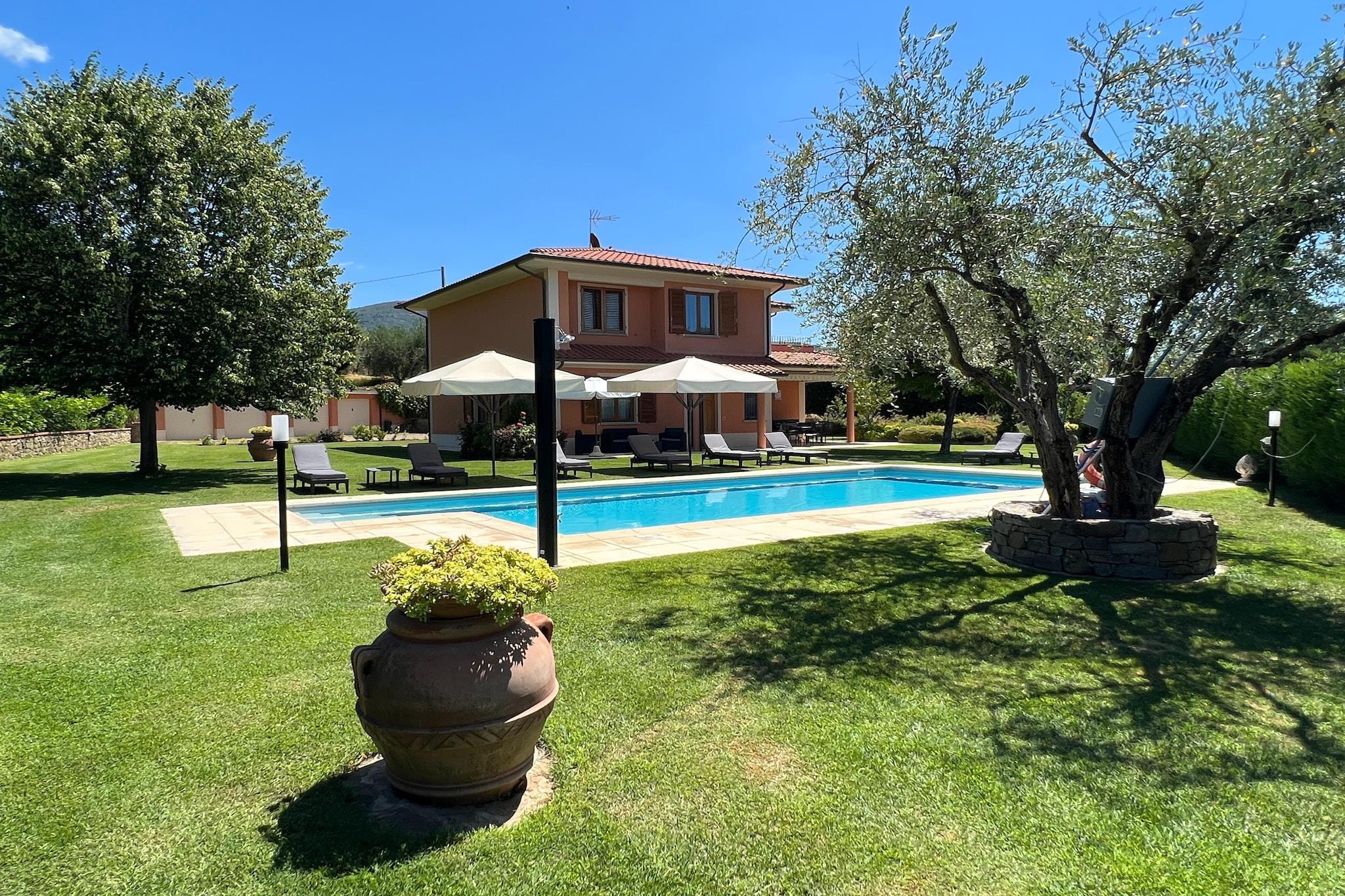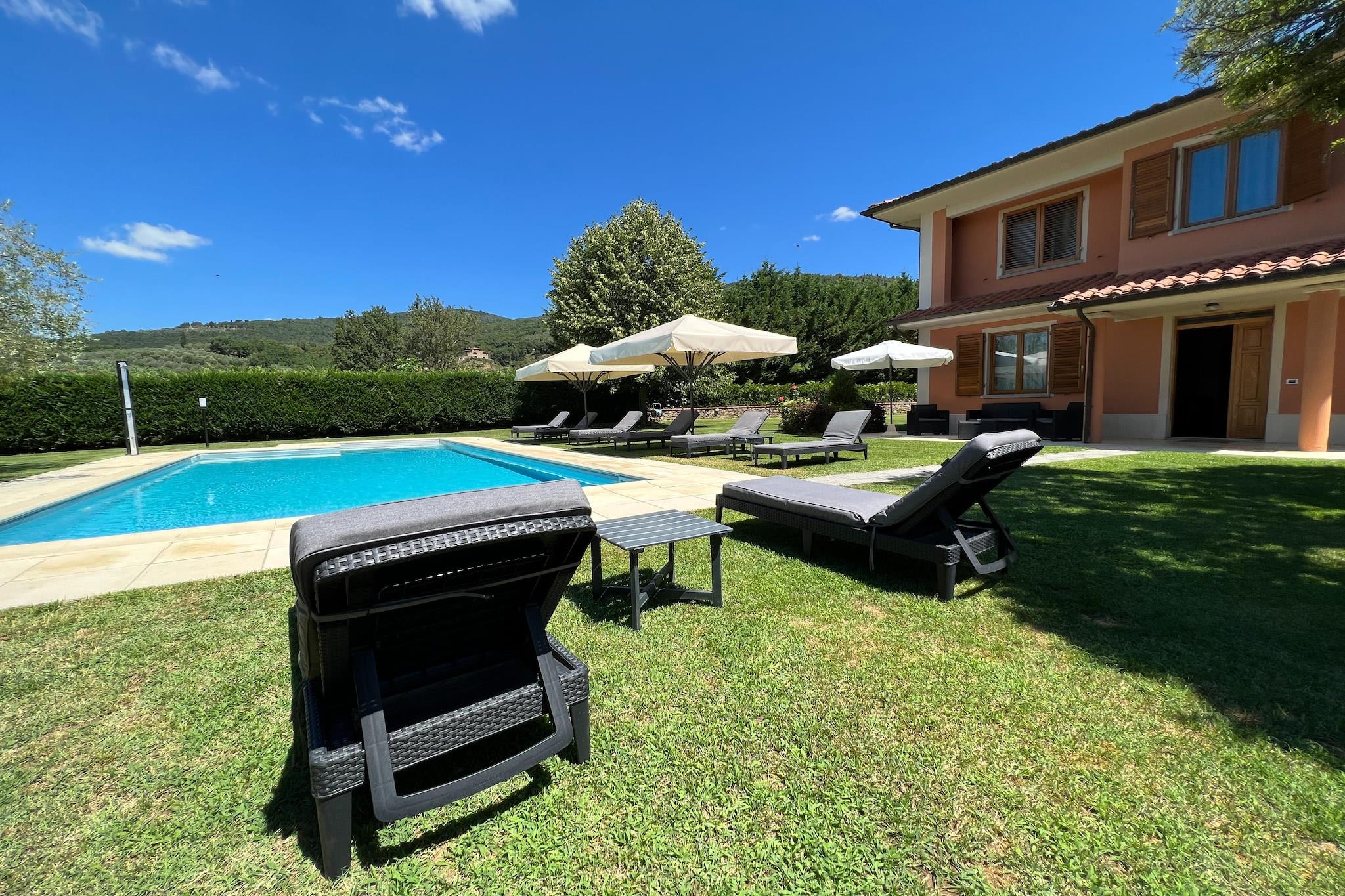 Spacious and well-kept, this is a 5-bedroom villa in Loro Ciuffenna with a private swimming pool. It is panoramically situated in the Tuscany hills, between Arezzo and Florence. The villa is perfect for a large family, two smaller families, or a group of up to 12 friends. _x000D_ _x000D_ In the direct surrounding, you will find many typical villages with lovely little restaurants and authentic architecture. At 2 km, you have the town center for enjoying the street life and strolling. Restaurants and supermarkets are also at 2 km. The lake at 5 km is great to enjoy sunsets. From here, it is easy to reach the towns of Florence, Arezzo, and Siena. _x000D_ _x000D_ The villa offers all the comfort and has ample space for everyone. It has a private fenced garden for relaxing or playing with children. You can cook delicious recipes in the large kitchen. There is a verandah and a balcony to enjoy your meals. There is a garage with space for 3 cars. A children's bed and a high chair are provided on request.