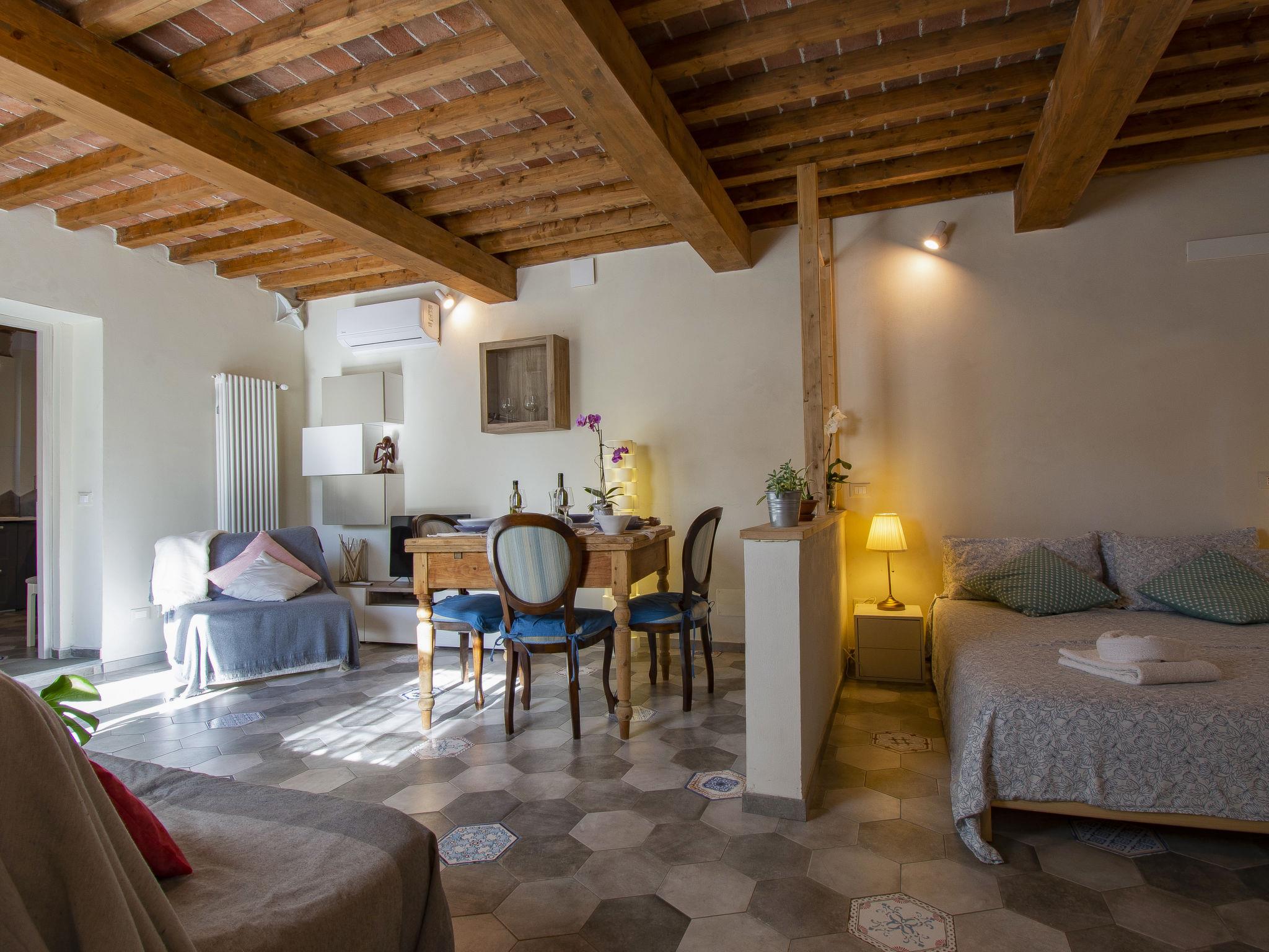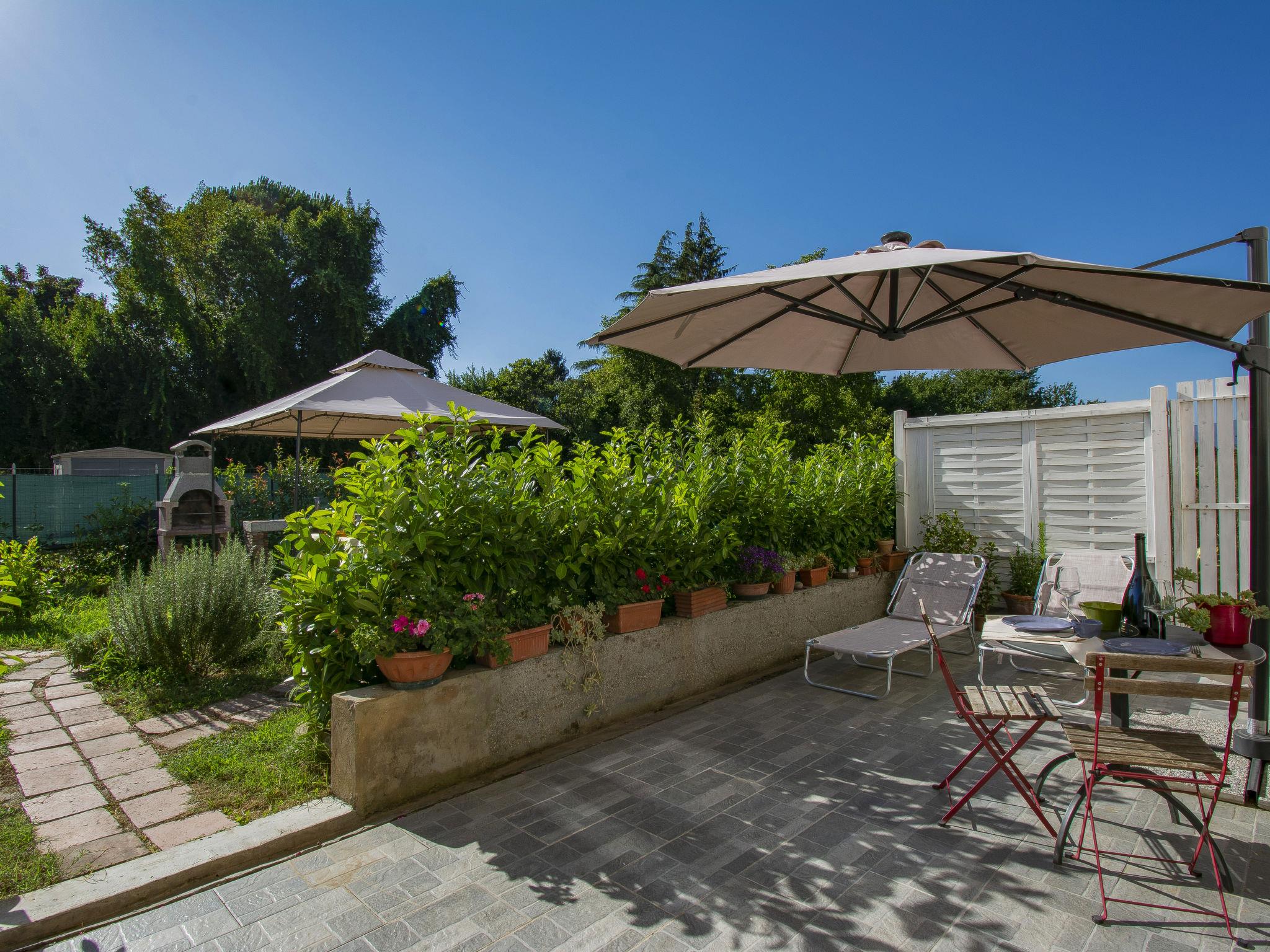 "Pinot", 2-room apartment 50 m2, on the ground floor. Modern and tasteful furnishings: living/dining room with 1 double sofabed and digital TV. Exit to the garden. 1 double bedroom. Kitchen (oven, dishwasher, 5 gas rings, toaster, kettle, microwave, electric coffee machine). Shower/bidet/WC. Gas heating. Porch. Terrace furniture, barbecue, deck chairs. Facilities: washing machine, iron, children's high chair, hair dryer. Internet (WiFi, free). Maximum 1 pet/ dog allowed. IT046017C23SPXJ5BU