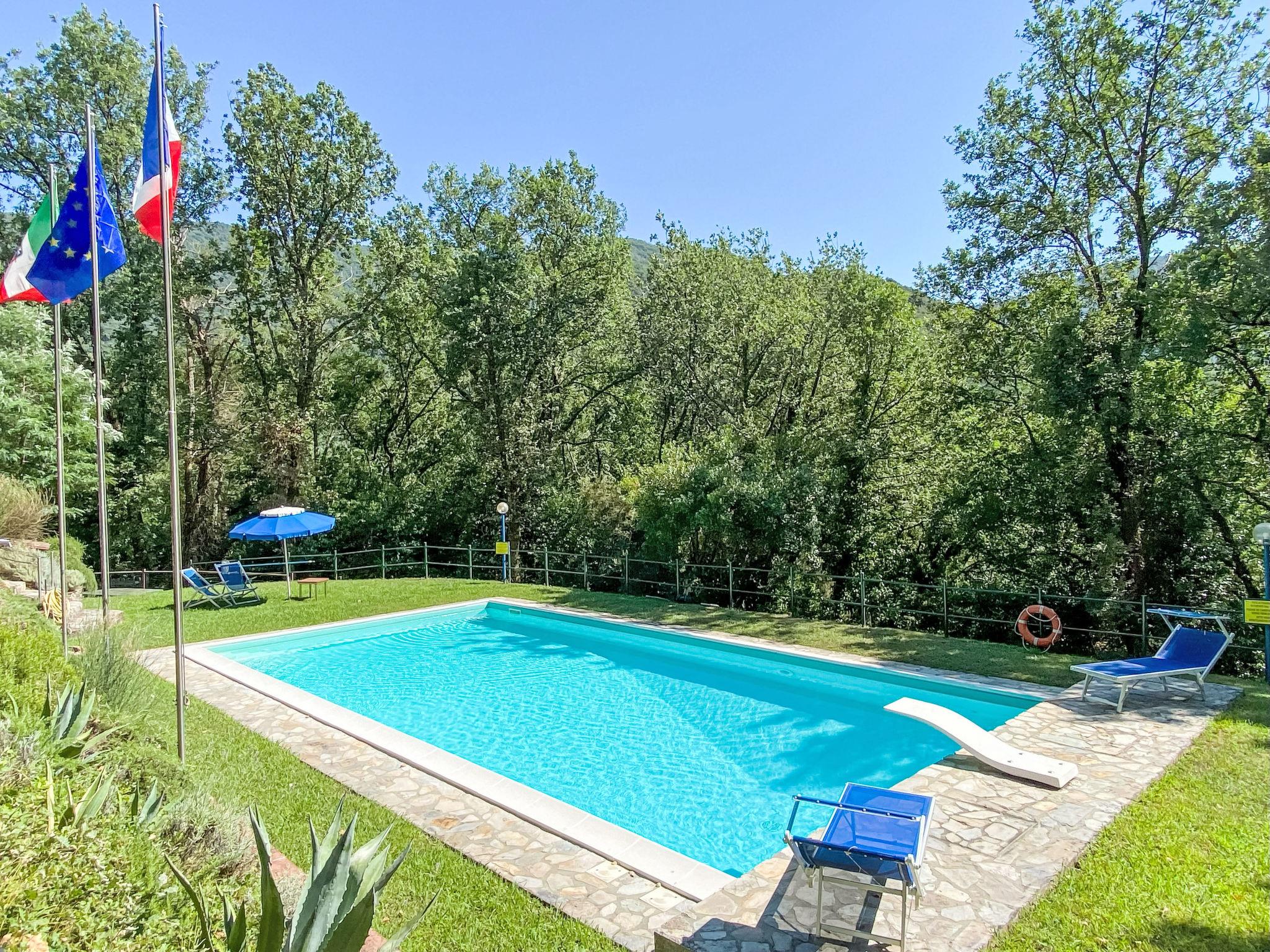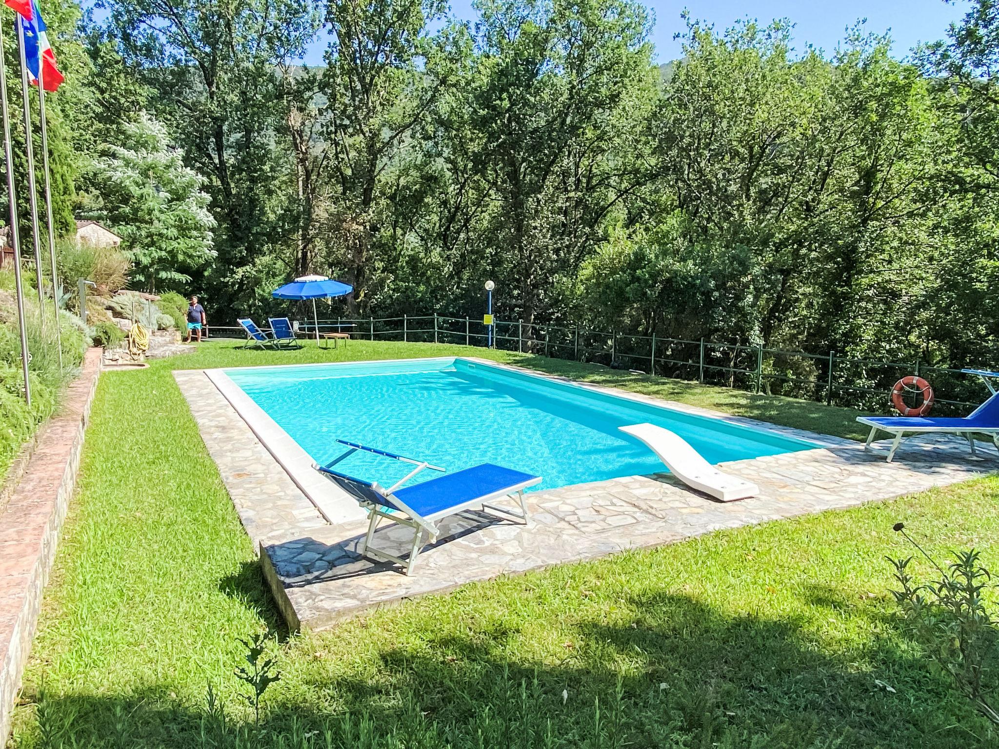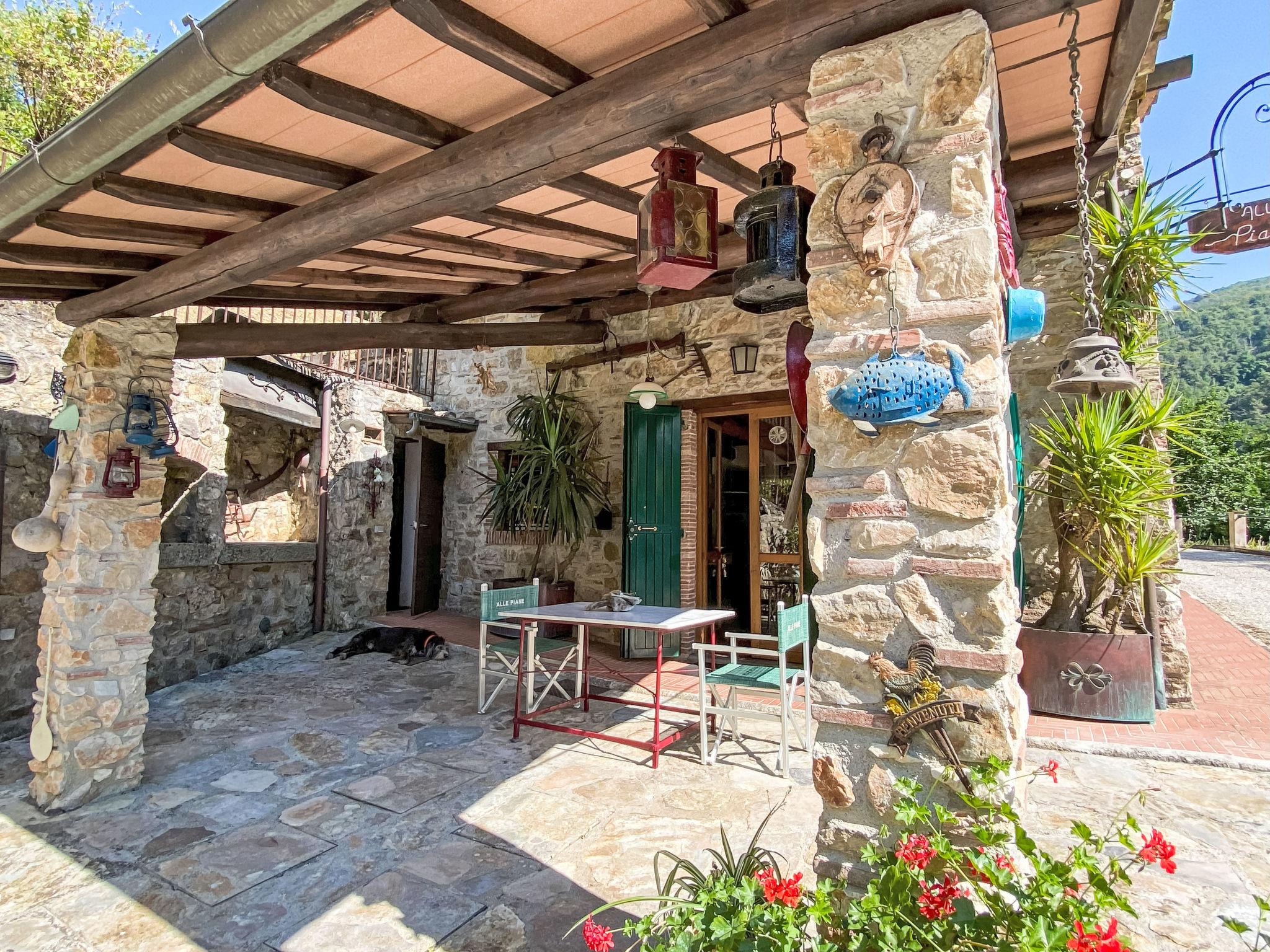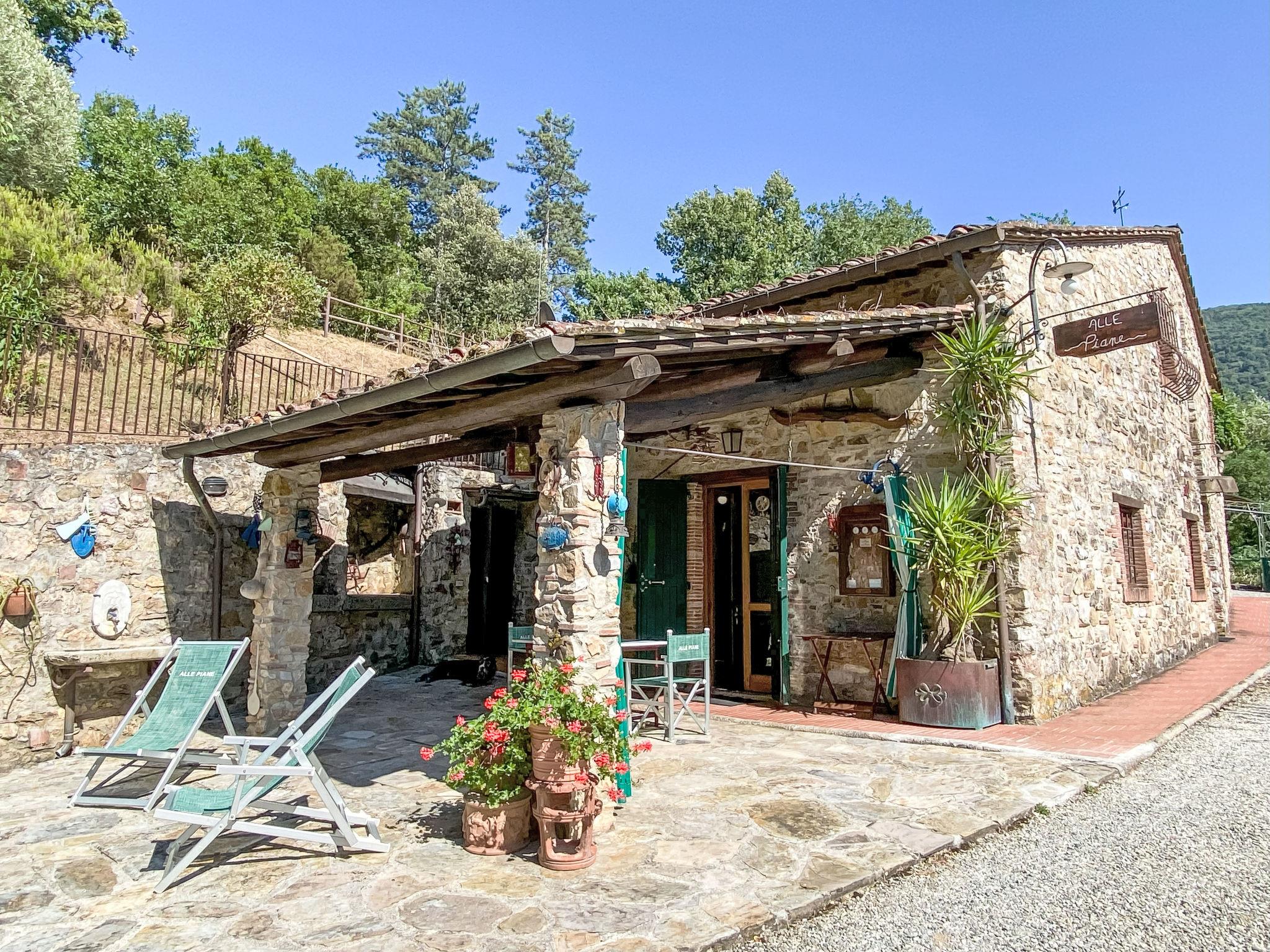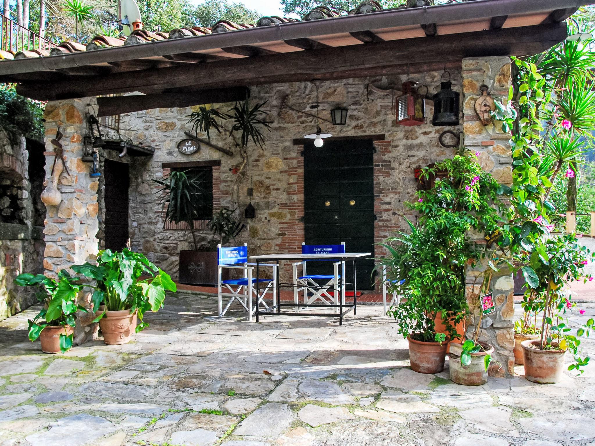 Rustic 2-family house "Alle Piane", 2 storeys, surrounded by trees. 4 km from the centre of Lucca, in a secluded, quiet position, 20 km from the sea, 20 km from the beach, in the countryside, in the woods. For shared use: property 7 ha, pond. Private: garden (not fenced), swimming pool (12 x 6 m, depth 140 - 300 cm, seasonal availability: 30.Jun. - 31.Aug.). Pool maintenance by the owner/gardener. Motor access (600 m via unmade road). Parking at the house. Grocery 1 km, bar 1 km, bakery 1 km, bus stop 500 m, sandy beach "Marina di Vecchiano" 18 km. Nearby attractions: Aeroporto Pisa 25 km. Please note: Owner lives in separate semi-detached house. The owner has a dog. Animals in the neighbourhood.