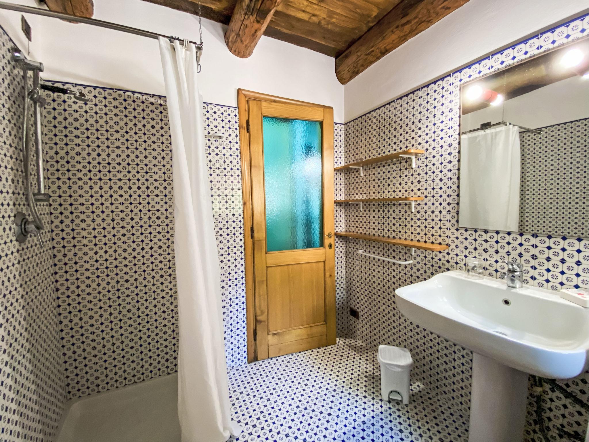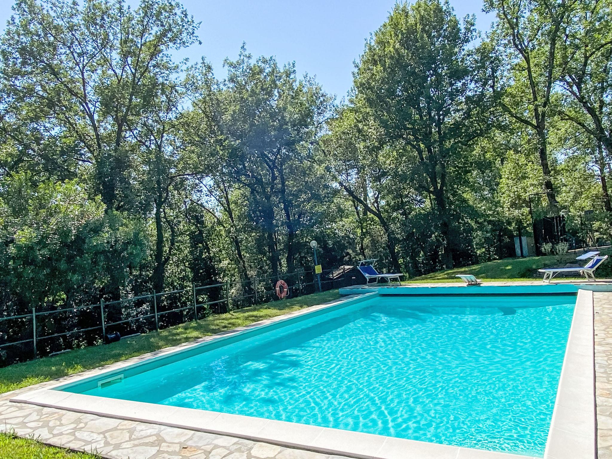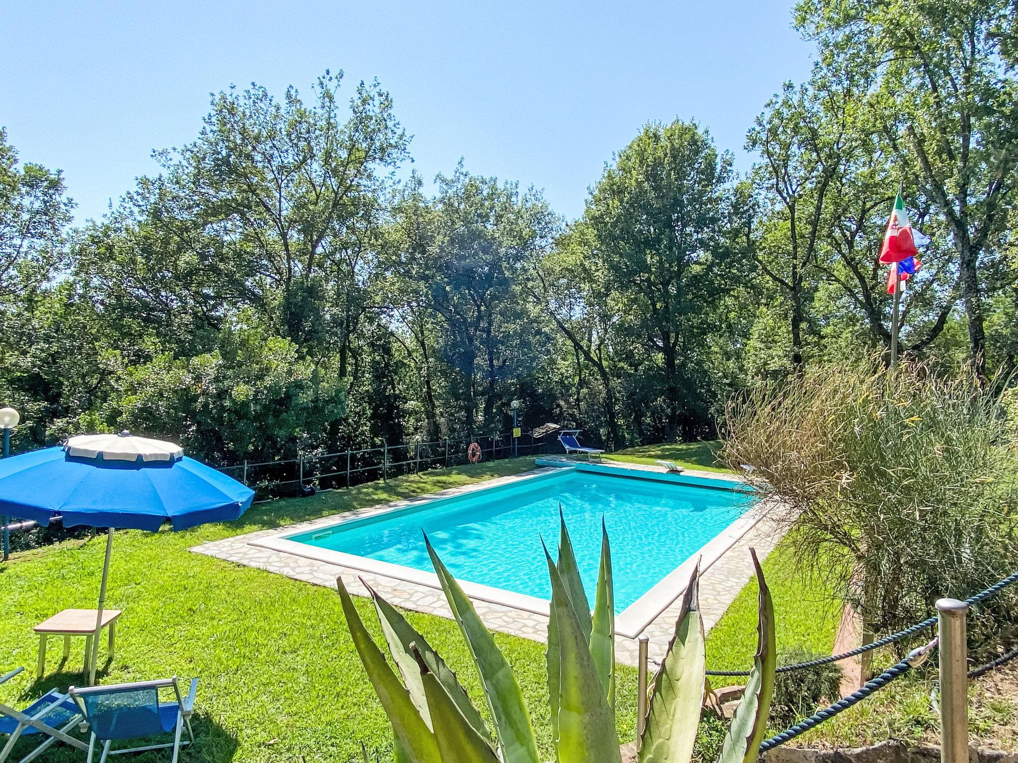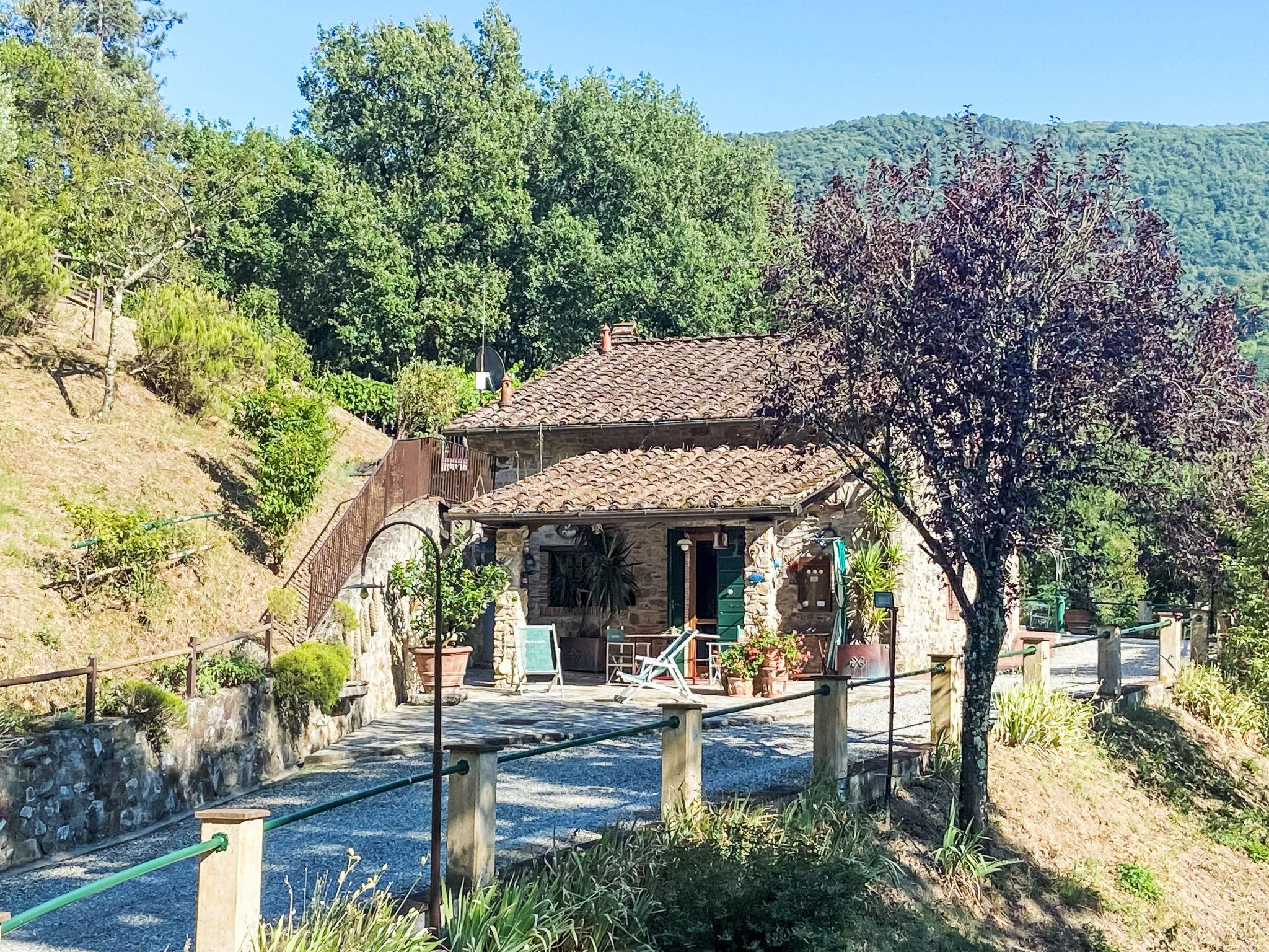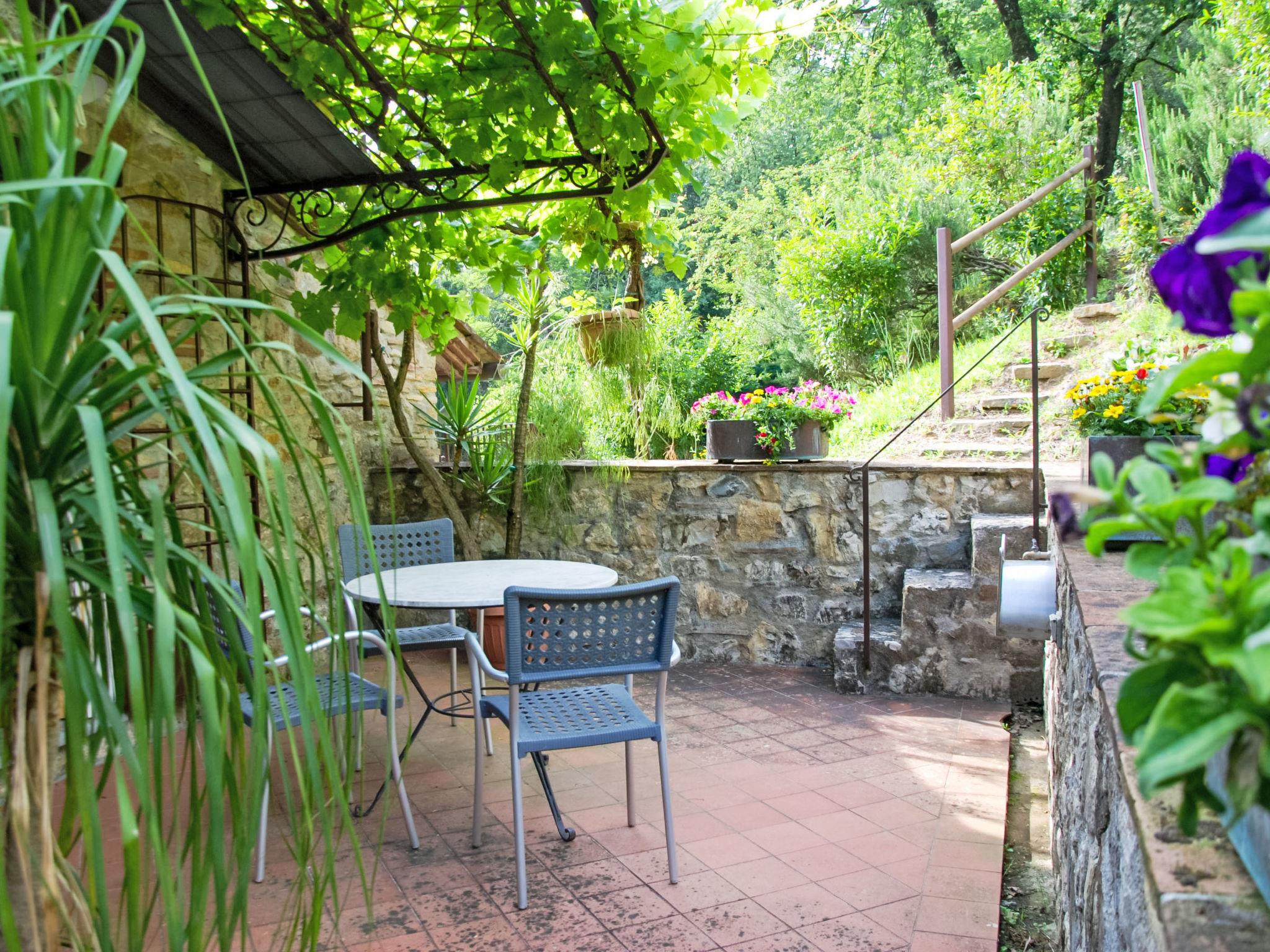 2-room house 55 m2 on 2 levels, on the ground floor. Rustic and tasteful furnishings: living/sleeping room with 1 double sofabed and satellite TV. Exit to the terrace. Open kitchen (oven, Gas stove, 4 gas rings, toaster, kettle, freezer, electric coffee machine) with dining table. Exit to the terrace. Shower/bidet/WC. Gas heating. Upper floor: (spiral staircase) gallery pergola with sloping ceilings with 1 double bed. Exit pergola. Terrace furniture, barbecue, deck chairs (2). Beautiful view of the garden and the forest. Facilities: washing machine. Internet (WiFi, free). Parking. Please note: maximum 1 pet/ dog allowed. Private entrance, fire extinguisher. The pool mentioned in the description is for private use. IT046017C2BBXJFG8T