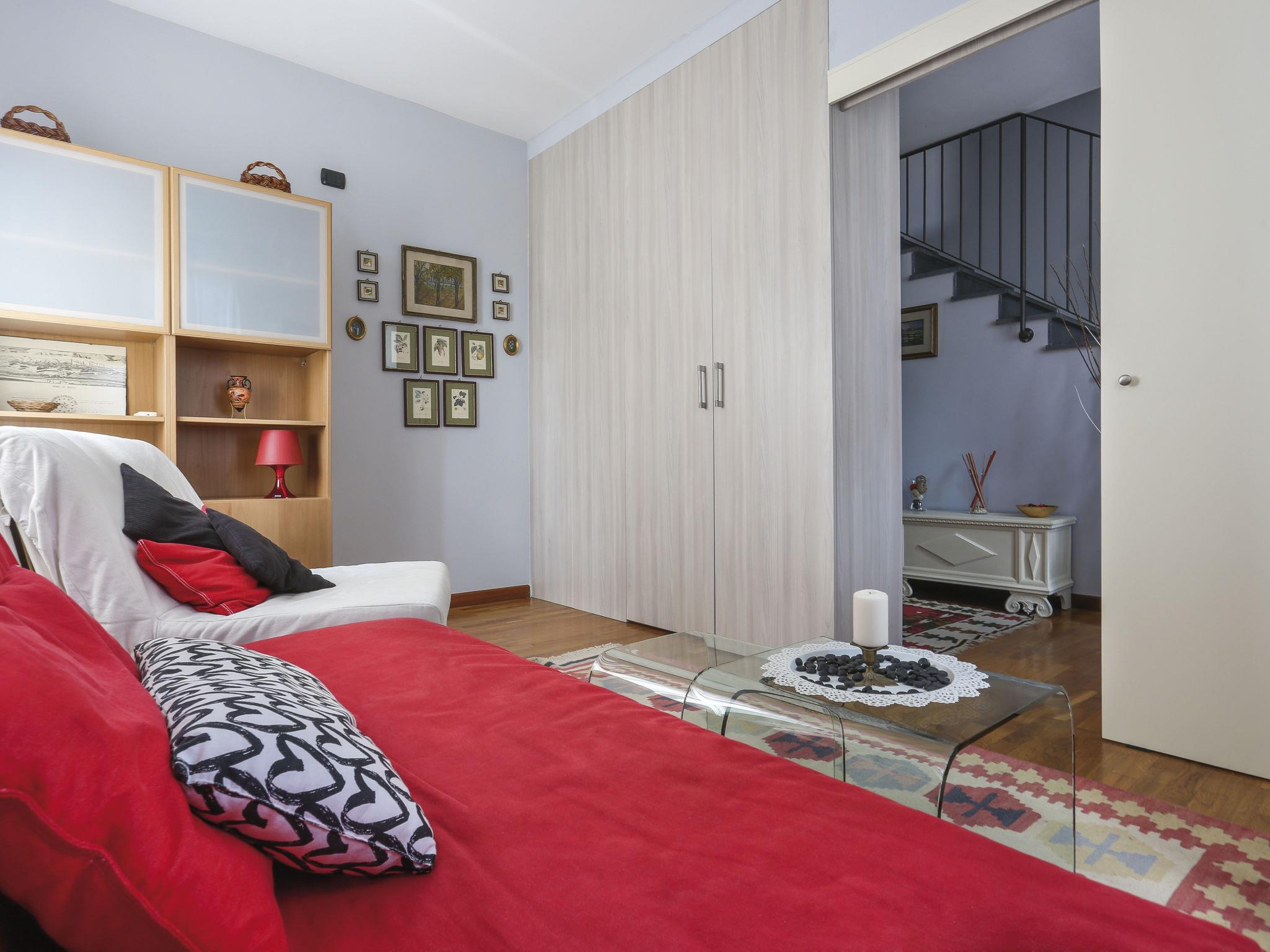 "La Rondine (LUU280)", 3-room apartment 70 m2 on 2 levels. Bright, practical furnishings: upper floor: 1 double bedroom with dining table and air conditioning. 1 room with 1 double sofabed and 1 sleeping facility. Shower/WC. Top floor: living/dining room with sloping ceilings with TV. Exit to the terrace. With sloping ceilings, open kitchen (oven, dishwasher, Gas stove, 4 gas rings, toaster, kettle, microwave, freezer, electric coffee machine). Shower/WC. Heating, air-conditioning. Terrace. Terrace furniture. Facilities: washing machine, dryer, iron, children's high chair, baby cot for up to 2 year olds. Internet (WiFi, free). Parking at 25 m. Please note: non-smokers only. Maximum 1 pet/ dog allowed. Private entrance. IT046017B4A5ZEX7FT