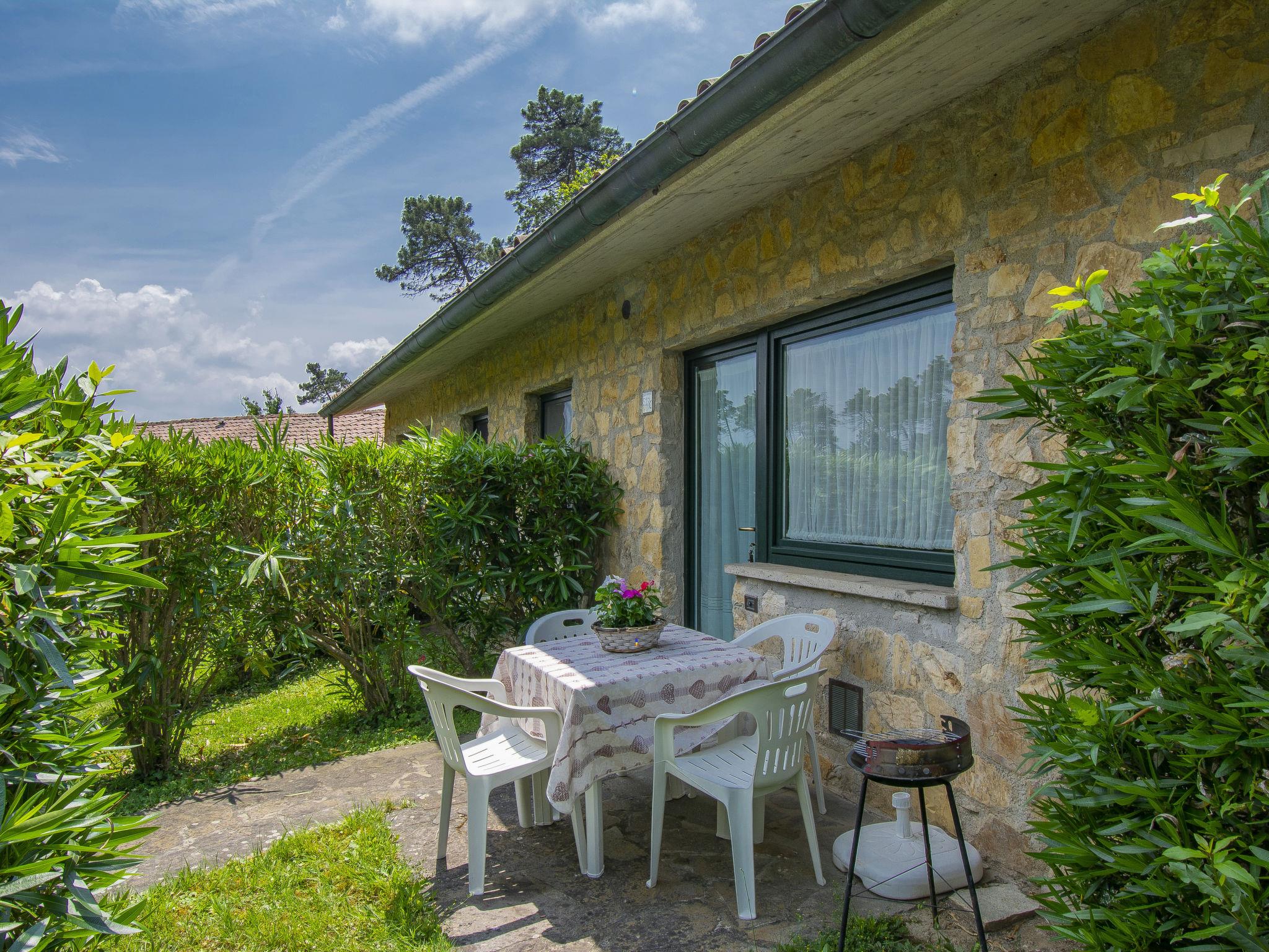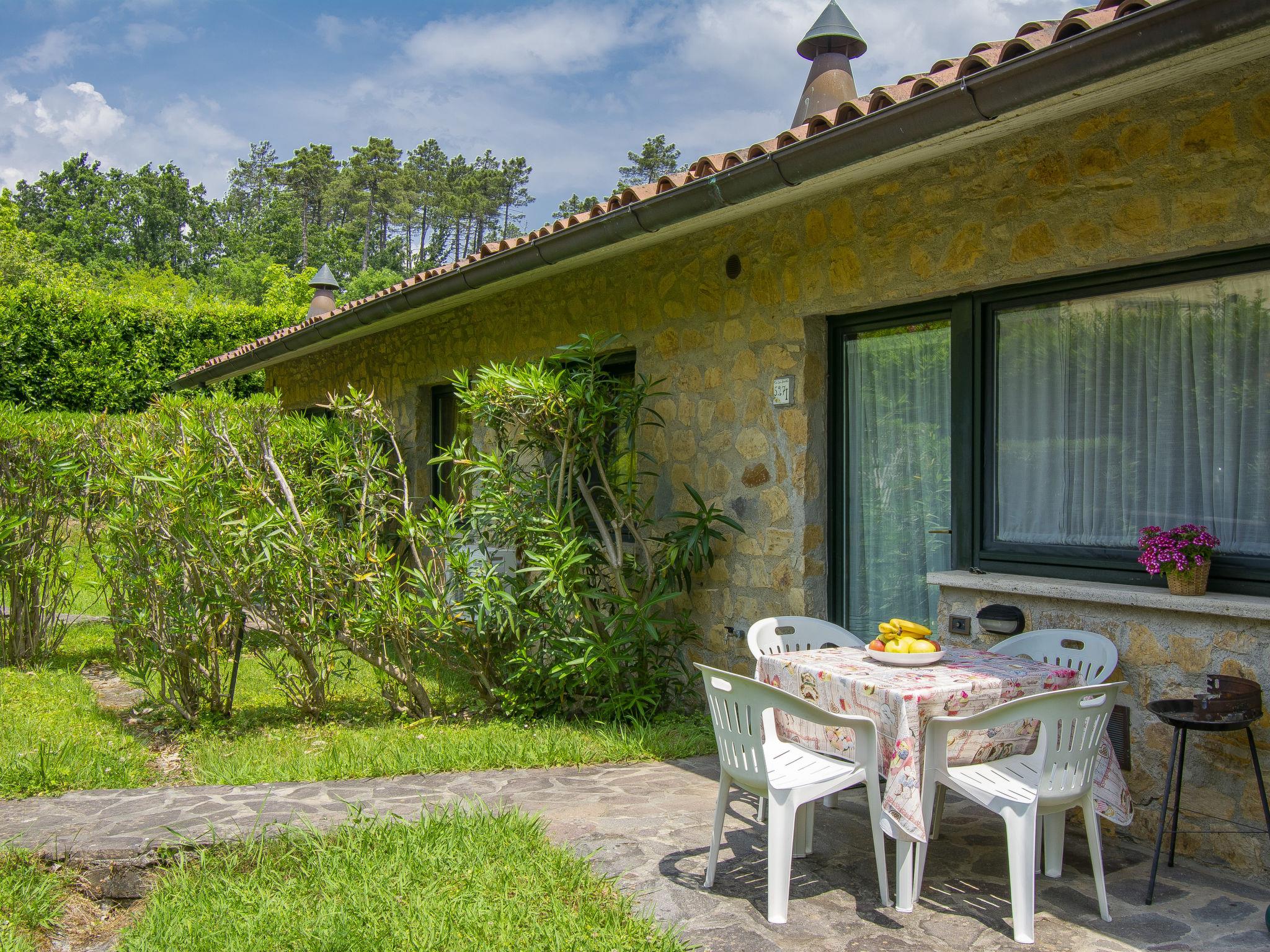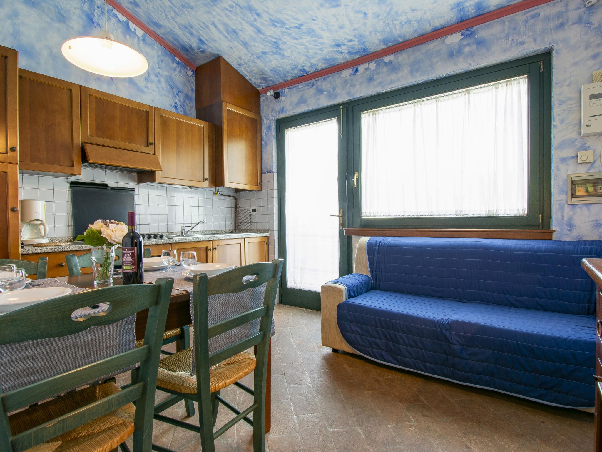 3-room terraced house 38 m2. Simple and rustic furnishings: 1 room with 1 french bed (160 cm). 1 room with 2 beds (80 cm). Kitchen-/living room (4 hot plates, oven, freezer, electric coffee machine) with dining table, satellite TV. Shower/bidet/WC. Gas heating, air-conditioning. Parquet floors. Patio, garden. Barbecue, deck chairs (2). Beautiful panoramic view of the mountains and the countryside. Facilities: safe, baby cot for up to 2 year olds. Parking (1 car) at the house. Please note: non-smokers only. Maximum 1 pet/ dog allowed. Private entrance. IT046017B4CZQN9EYK