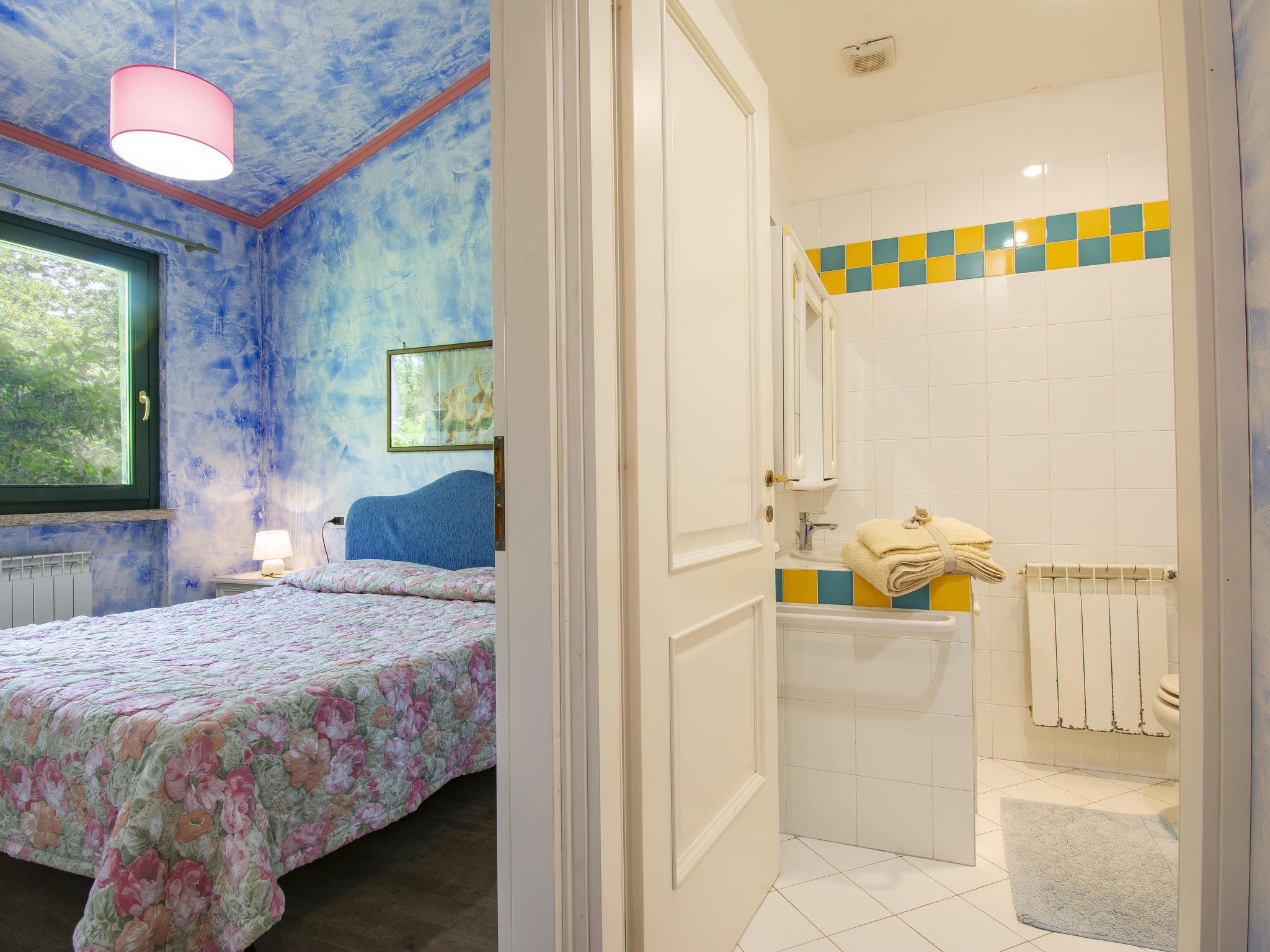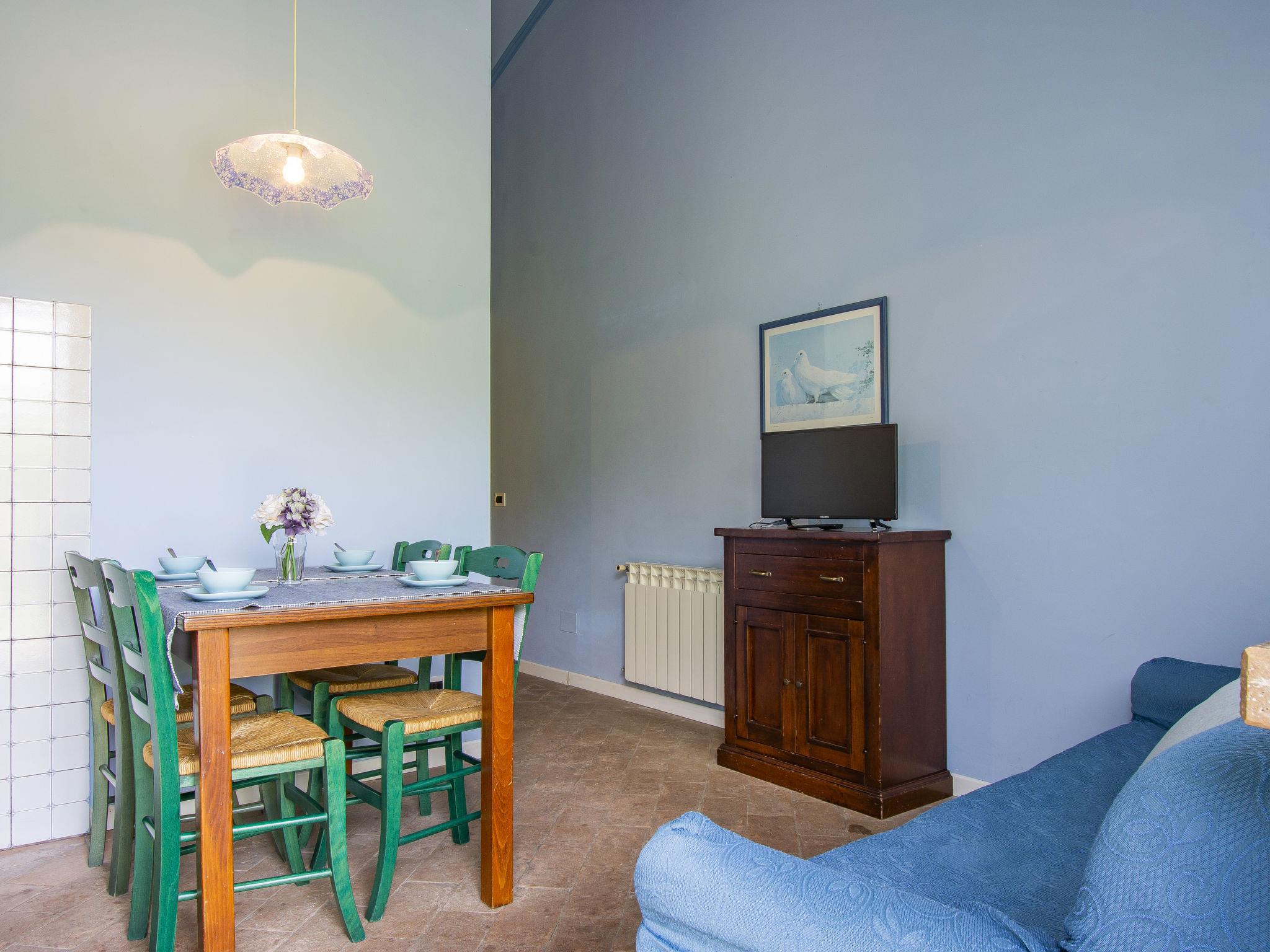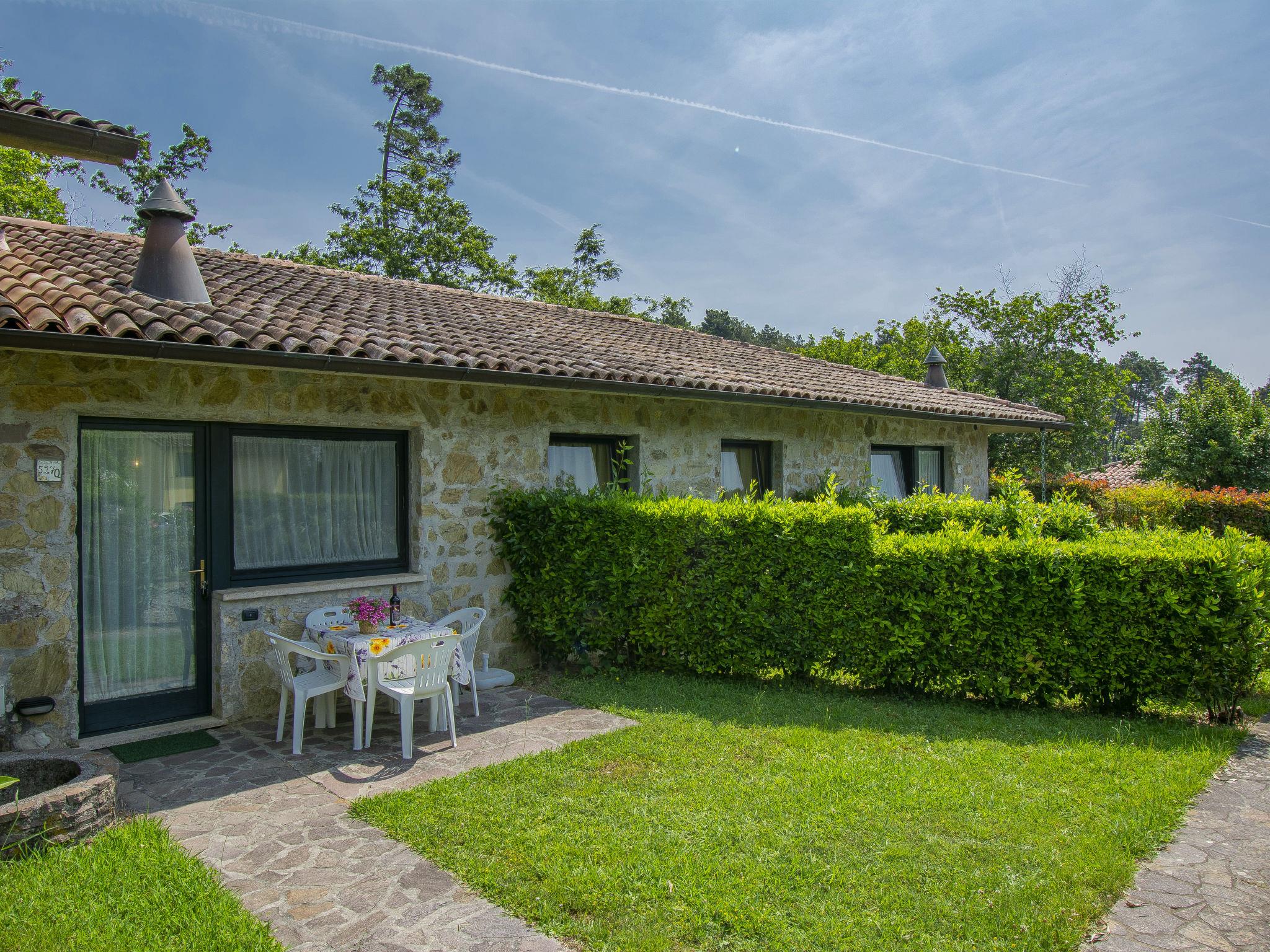 3-room terraced house 38 m2. Simple and rustic furnishings: 1 room with 1 french bed (160 cm). 1 room with 2 beds (80 cm). Kitchen-/living room (4 hot plates, oven, freezer, electric coffee machine) with dining table, satellite TV. Shower/bidet/WC. Gas heating, air-conditioning. Parquet floors. Patio, garden. Barbecue, deck chairs (2). Beautiful panoramic view of the mountains and the countryside. Facilities: safe, baby cot for up to 2 year olds. Parking (1 car) at the house. Please note: non-smokers only. Maximum 1 pet/ dog allowed. Private entrance. IT046017B4CZQN9EYK