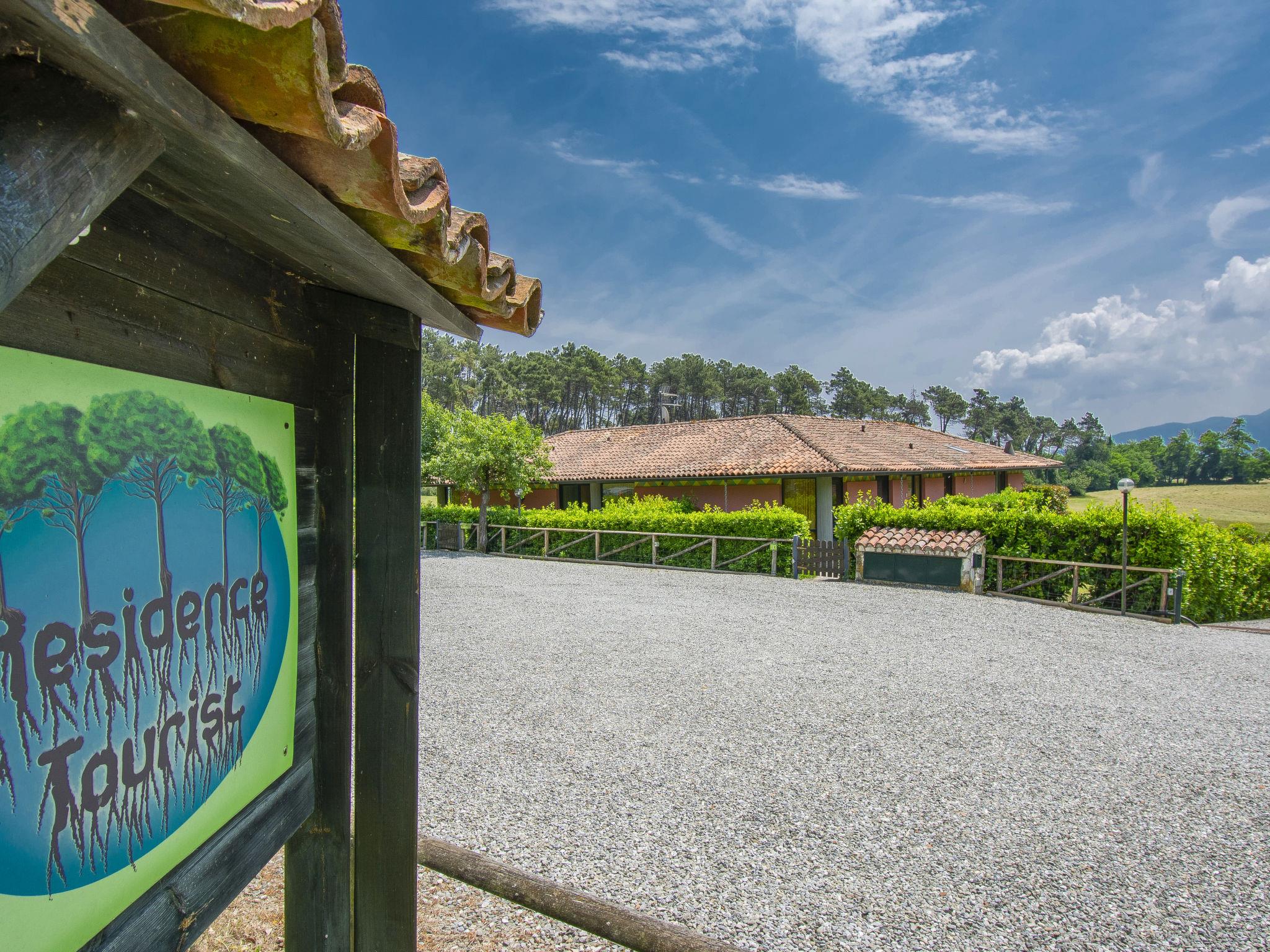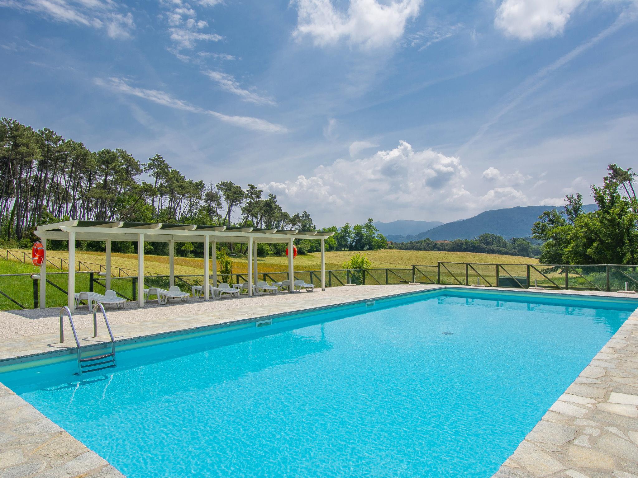 Farneta 8 km from Lucca: Child friendly, cosy residence "I Pini", surrounded by trees and meadows. 23 apartments in the residence. 1.5 km from the centre of Farneta, on the outskirts, 8 km from the centre of Lucca, 22 km from the centre of Pisa, 26 km from the sea, in the countryside. For shared use: property 20'000 m2, terraced garden with plants and trees, meadow, swimming pool fenced (14 x 6 m, seasonal availability: 15.May. - 30.Sep.). Outdoor shower, table tennis, arbour, children's playground. Private: garden (not fenced). In the complex: reception, table tennis, table football, burglar alarm system, washing machine (for shared use, extra). Parking on the premises. Supermarket 5 km, bus stop 350 m, railway station "Lucca" 8.5 km, sandy beach "Lido di Camaiore" 26 km. Golf course (18 hole) 25 km. Nearby attractions: Forte dei Marmi 42 km, Firenze 100 km. Please note: the complex has another 22 houses for rent.