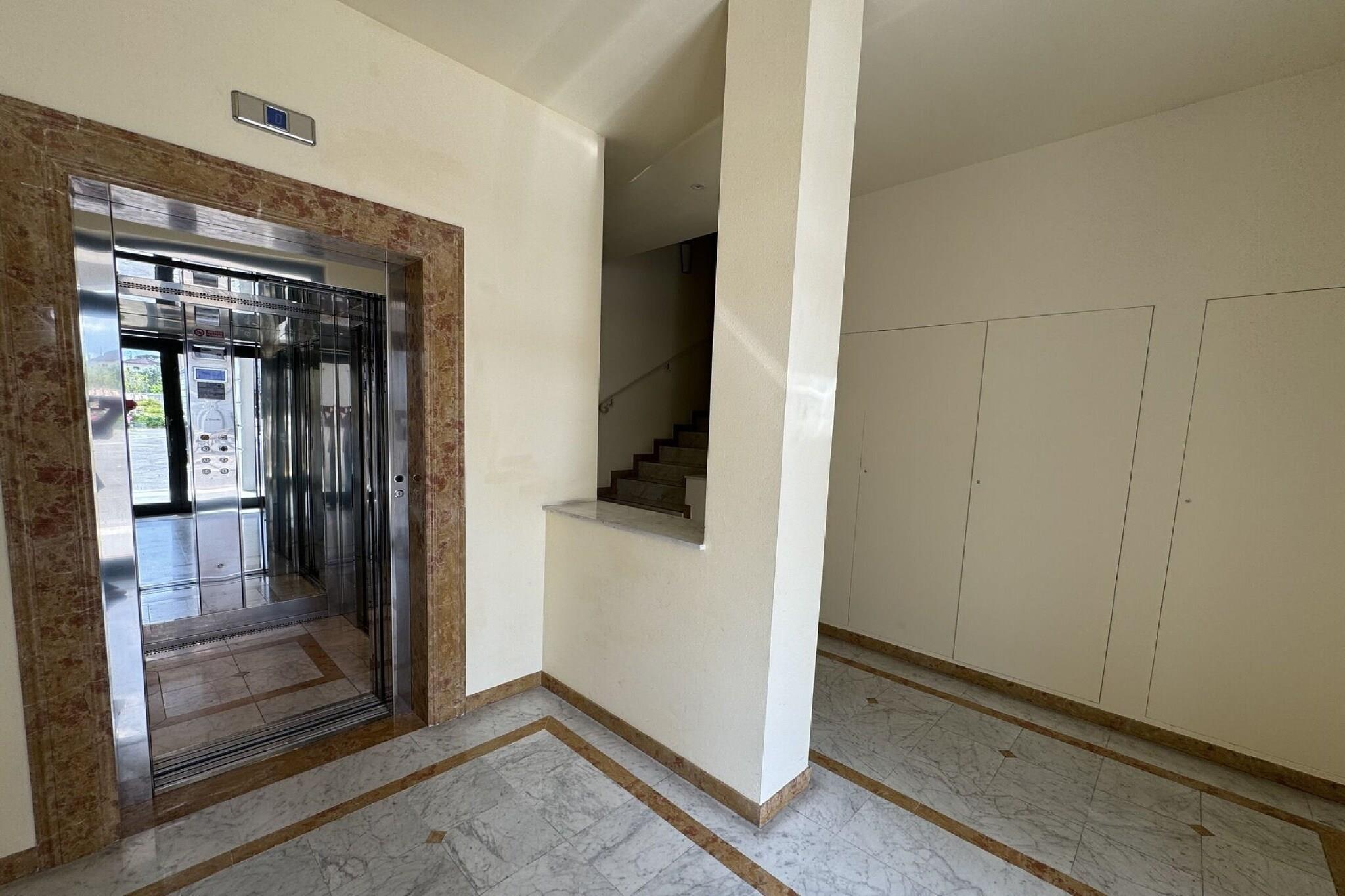 På 1. etage: (åbent køkken, stue / spisestue, soveværelse(halvandenmandsseng), soveværelse(dobbeltseng), badeværelse, balkon, balkon) elevator