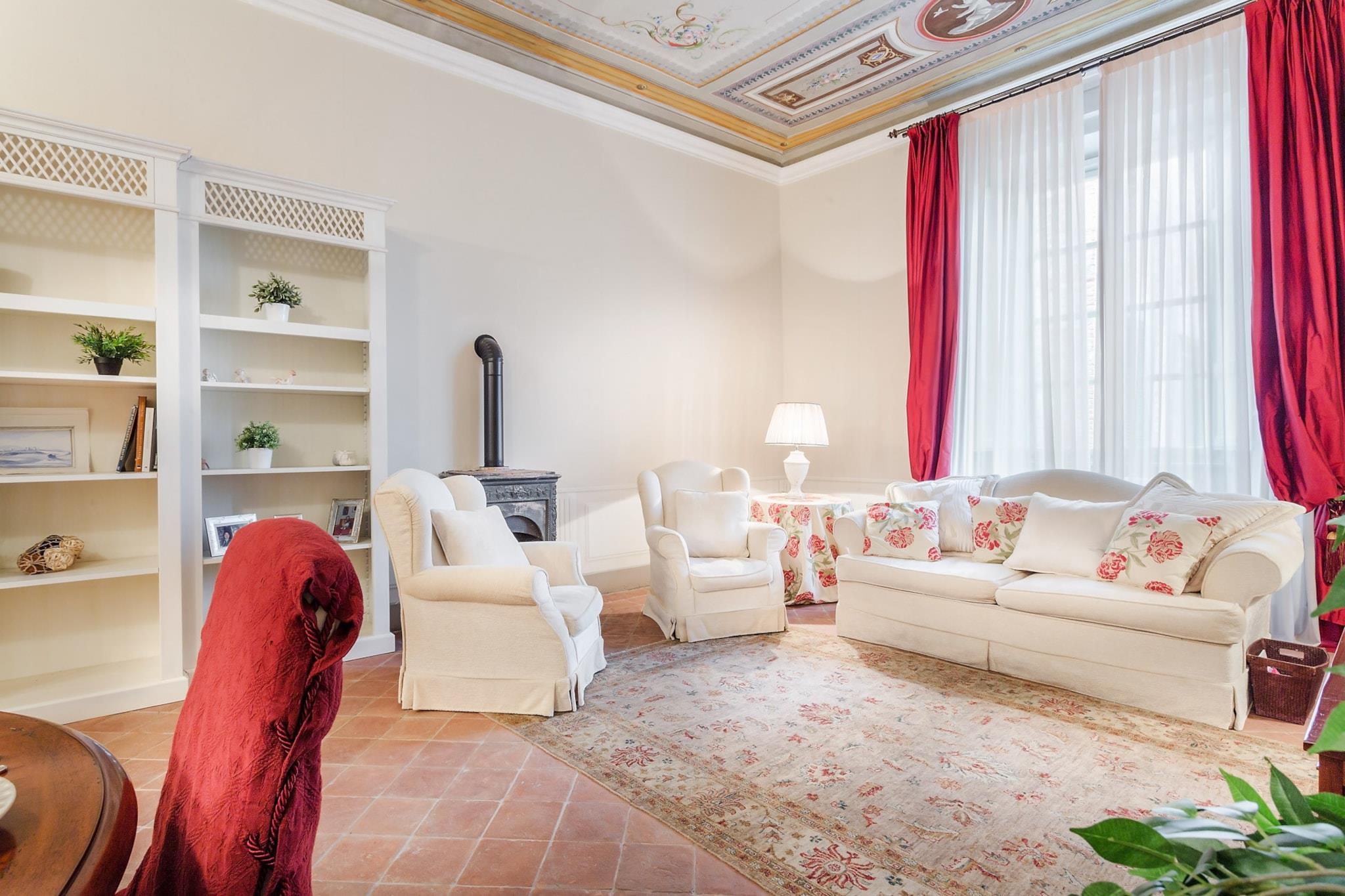 Træd ind i en smukt renoveret lejlighed, der legemliggør Luccas charme og historie. Kun få skridt fra den fantastiske katedral San Martino og lige rundt om hjørnet fra det ikoniske Guinigi-tårn, fungerer dette lyse og indbydende tilflugtssted som en ideel base for dine toscanske eventyr. Beliggende inden for Luccas gamle mure, tilbyder denne tidligere residens for en fremtrædende silkehandlerfamilie fra 1400-tallet en unik blanding af historie og modernitet, hvilket gør den perfekt for rejsende, der er ivrige efter at udforske byen og dens fortryllende landskab. Beliggende på anden sal, tilgængelig med elevator, kan denne lejlighed prale af en rolig beliggenhed i et malerisk, gåvenligt område. Kvarteret er fyldt med dejlige pizzeriaer, charmerende caféer til morgenmad, bagerier og lokale dagligvarebutikker, hvilket sikrer, at du har alt, hvad du behøver, lige ved hånden. Nyd den pulserende lokale kultur ved at besøge det nærliggende ugentlige marked eller slentre langs den ikoniske promenade oven på Luccas gamle mure, mens du nyder den betagende udsigt over byen. Når du træder indenfor, vil du blive mødt af en elegant og rummelig planløsning på 100 kvadratmeter, der byder på moderne bekvemmeligheder kombineret med tidløst design. Den store stue fremviser originale malede lofter fra 1700-tallet, hvilket skaber en betagende atmosfære, der komplementerer de elegante, nye møbler. Med to hyggelige soveværelser, et fuldt udstyret køkken med alle nødvendige apparater og et overdådigt badeværelse med en stor indbygget bruser, lover denne lejlighed et dejligt ophold fyldt med komfort og stil, hvilket gør den til det perfekte hjem væk fra hjemmet under din Lucca-ferie. Bemærk: Turistskat skal betales på ejendommen.