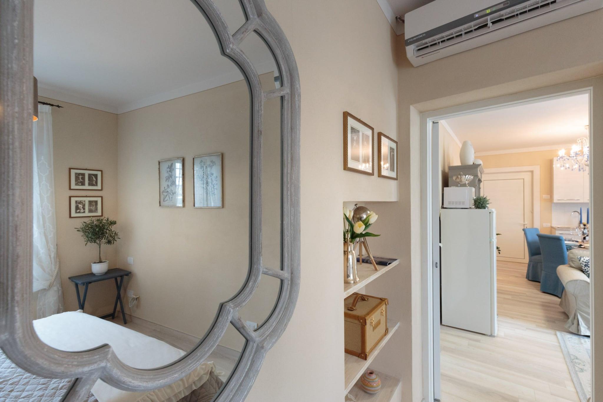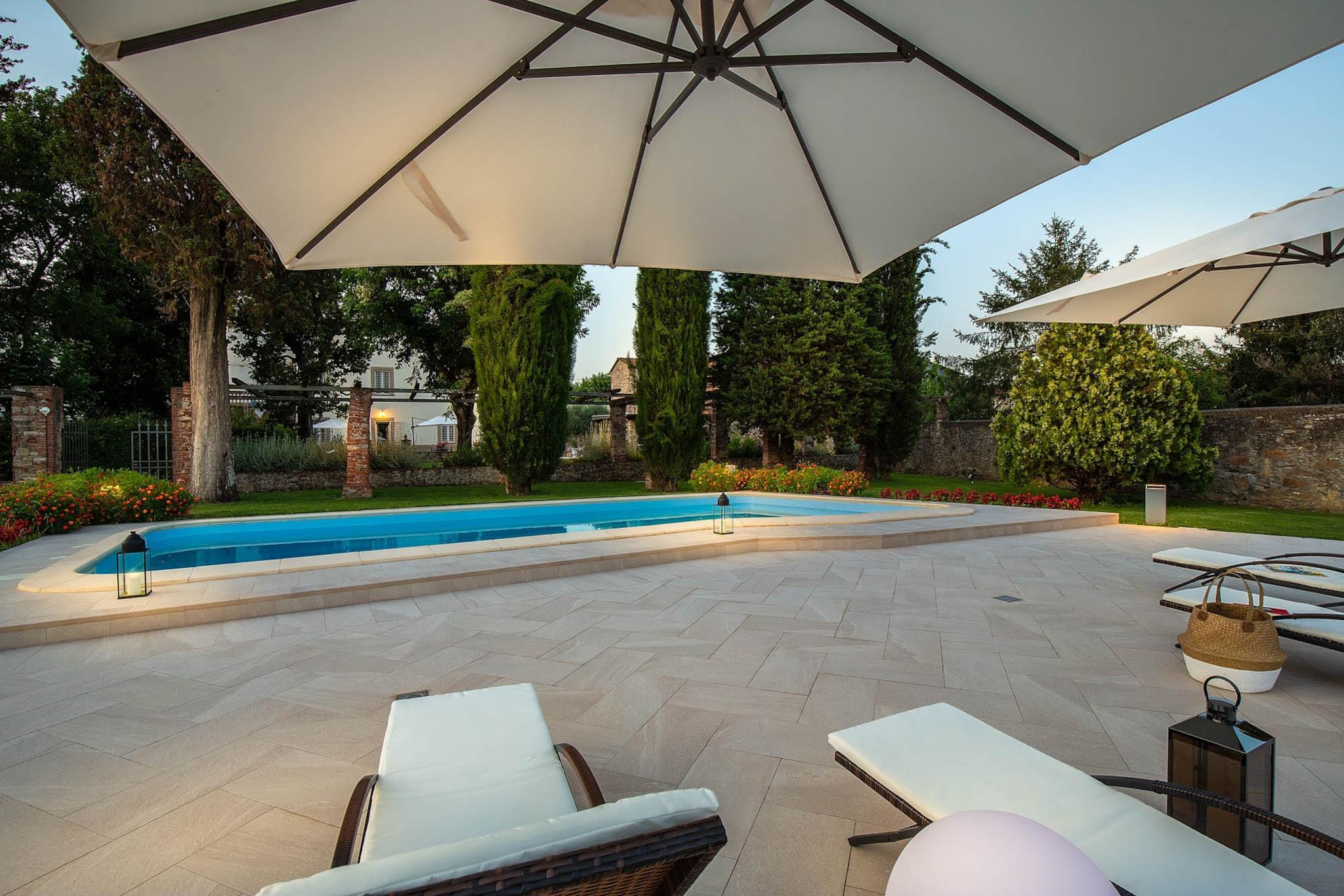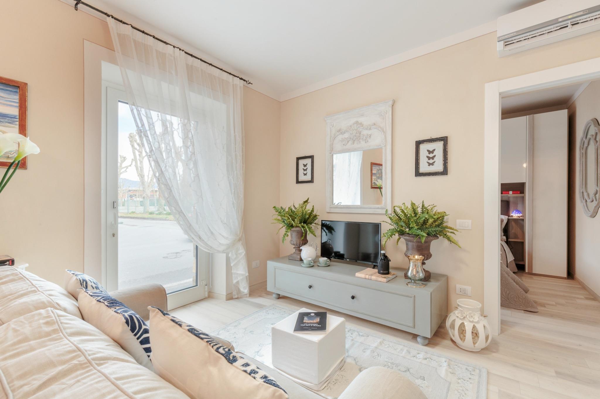Flygt til dette elegante gemmested, en smukt indrettet villa, der tilbyder et roligt tilflugtssted lige uden for Luccas historiske bymure. Beliggende i et separat høloft på ejerens private ejendom, er dette den perfekte tilflugtssted for et par, der søger både ro og nem adgang til Toscanas vidundere. Mens poolen deles med ejerne, sikrer villaens private rammer, at du har et afsides og intimt rum, du kan kalde dit eget. Denne suite med et soveværelse er en fantastisk blanding af rustik charme og moderne luksus. Omhyggeligt restaurerede arkitektoniske detaljer og omhyggeligt udvalgte møbler skaber et virkelig mindeværdigt indtryk. Rummet inkluderer en komfortabel stue, et fuldt udstyret køkken til at tilberede dine egne måltider og et rummeligt soveværelse med en kingsize-seng og et fjernsyn til hyggelige aftener derhjemme. Udenfor er et indbydende udendørs spiseområde ved poolen det perfekte sted at nyde et glas vin og lokal ost, mens solen går ned. Du har også to private cykler til at udforske de smukke omgivelser i dit eget tempo. Villaens førsteklasses beliggenhed tilbyder det bedste fra begge verdener: privilegeret privatliv og nem adgang til regionens mest elskede destinationer. Luccas historiske centrum ligger kun en kort køretur eller cykeltur væk. Ud over Lucca kan du nemt udforske et utal af toscanske perler, herunder Pisa, strandene i Viareggio og Forte dei Marmi og Firenzes kulturelle hjerte. For at få en smagsprøve på det lokale liv kan du tage til vinlandet Montecarlo, kurbyen Montecatini Terme eller de middelalderlige bjergbyer San Gimignano og Barga.