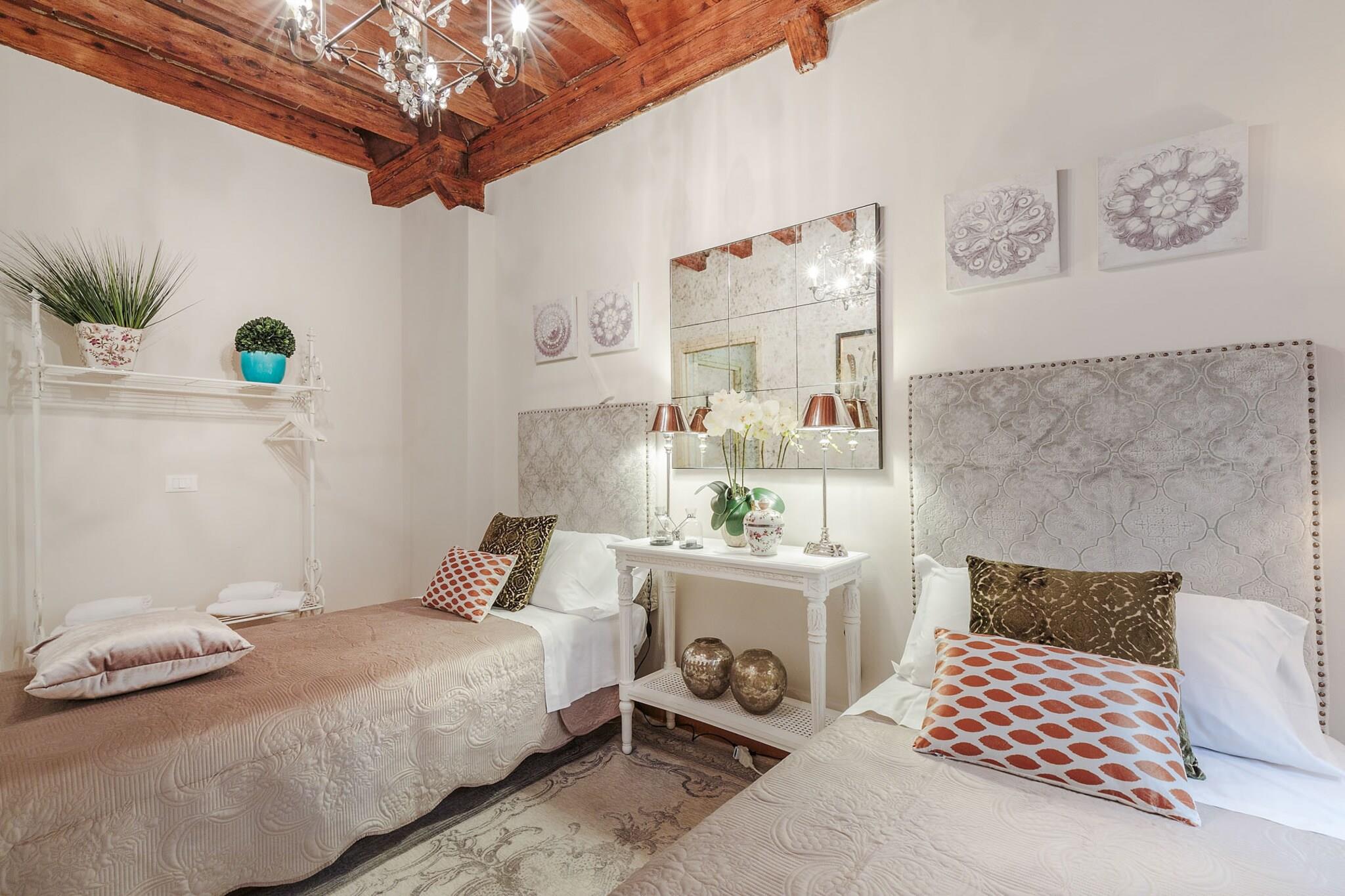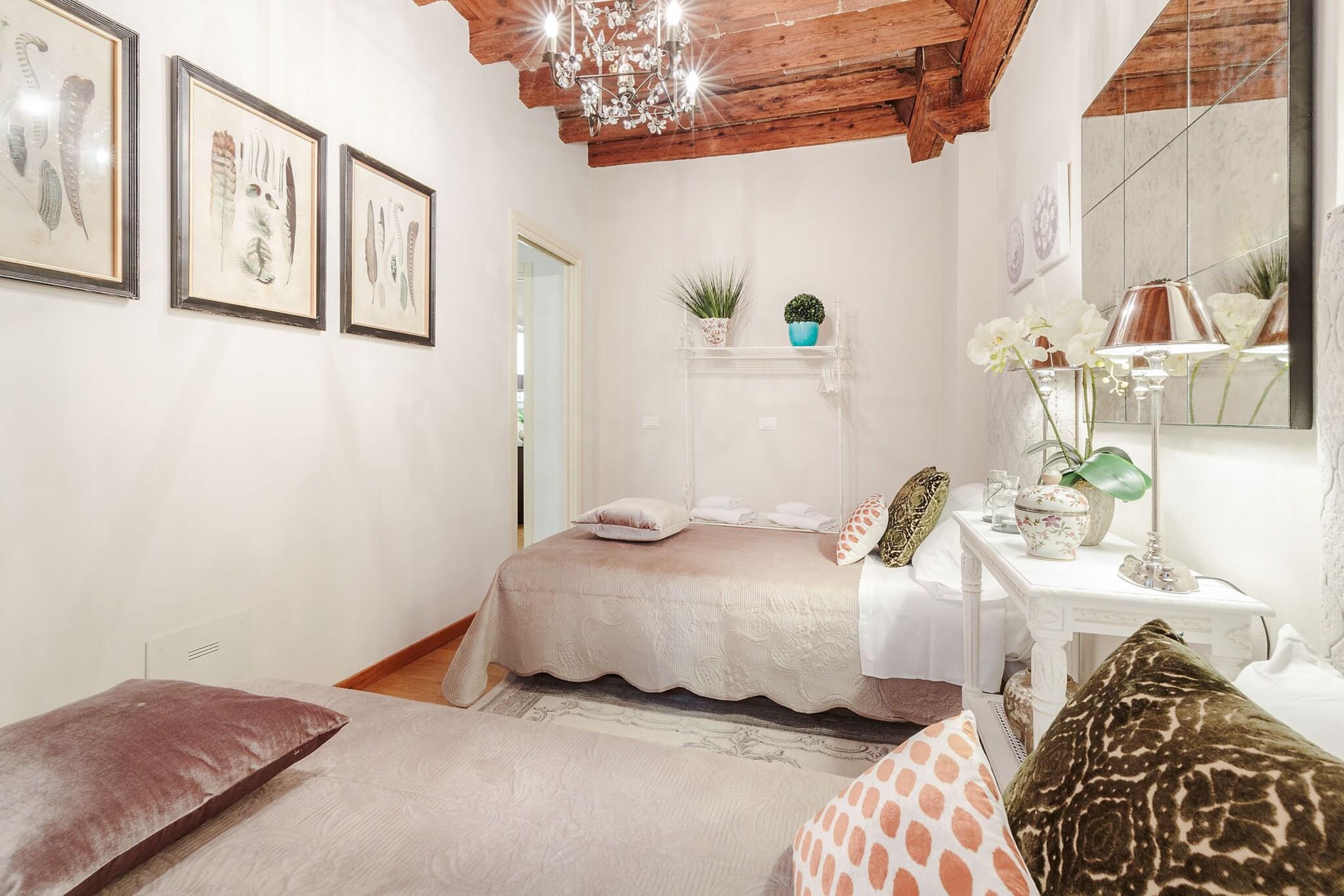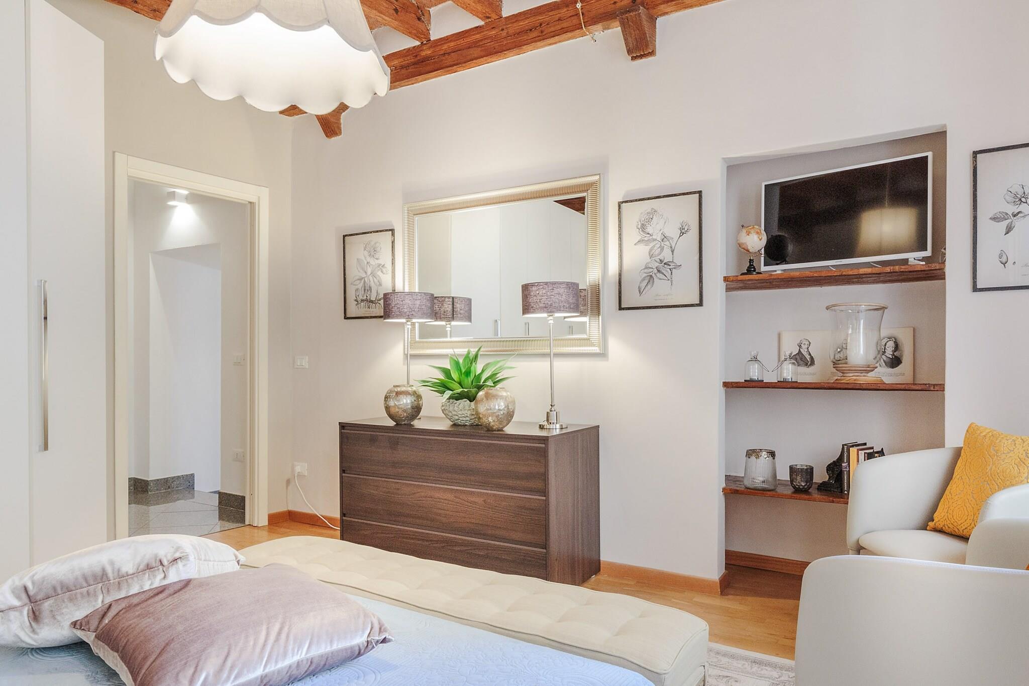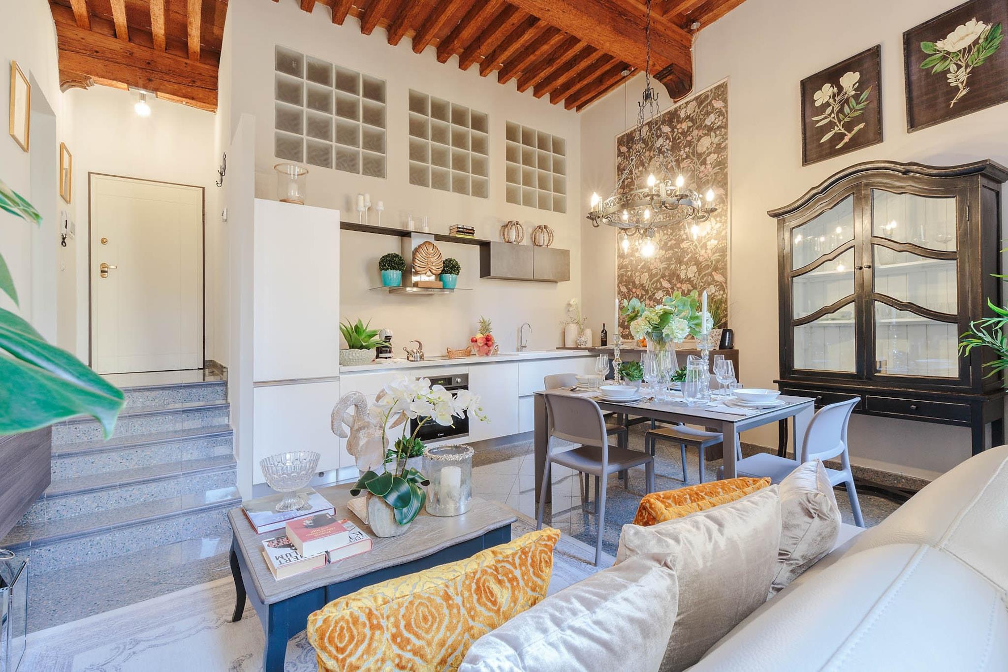 Denne elegante lejlighed ligger i hjertet af Luccas historiske centrum og tilbyder et førsteklasses indblik i byens rige kulturarv og pulserende gadeliv. Beliggende i et smukt bevaret palazzo fra det 12. århundrede, åbner boligen direkte ud til Piazza Cittadella og Piazza San Michele - to af Luccas mest ikoniske vartegn. Lige uden for din dør kan du opleve Giacomo Puccinis fødested, stemningsfulde operaforestillinger, charmerende caféer, kunsthåndværksmæssige gelato-butikker og fine restauranter som den berømte La Buca di Sant'Antonio. Denne lejlighed på første sal (én etage over jorden, ingen elevator) blander århundreder gammel charme med ren, moderne komfort. Den åbne stue og spisestue er lys og indbydende med et kompakt køkken til nemme måltider derhjemme. To soveværelser - et med en kingsize-seng, det andet med to enkeltsenge - giver afslappende rum, mens badeværelset har bruseniche og vaskemaskine. Aircondition i begge soveværelser og højhastigheds-WiFi sikrer et behageligt ophold i alle årstider. Lejligheden ligger i ZTL (zone med begrænset trafik), så det er ikke muligt at parkere på stedet, men den nærmeste parkeringsplads ligger en kort gåtur væk. Togstationen ligger også inden for gåafstand, hvilket gør dagsture til nærliggende toscanske byer nemme og bekvemme. Denne charmerende bolig er perfekt placeret til at udforske Lucca til fods og giver dig mulighed for at fordybe dig i det lokale livs rytme, fra morgencappuccinoer til solnedgangsaperitivi under den middelalderlige skyline. Bemærk: Turistskat skal betales på ejendommen.