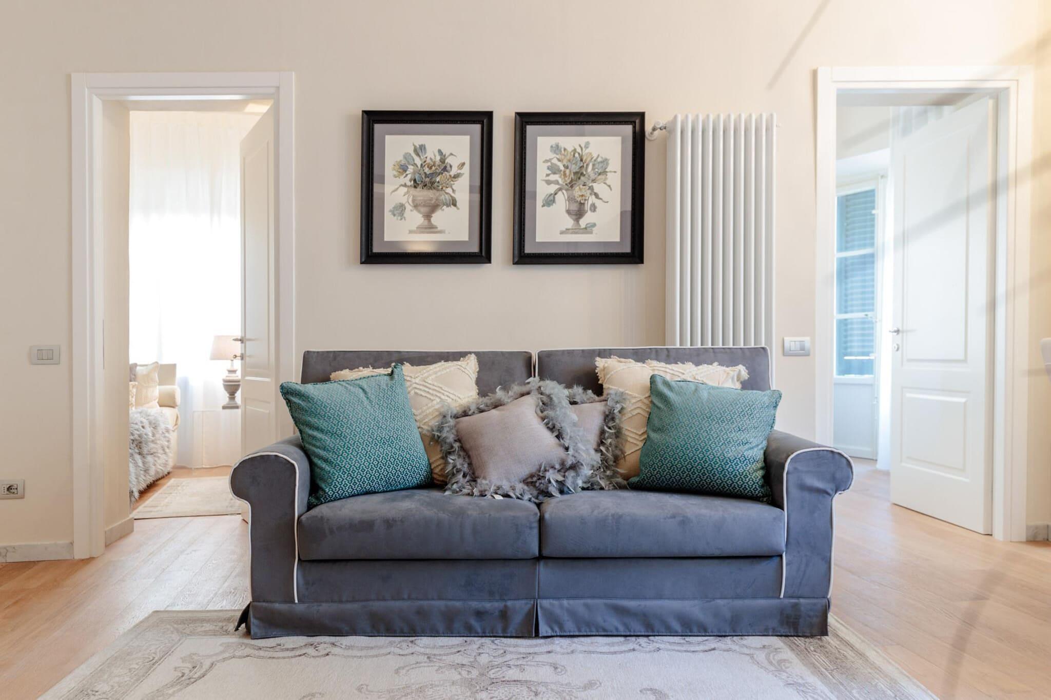 Oplev raffineret luksus i denne elegante lejlighed med 2 soveværelser, der er beliggende i et palads fra det 14. århundrede, lige i hjertet af Lucca. Lejligheden er en sofistikeret blanding af antik charme og moderne gnist, og den blænder op med fløjlsdetaljer, hørteksturer og glitrende detaljer. Kun få skridt fra Piazza San Michele og Piazza San Giusto er du perfekt placeret til at nyde byens højdepunkter - fra Puccini-koncerterne i San Giovanni-kirken til Via Fillungo, Guinigi-tårnet og amfiteatret - alt sammen inden for 2 til 5 minutters gåtur. Lejligheden åbner ud til et smukt designet åbent opholds-, spise- og køkkenområde, fyldt med naturligt lys og tidløs stil. Den kan prale af en privat terrasse med panoramaudsigt over terrakottahustage og renæssancekirker - ideel til en afslappende aperitif. Soveværelset og værelset med to enkeltsenge deler et topmoderne Carrara-marmorbadeværelse med et luksuriøst brusebad. Faciliteterne inkluderer aircondition, hurtig Wi-Fi (47 Mbps), satellit-tv, vaskemaskine og et fuldt udstyret køkken med moderne apparater. Efter middagen på en af Luccas berømte restauranter kan du vende tilbage til din terrasse for et sidste glas vin under den toscanske himmel. Bekvemt placeret kun 10 minutters gang fra tog- og busstationerne, finder du dagsture til Firenze, Pisa, Cinque Terre, Montecatini og den toscanske kyst ubesværet. Denne lejlighed tilbyder en unik blanding af historie, glamour og komfort – perfekt til at opdage magien i Lucca og omegn. Bemærk: Turistskat skal betales på ejendommen.
