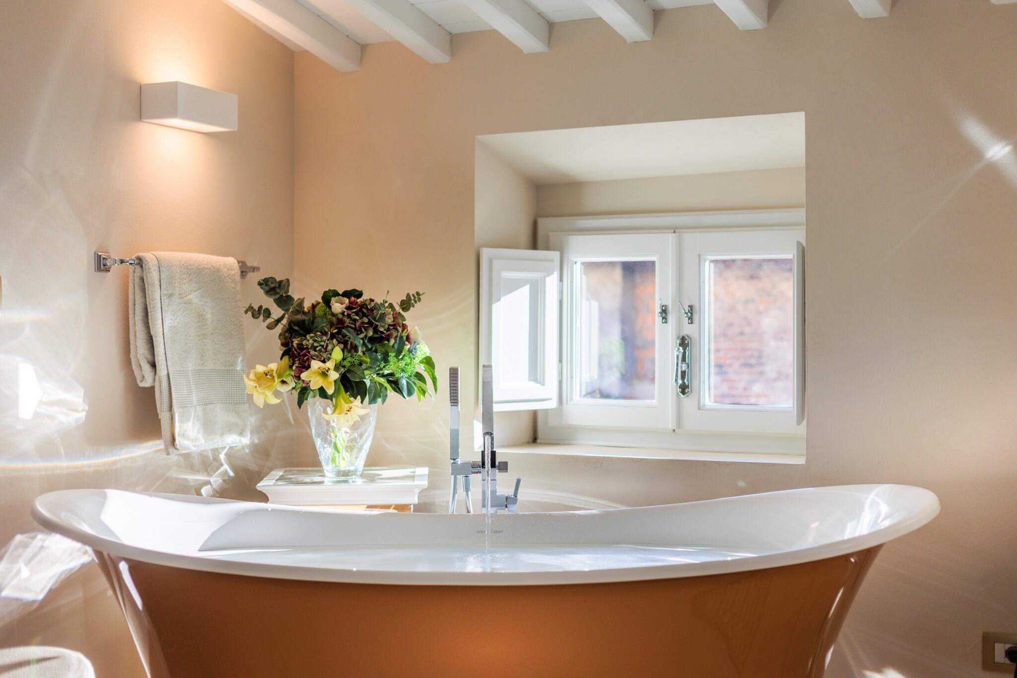 Gemt væk i hjertet af Luccas historiske centrum, er The Duchess Chambers en majestætisk tilflugtssted, hvor århundreder gammel elegance møder moderne komfort. Denne luksuriøse bolig på 200 m², der engang var hjemsted for adelen, er udsmykket med freskomalerier i stuen og trælofter i soveværelserne. Den er designet til at rumme op til seks gæster og har tre soveværelser, hver med en kingsize-seng og eget badeværelse. Den rummelige stue, fyldt med naturligt lys fra store vinduer, åbner ind til en spiseplads og et fuldt udstyret køkken, perfekt til at dele måltider efter en dag med udforskning. Hjemmet inkluderer også et gæstetoilet, vaskerum og bekvem elevatoradgang. Fra det øjeblik du træder udenfor, udfolder Luccas skatte sig omkring dig. Piazza San Michele ligger lige rundt om hjørnet, og inden for få minutters gang finder du Piazza Napoleone, det ikoniske Guinigi-tårn, Via Fillungos butikker og den elliptiske Piazza Anfiteatro. Den berømte katedral San Martino og antikvitetsmarkedet ligger også i nærheden og tilbyder en blanding af historie, kunst og lokal smag. Uanset om du foretrækker at slentre i brostensbelagte gader eller nyde espresso på en café, er byens charme altid lige ved din dør. The Duchess Chambers er godt forbundet og centralt beliggende, og er også en ideel base for at udforske områder uden for Lucca. Hovedbanegården, kun en kort gåtur væk, tilbyder nem adgang til Firenze, Pisa, Siena og endda Rom. Sikker parkering er tilgængelig cirka ti minutter fra ejendommen for gæster med bil. Uanset om du er her for kultur, gastronomi eller en ferie på landet, blander denne historiske perle ædel elegance med det bedste af toscansk livsstil. Bemærk: Turistskat skal betales på ejendommen.