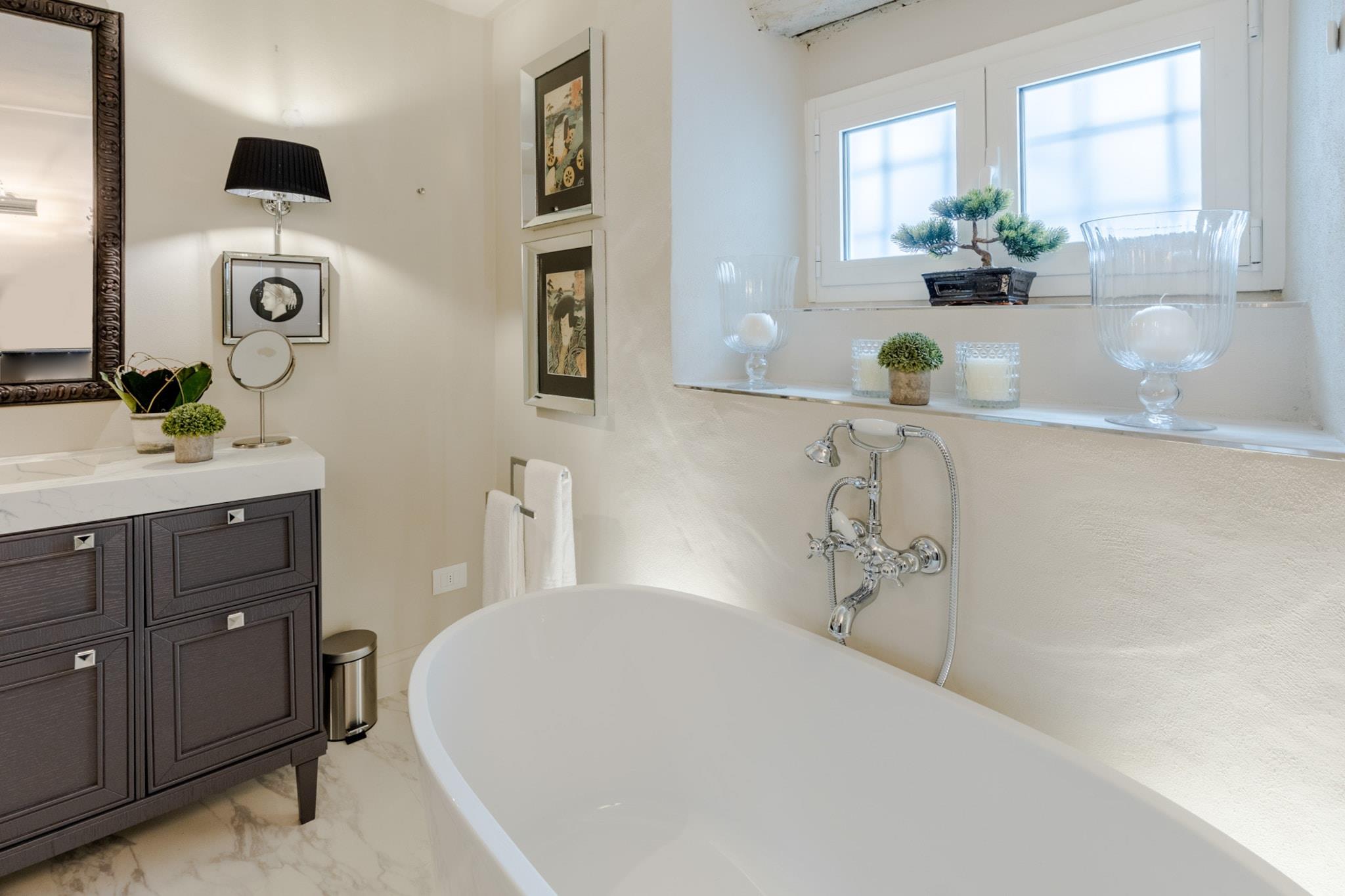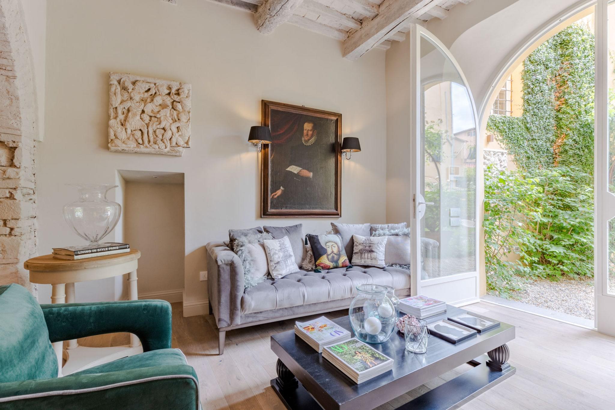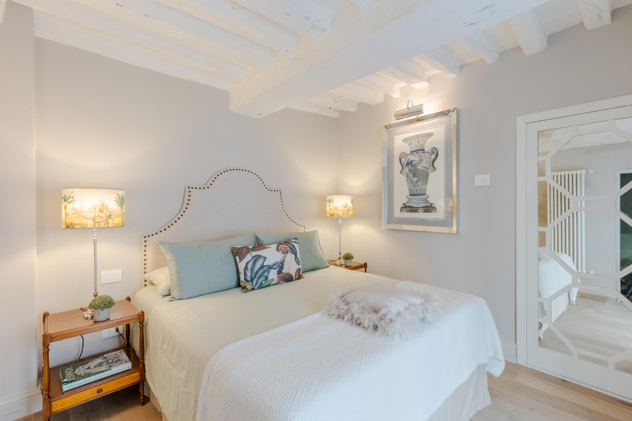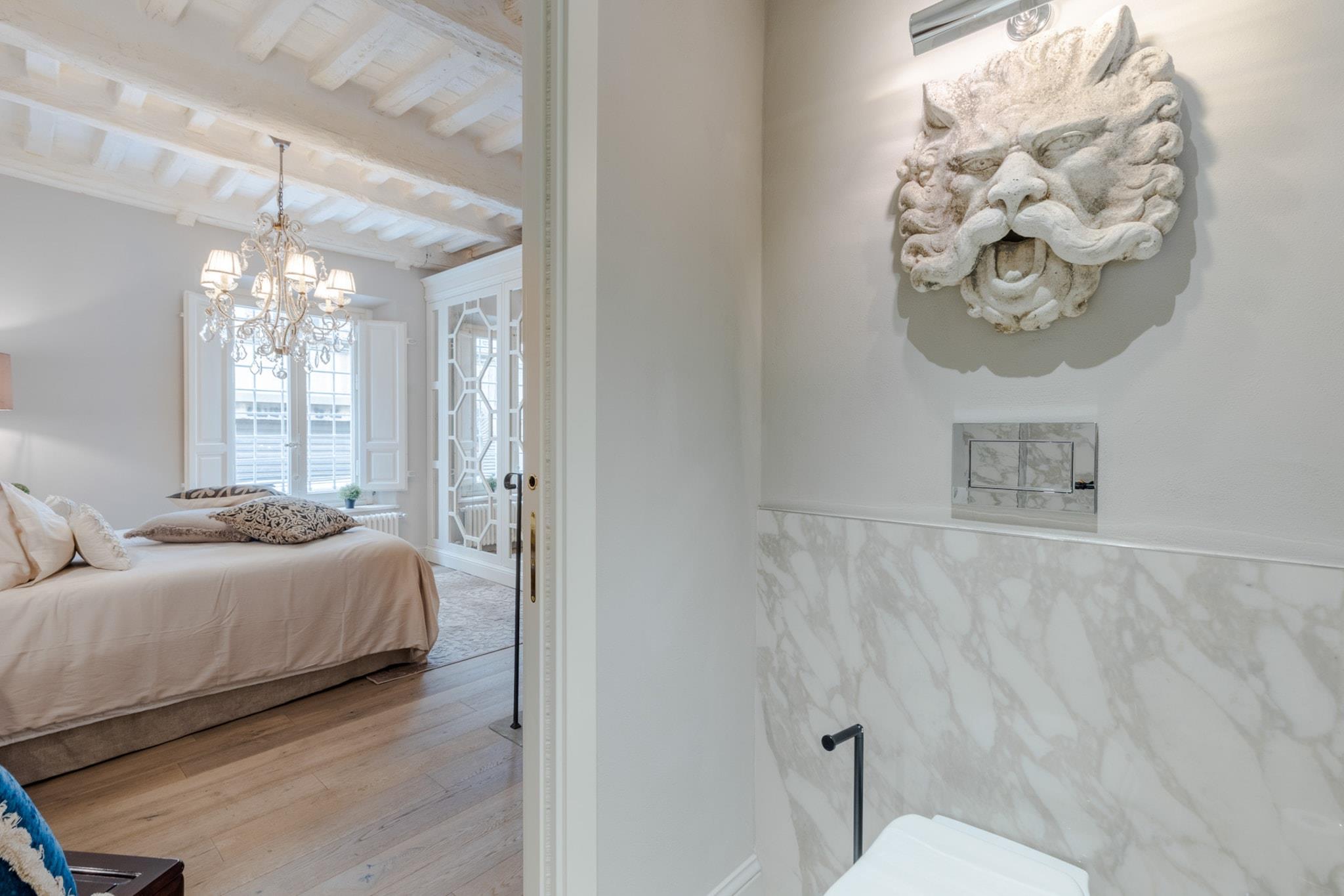 Træd ind i hjertet af Lucca og oplev denne smukt møblerede lejlighed med 2 soveværelser, et roligt tilflugtssted i centrum af byen. Denne 100 m² store bolig er perfekt til op til 4 gæster og blander moderne komfort med tidløs toscansk charme. Uanset om du er her for kultur, gastronomi eller ren afslapning, placerer denne stilfulde lejlighed dig kun få øjeblikke fra Luccas bedste tilbud. Beliggende i et pulserende område kun få skridt fra byens historiske attraktioner, livlige piazzaer, kunsthåndværkerbutikker og førsteklasses restauranter, vil du aldrig være langt fra din næste uforglemmelige oplevelse. Efter at have udforsket de brostensbelagte gader og smagt dig vej gennem nærliggende osteriaer og pizzeriaer, kan du vende tilbage til din fredelige oase for at slappe af i komfort. Lejligheden har en rummelig opholdsstue og et fuldt udstyret moderne køkken med alt hvad du behøver for at tilberede lokale delikatesser - komplet med induktionskogeplade, opvaskemaskine og espressomaskine. Aircondition, højhastigheds-Wi-Fi, vaskemaskine og tørretumbler sikrer bekvemmelighed, mens gennemtænkte detaljer som en privat have med udendørs siddepladser tilføjer et ekstra lag af afslapning til dit ophold. Uanset om du nipper til kaffe under morgensolen eller nyder vin før en bytur, tilbyder dette hjem den perfekte base for din Lucca-flugt. Alle faciliteter er her for at gøre dit ophold ubesværet, luksuriøst og vidunderligt lokalt. Bemærk: Turistskat skal betales på ejendommen.