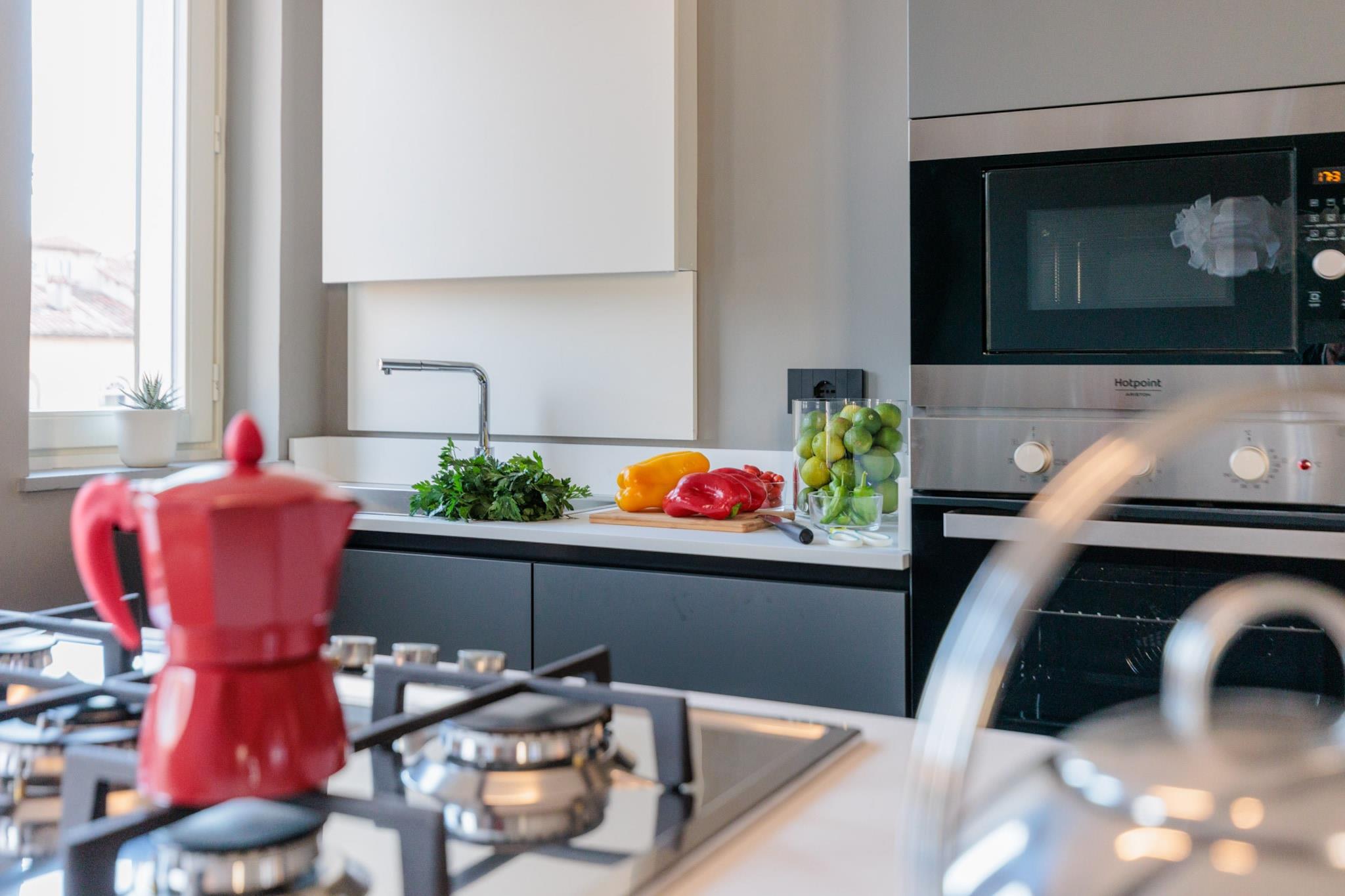 Den hvirvlende stenkrone på Guinigi-tårnet føles næsten inden for rækkevidde fra de franske vinduer i denne lejlighed på øverste etage, beliggende i en middelalderbygning inden for Luccas historiske bymure. Badet i naturligt lys og omgivet af en storslået udsigt over hustagene, blander interiøret traditionel arkitektur med moderne design. Et køkken i kokkeklasse med en central køkkenø gør det nemt at tilberede måltider, mens den tilstødende spiseplads og elegante stue tilbyder plads til at samles, slappe af og nyde landskabet. Hvert af de to dobbeltværelser tilbyder privatliv og komfort, komplet med eget badeværelse og udsigt over hustagene. Lejligheden er omhyggeligt designet til enhver sæson og forbliver kølig om sommeren og varm om vinteren, hvilket gør den til et hyggeligt tilflugtssted året rundt. Den overordnede atmosfære er rolig og tilbyder en stille flugt over den charmerende travlhed i Luccas gader. Denne lejlighed er perfekt beliggende ved krydset mellem Via Mordini og Via delle Chiavi d'Oro og placerer dig kun få skridt fra Luccas hovedattraktioner. Gå en tur til Via Fillungo eller Piazza Anfiteatro på under et minut, eller nå Piazza San Michele, Piazza Napoleone og San Martino-katedralen på blot et par minutter mere. Med shopping, restauranter, monumenter og parkering inden for rækkevidde tilbyder det en harmonisk balance mellem bekvemmelighed og fredelig livsstil. Bemærk: Turistskat skal betales på ejendommen.