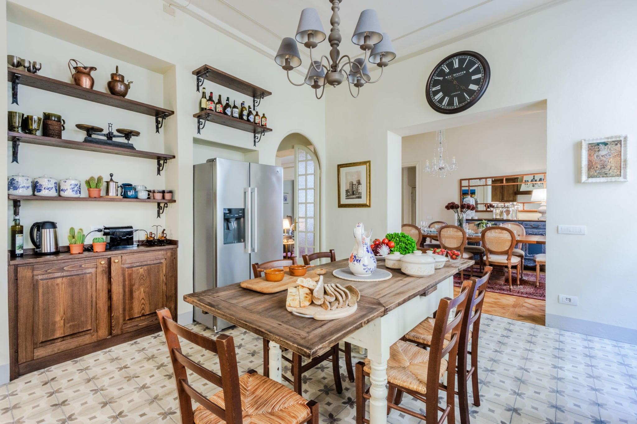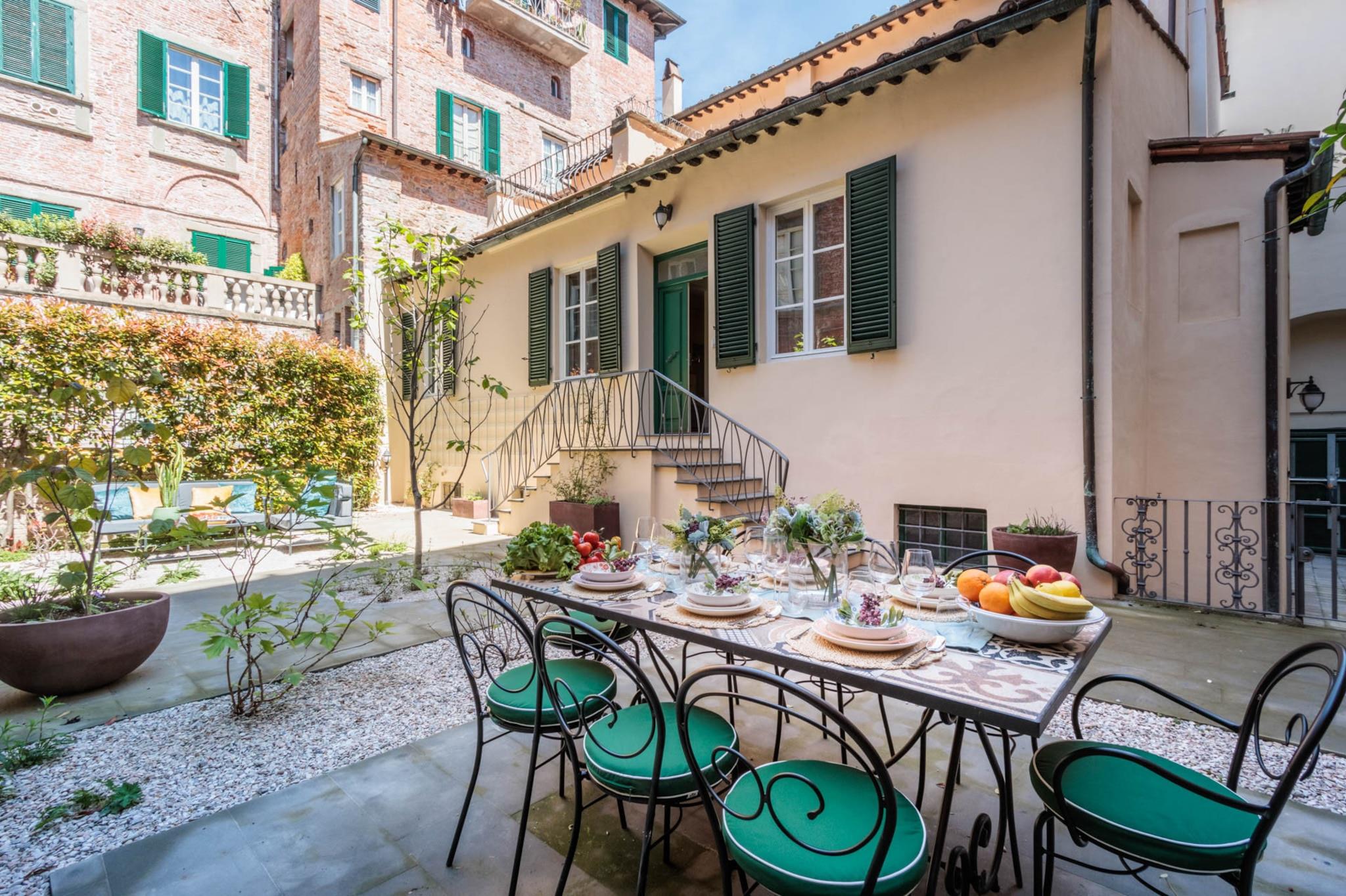 Dette rummelige feriehus er en luksuriøs villa i Luccas historiske centrum og tilbyder fire soveværelser, herunder to med kingsize-senge, en med dobbeltseng og en sovesofa i et separat opholdsområde, der komfortabelt rummer op til otte gæster. Ejendommen er ideel til familiesammenkomster eller sammenkomster med venner, men er ikke egnet til børn under otte år og tillader ikke kæledyr. Huset har aircondition (undtagen et naturligt køligt soveværelse), Wi-Fi og en privat udendørs have og terrasse, der er perfekt til afslapning eller spisning under åben himmel. Pejsene er kun dekorative og er ikke i brug. Villaen ligger inden for Luccas gamle bymure og kan prale af en misundelsesværdig beliggenhed, kun en kort gåtur fra San Martino-katedralen, Piazza Napoleone og andre ikoniske vartegn. Fra dørtrinnet kan gæsterne udforske charmerende gader med kunsthåndværkerbutikker, lokale caféer og traditionelle restauranter. Villaen ligger i gåafstand fra byens største attraktioner, herunder Duomoen, Guinigi-tårnet og Puccini-koncertsteder. Luccas togstation ligger også i nærheden og tilbyder nem adgang til dagsture til Pisa, Firenze eller den toscanske kyst. Villaens 340 m² elegante opholdsrum omfatter flere opholdsområder, et fuldt udstyret køkken med moderne apparater, et vaskerum med vaskemaskine og tørretumbler samt tre badeværelser. Udendørsområderne tilbyder en rolig oase med frodige grønne områder og en terrasse til afslappende aftener. Yderligere faciliteter inkluderer et cykelopbevaringsrum, sengetøj af høj kvalitet og håndklædeskift hver anden dag. Forbrugsomkostninger såsom elektricitet, aircondition, varme, Wi-Fi og slutrengøring er inkluderet. Bemærk: Turistskat skal betales på ejendommen.