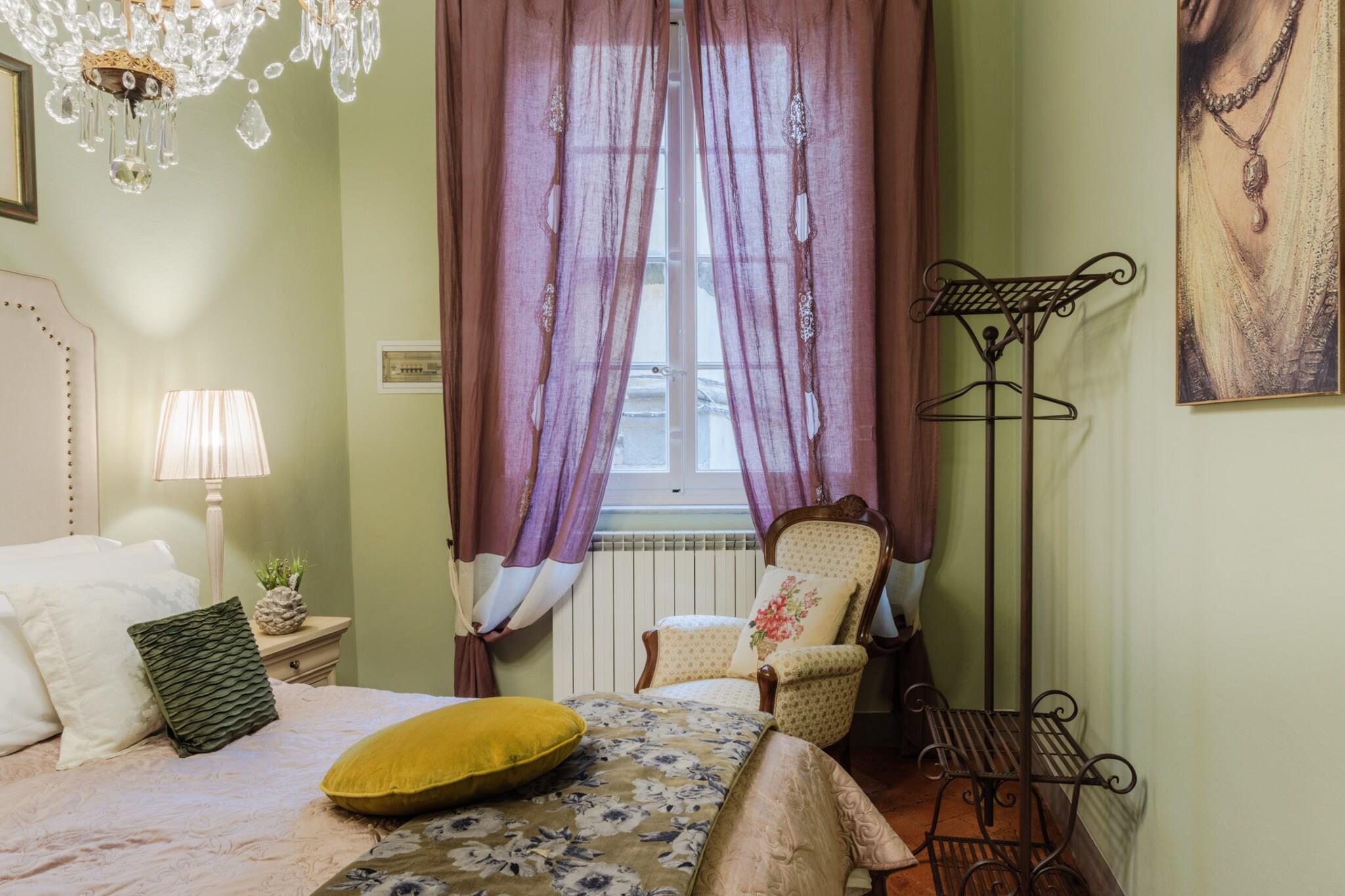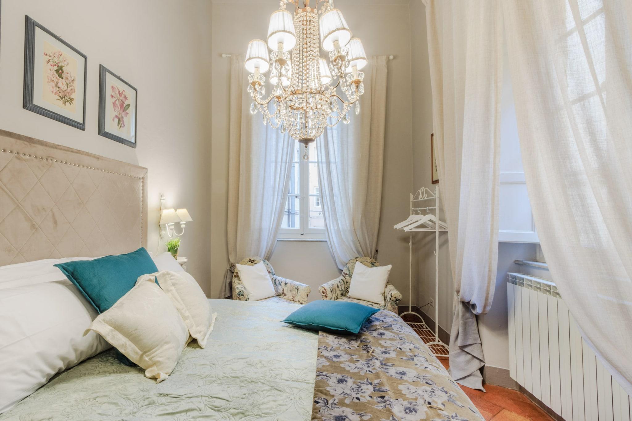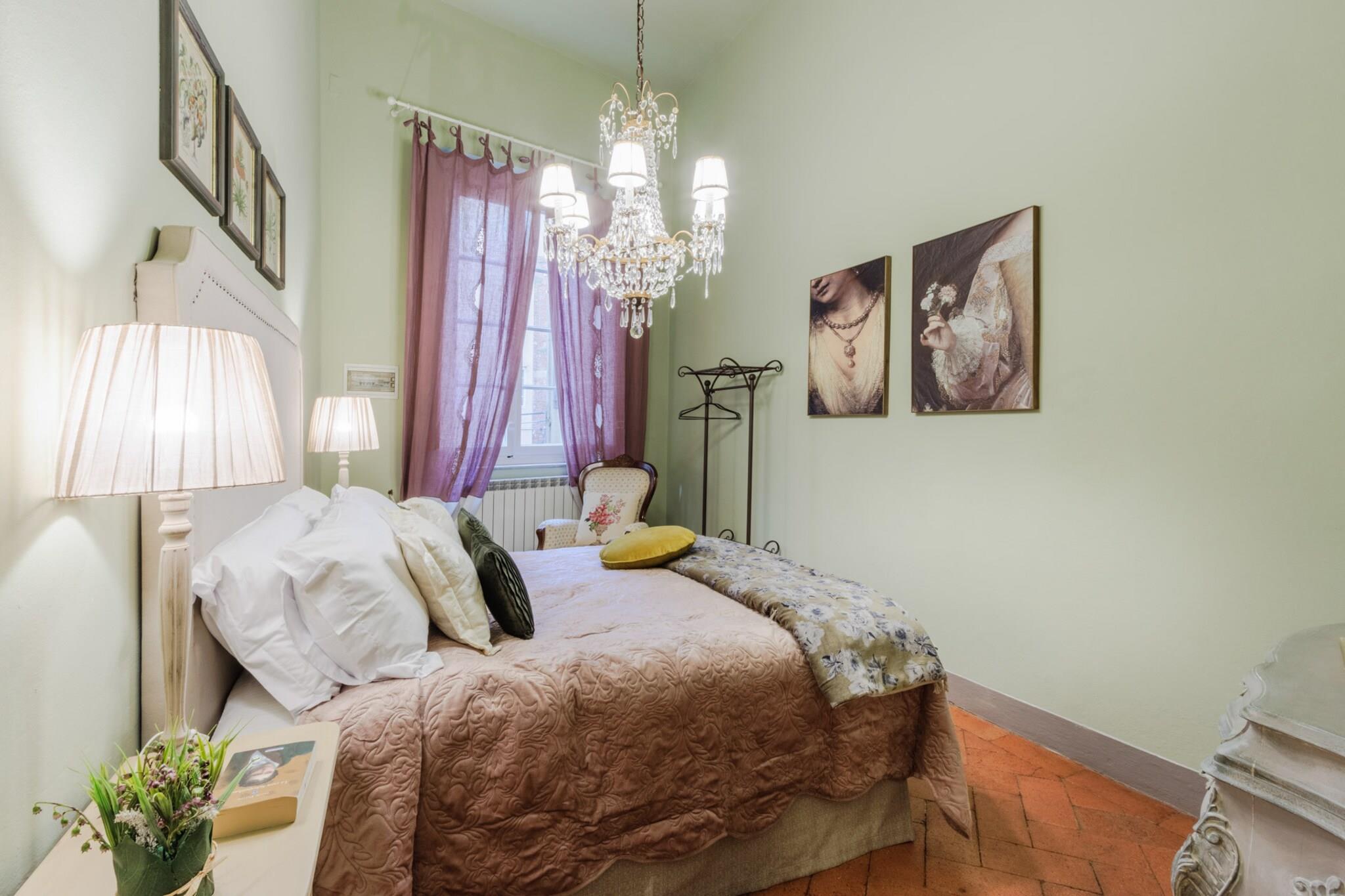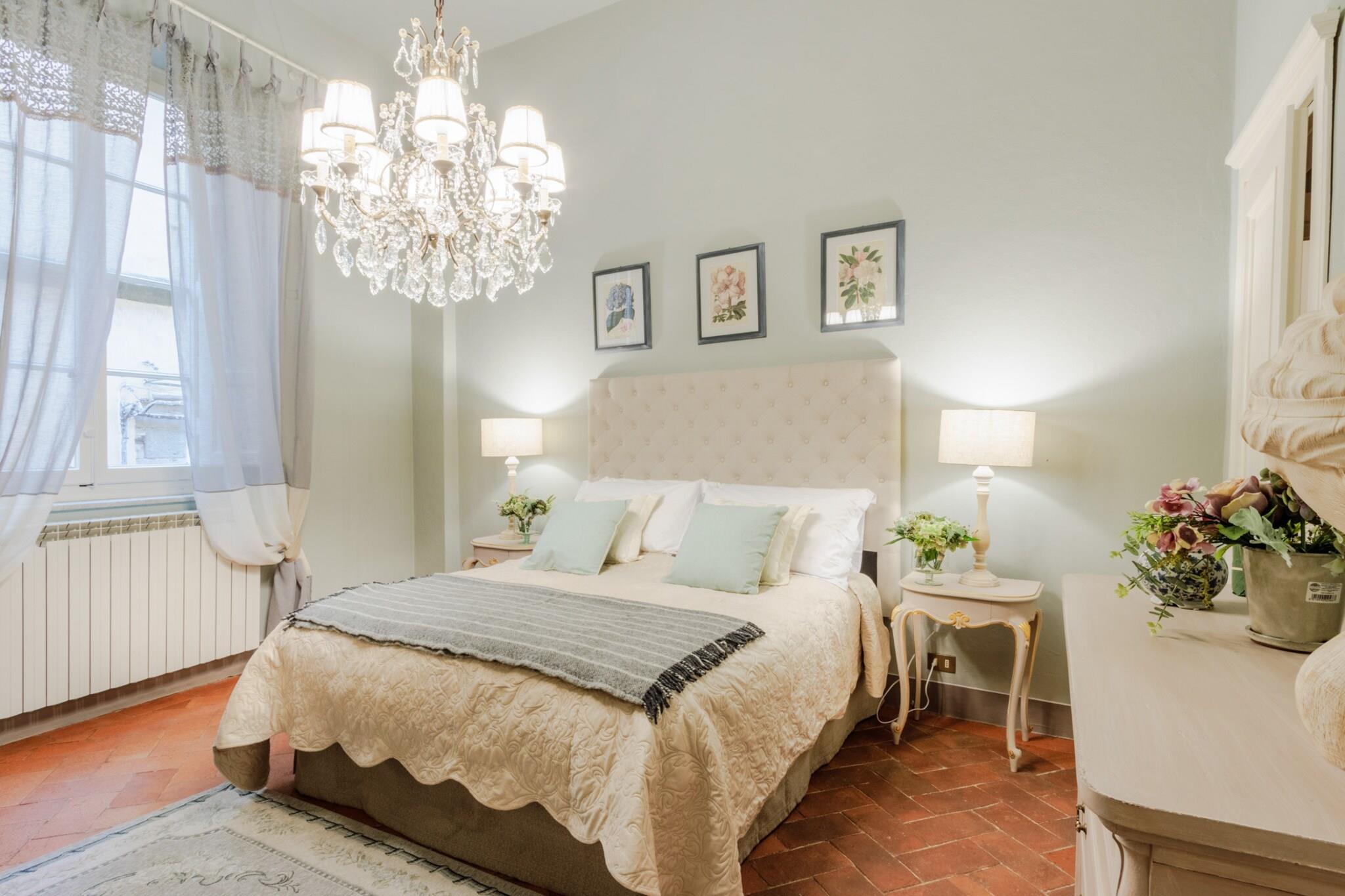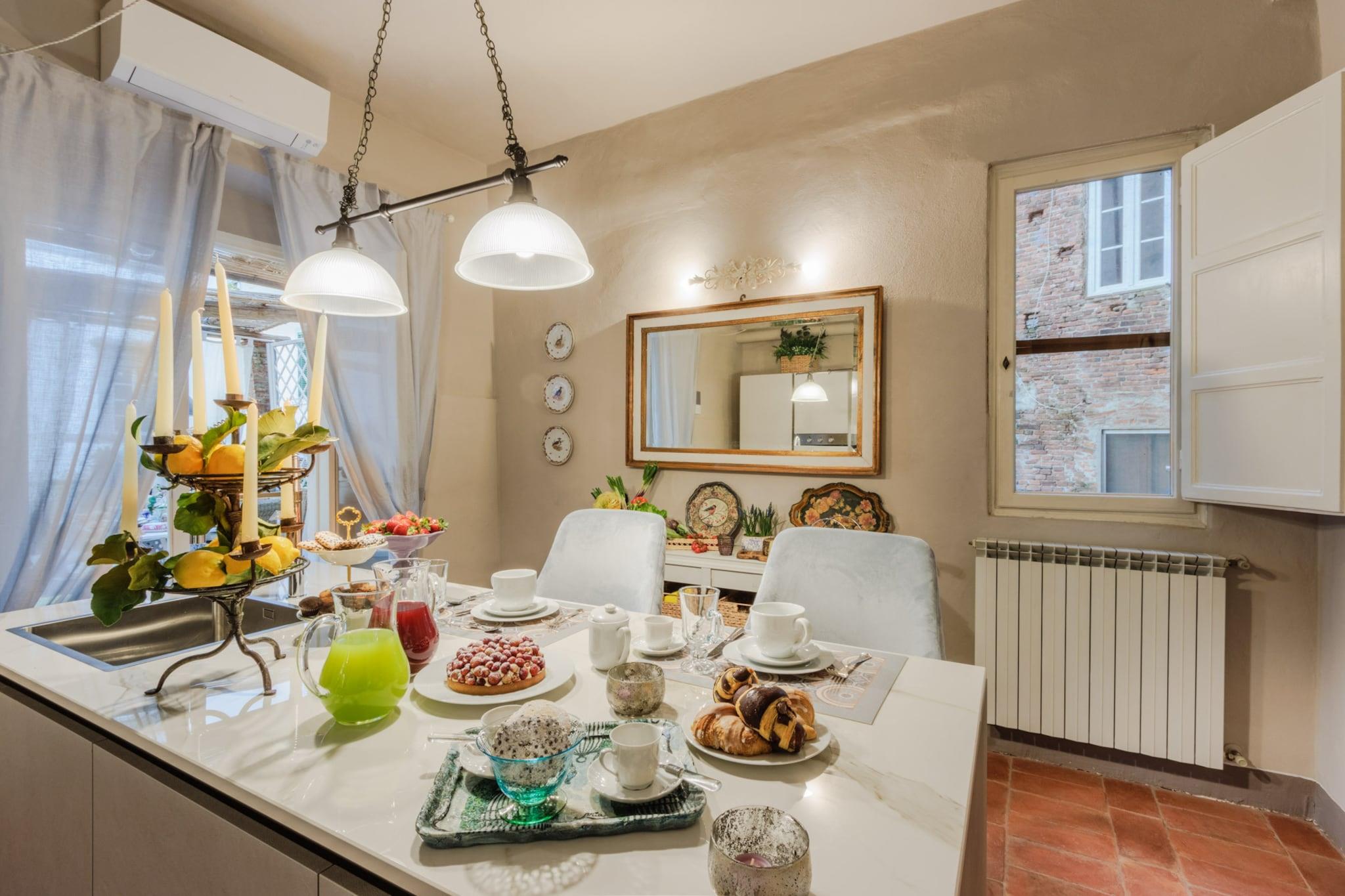 Oplev Luccas charme fra denne elegante lejlighed på første sal, hvor moderne komfort møder historisk italiensk charme. Dette hjem med tre soveværelser og to badeværelser tilbyder et stilfuldt og roligt tilflugtssted, perfekt til familier eller små grupper, der søger en autentisk oplevelse i bymidten. Træd ind i en lys opholds- og spisestue, designet til afslapning og hyggelige måltider, og nyd et fuldt udstyret køkken, hvor det er nemt at tilberede morgenmad eller en afslappet middag. Hvert soveværelse har en komfortabel dobbeltseng, og soveværelset har et ensuite badeværelse, mens det ekstra badeværelse betjener de andre soveværelser og sikrer privatliv og bekvemmelighed for alle gæster. Lejlighedens sande højdepunkt er dens store terrasse. Her kan du nippe til morgenkaffe, spise udendørs eller blot slappe af, mens du nyder panoramaudsigten over Luccas historiske hustage, charmerende haver og den indviklede arkitektur i renæssancepaladser. Terrassen giver et fredeligt sted at nyde middelhavssolen, mens du føler dig forbundet med den pulserende energi i byen nedenfor. Beliggende kun få skridt fra ikoniske vartegn som katedralen, Piazza Anfiteatro, Piazza San Michele og Via Fillungos butikker og caféer, placerer denne lejlighed det bedste af Lucca lige uden for døren. Med sin blanding af elegance, historiske omgivelser og udendørs plads er denne lejlighed en perfekt base for at udforske Lucca og tilbyder en mindeværdig flugt i bymidten, hvor hvert øjeblik er fyldt med italiensk charme. Rygning og kæledyr er ikke tilladt, hvilket sikrer et roligt og velholdt miljø. Bemærk: Turistskat skal betales på ejendommen.