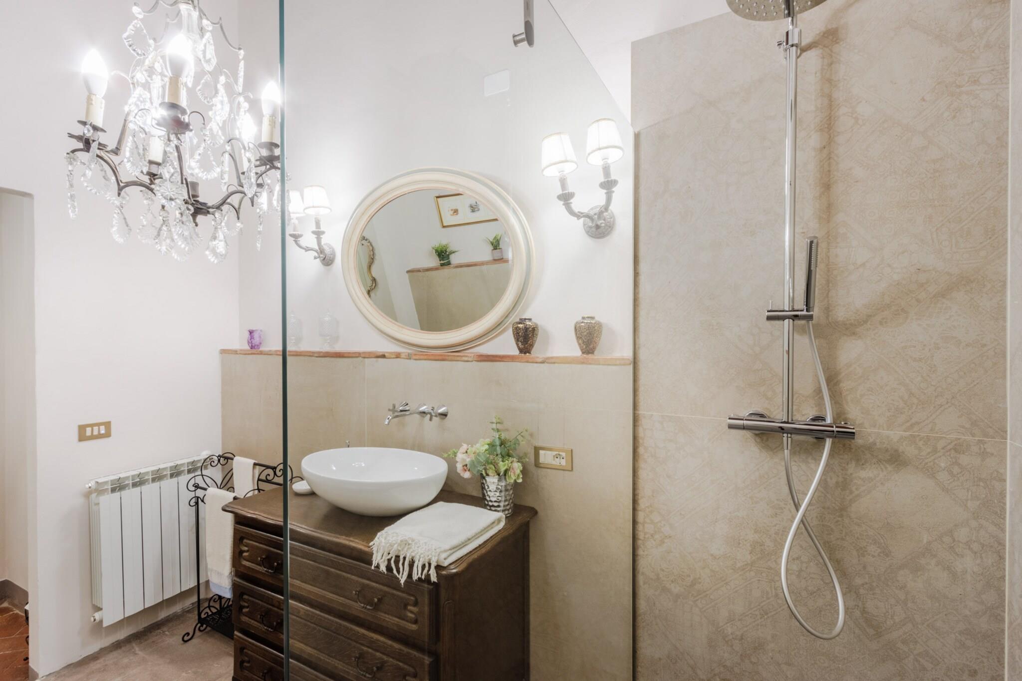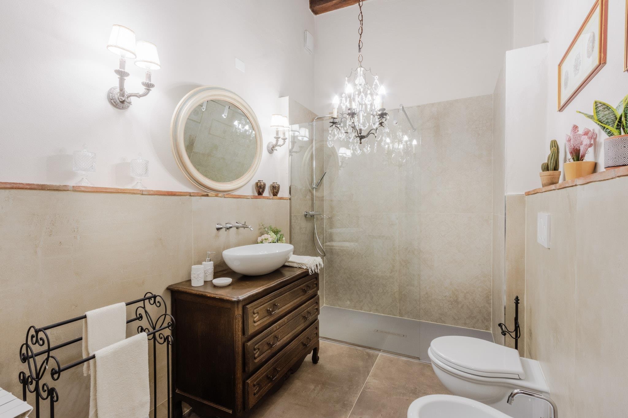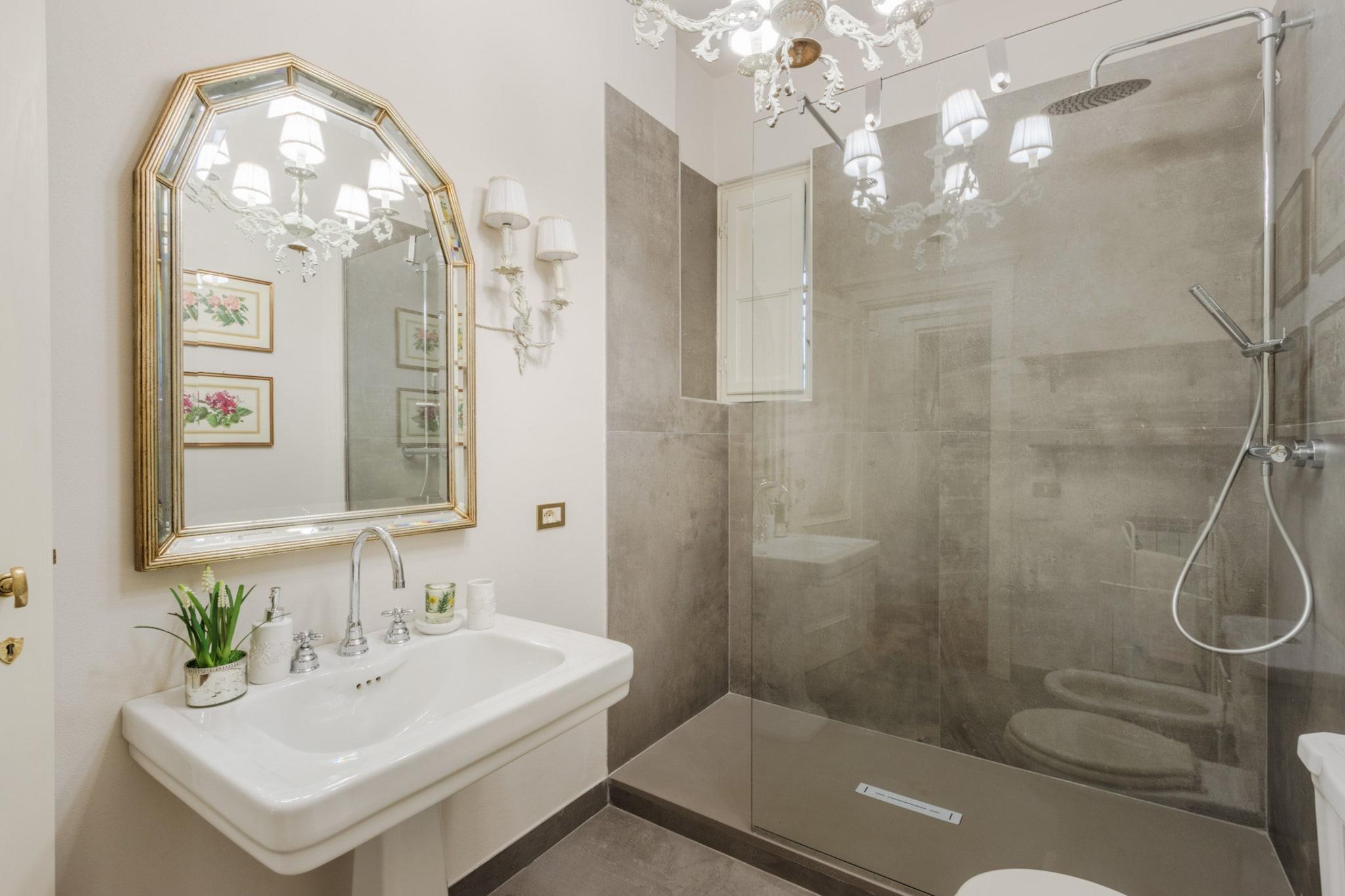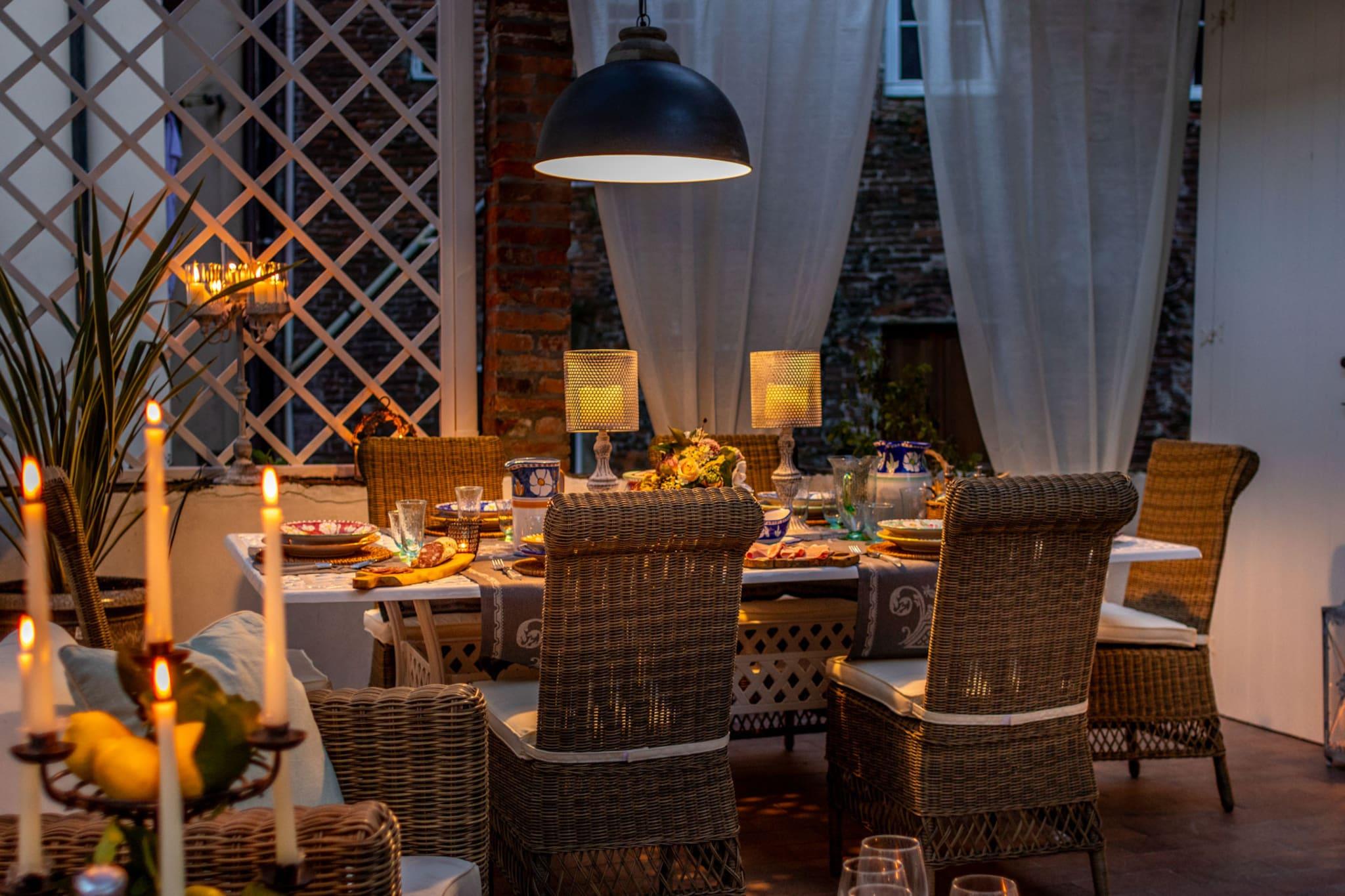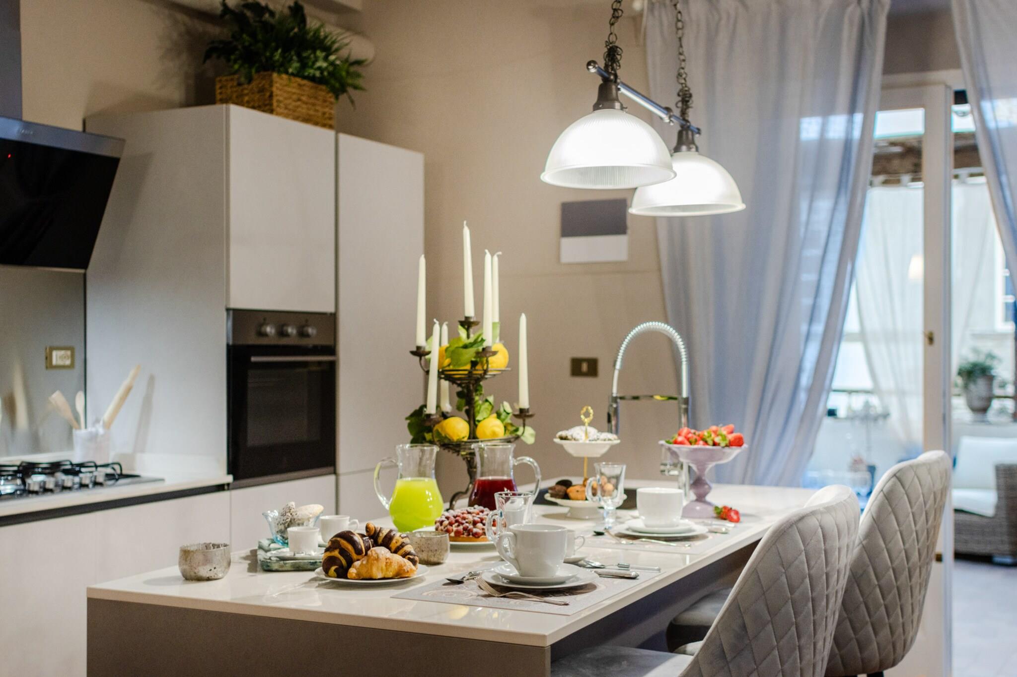 Oplev Luccas charme fra denne elegante lejlighed på første sal, hvor moderne komfort møder historisk italiensk charme. Dette hjem med tre soveværelser og to badeværelser tilbyder et stilfuldt og roligt tilflugtssted, perfekt til familier eller små grupper, der søger en autentisk oplevelse i bymidten. Træd ind i en lys opholds- og spisestue, designet til afslapning og hyggelige måltider, og nyd et fuldt udstyret køkken, hvor det er nemt at tilberede morgenmad eller en afslappet middag. Hvert soveværelse har en komfortabel dobbeltseng, og soveværelset har et ensuite badeværelse, mens det ekstra badeværelse betjener de andre soveværelser og sikrer privatliv og bekvemmelighed for alle gæster. Lejlighedens sande højdepunkt er dens store terrasse. Her kan du nippe til morgenkaffe, spise udendørs eller blot slappe af, mens du nyder panoramaudsigten over Luccas historiske hustage, charmerende haver og den indviklede arkitektur i renæssancepaladser. Terrassen giver et fredeligt sted at nyde middelhavssolen, mens du føler dig forbundet med den pulserende energi i byen nedenfor. Beliggende kun få skridt fra ikoniske vartegn som katedralen, Piazza Anfiteatro, Piazza San Michele og Via Fillungos butikker og caféer, placerer denne lejlighed det bedste af Lucca lige uden for døren. Med sin blanding af elegance, historiske omgivelser og udendørs plads er denne lejlighed en perfekt base for at udforske Lucca og tilbyder en mindeværdig flugt i bymidten, hvor hvert øjeblik er fyldt med italiensk charme. Rygning og kæledyr er ikke tilladt, hvilket sikrer et roligt og velholdt miljø. Bemærk: Turistskat skal betales på ejendommen.