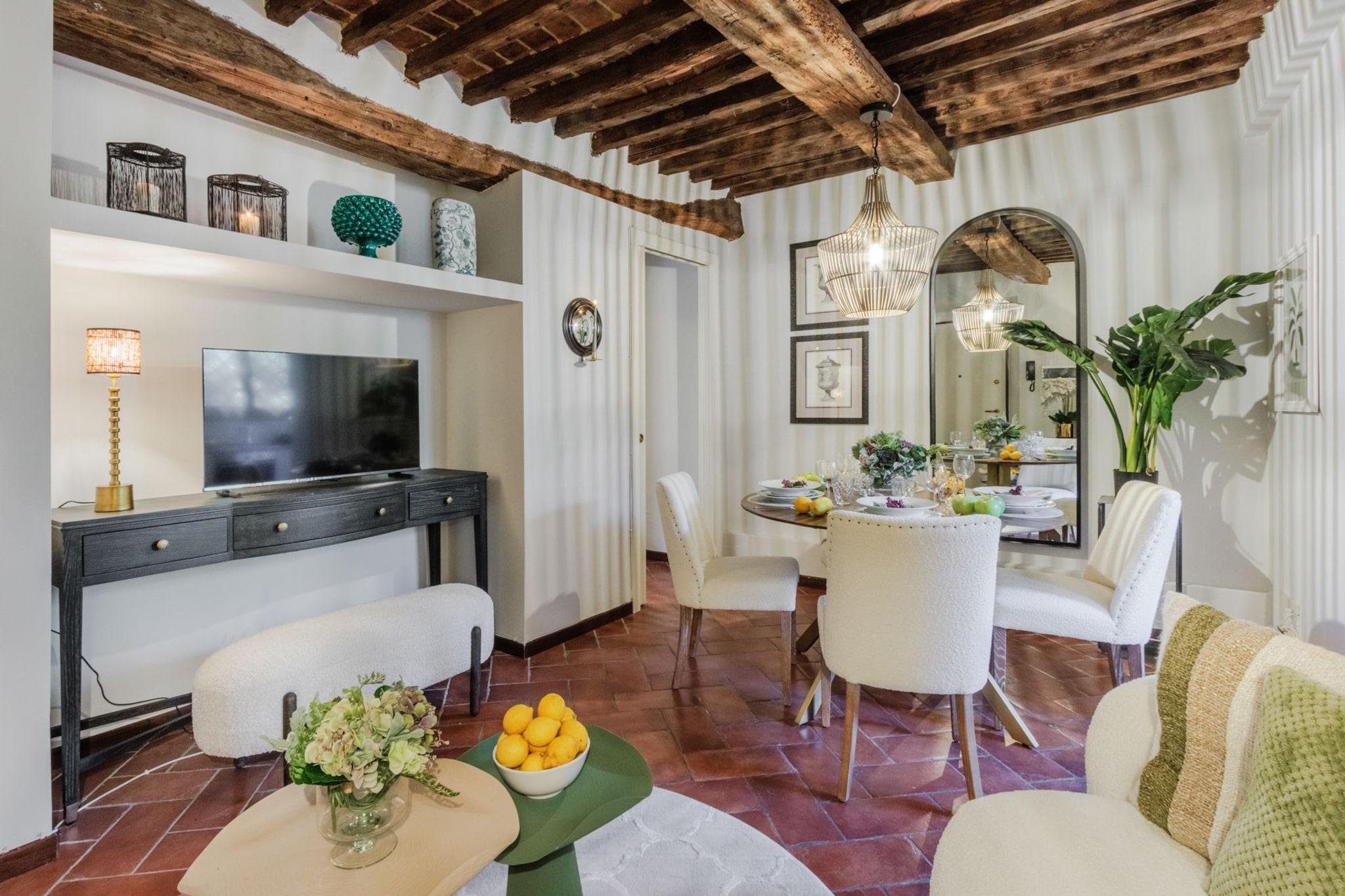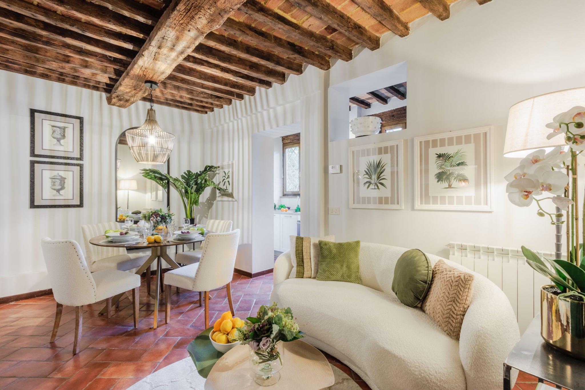 Denne stilfulde og rolige lejlighed med et soveværelse ligger inden for Luccas historiske mure og tilbyder den perfekte blanding af moderne komfort og gammeldags charme. Dette 50 m² store tilflugtssted er ideelt til par eller solorejsende og er omhyggeligt designet med en hyggelig opholds- og spisestue, et fuldt udstyret køkken, et vaskerum/opbevaringsrum, et moderne badeværelse med bruser og et fredeligt soveværelse med en dobbeltseng. Casa Genny ligger i en rolig, men central del af byen, kun få skridt fra Luccas ikoniske brostensbelagte gader, charmerende piazzaer og berømte restauranter. Uanset om du ankommer med bil, tog eller bus, sikrer lejlighedens førsteklasses beliggenhed nem adgang til transport og nærliggende parkering, hvilket gør den til en bekvem base for at udforske byen og det omkringliggende toscanske landskab. Efter en dag med sightseeing kan du slappe af i dit private fristed. Nyd et glas lokal vin, hold dig forbundet med gratis Wi-Fi, eller slap blot af i den varme atmosfære i dette smukt indrettede rum. Med gennemtænkte faciliteter og en indbydende atmosfære er denne lejlighed dit perfekte hjem væk fra hjemmet i Lucca. Bemærk: Turistskat skal betales på ejendommen.