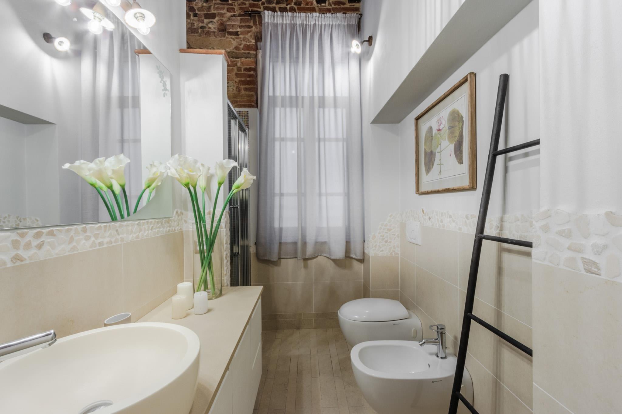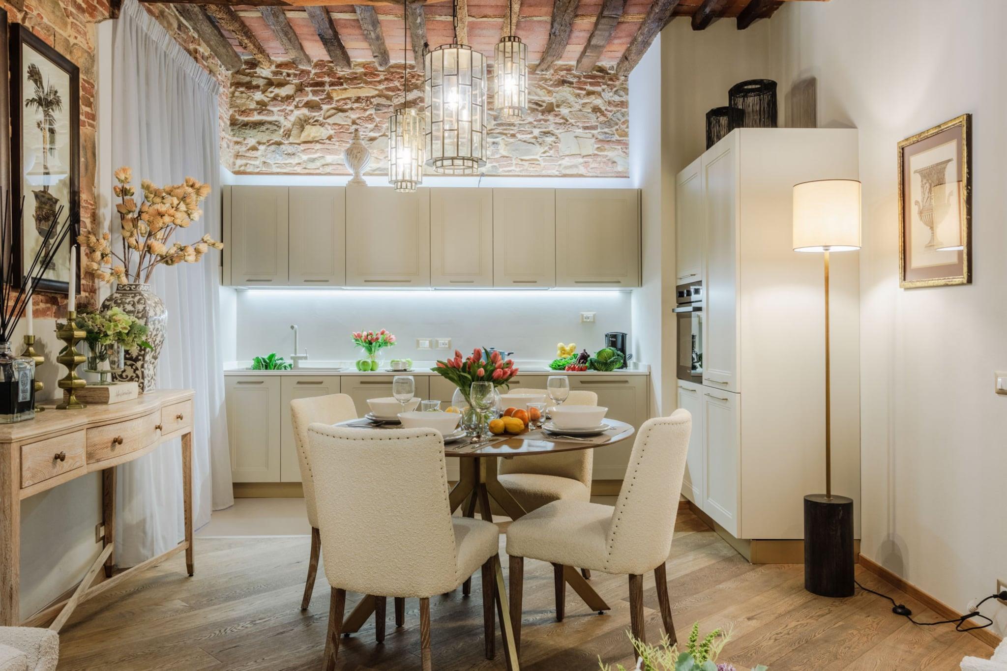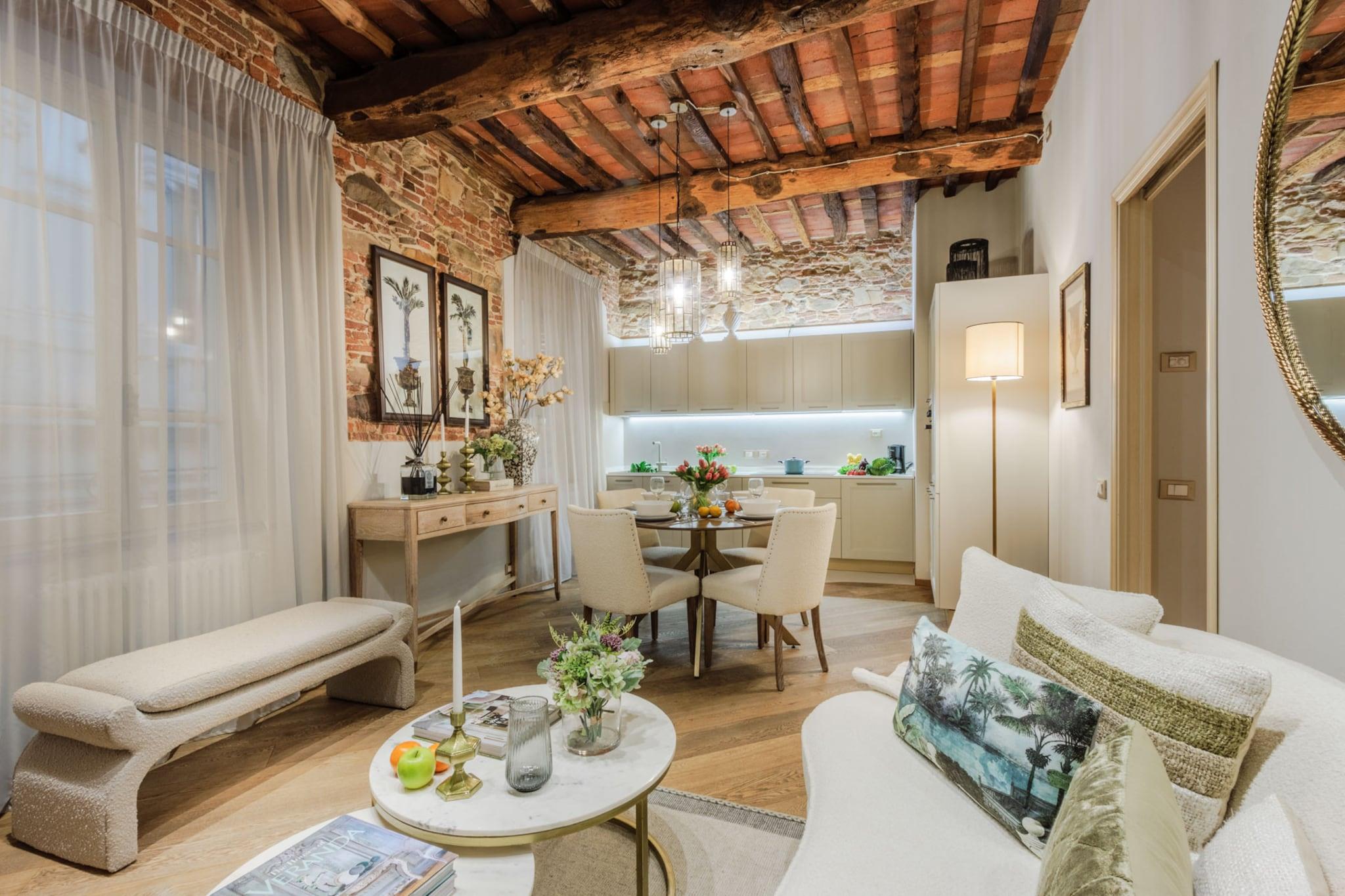 Velkommen til din fredfyldte oase, gemt væk på en stille gade i byens pulserende hjerte. Perfekt beliggende mellem to af dens mest ikoniske vartegn – Piazza San Michele og Piazza Napoleone (Piazza Grande) – tilbyder denne stilfulde lejlighed på første sal den ideelle balance mellem energi og ro. Nyrenoveret med et skarpt øje for detaljer kombinerer den moderne elegance med komfort. Det rummelige soveværelse inviterer dig til at slappe af efter en dag med udforskning, mens det andet værelse med sin enkeltseng og skrivebord tilbyder fleksibilitet som enten et hyggeligt tilflugtssted for en tredje gæst eller et produktivt arbejdsområde til længere ophold. Den åbne stue og spisestue flyder problemfrit over i et fuldt udstyret køkken, der fremmer både kulinarisk kreativitet og øjeblikke med samvær. Et elegant badeværelse med bruseniche og bekvemmeligheden ved en vaskemaskine og tørretumbler sikrer et stressfrit ophold. Træd udenfor, og byens skatte udfolder sig lige uden for døren. Fra morgencappuccinoer på solbeskinnede piazzaer til aftenspaadere gennem historiske gader, er hver oplevelse kun få minutter væk. Rejsende vil også sætte pris på den uovertrufne bekvemmelighed ved kun at være 5 minutters gang fra togstationen, busterminalen og parkeringspladserne, hvilket gør det nemt at udforske både byen og dens omgivelser. Uanset om du er her for en romantisk ferie, en familieferie eller en forretningsrejse, tilbyder denne lejlighed en perfekt blanding af beliggenhed, stil og komfort – dit private fristed i hjertet af byen.