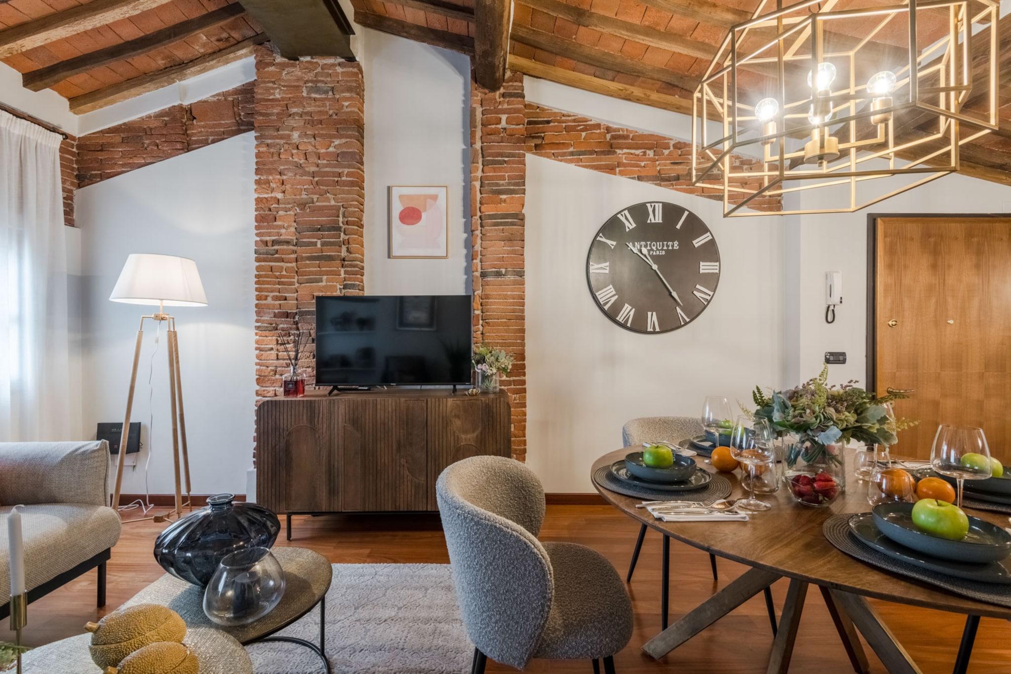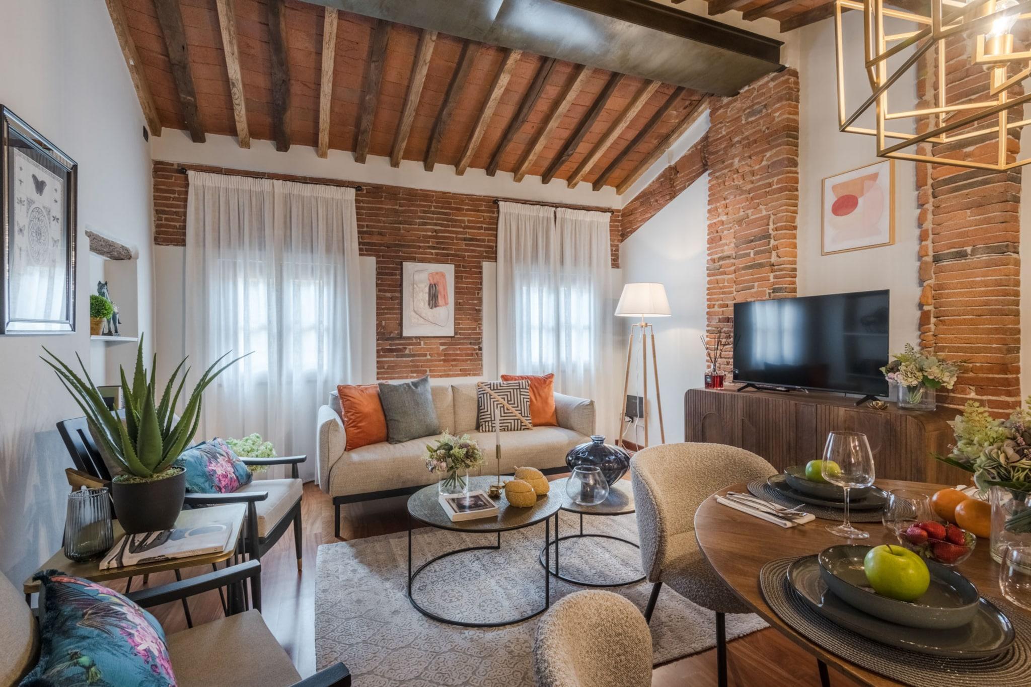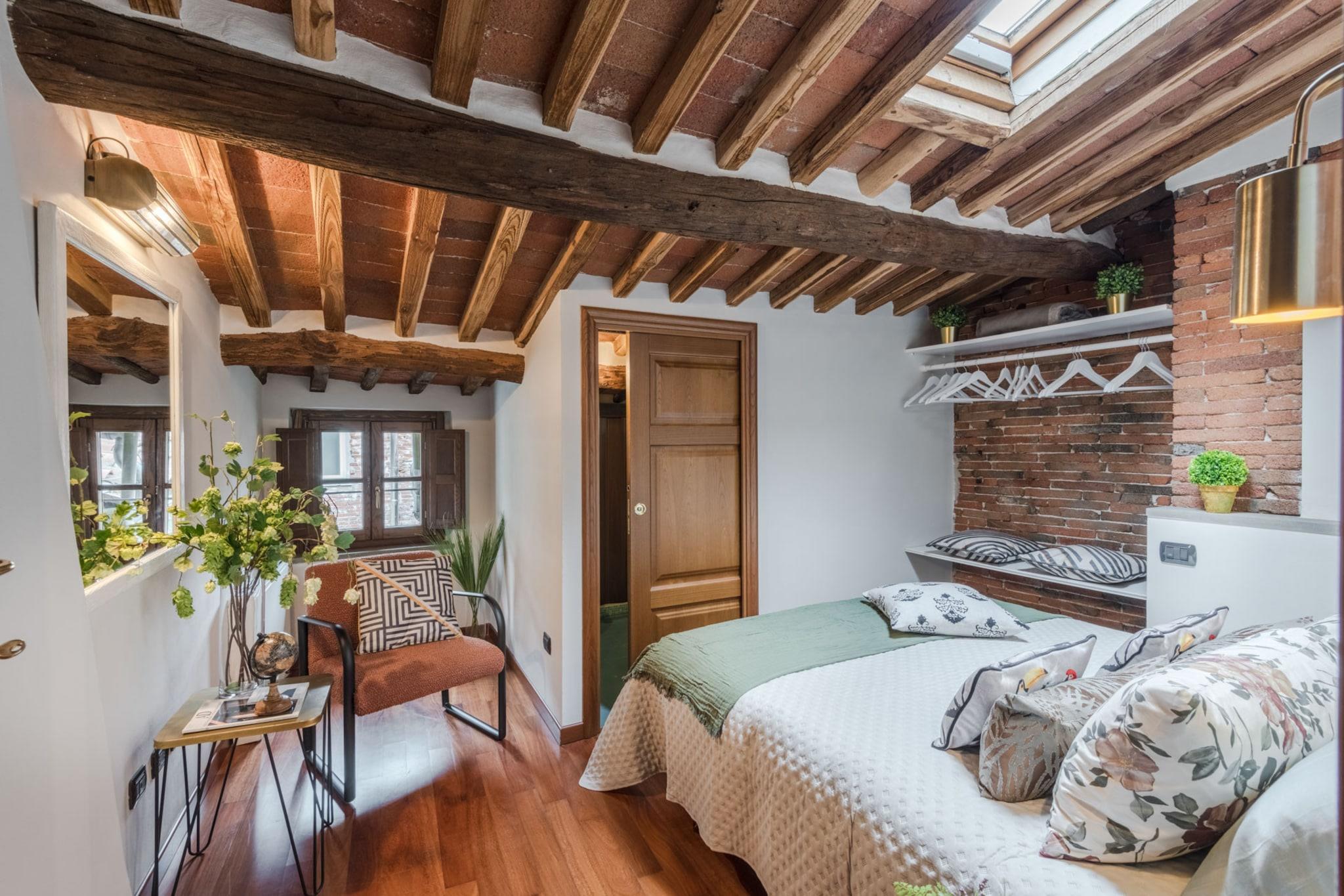Denne elegante lejlighed på 90 m² i hjertet af Lucca tilbyder en perfekt blanding af komfort, stil og bekvemmelighed. Med to smagfuldt møblerede soveværelser kan den komfortabelt rumme op til 4 gæster – ideel til familier, par eller venner, der ønsker at udforske Toscanas charme. Beliggende i et roligt område i det historiske centrum, er du kun få skridt fra Luccas bedste restauranter, butikker og kulturelle vartegn. Lejligheden har en rummelig opholdsstue, et fuldt udstyret separat køkken med moderne apparater, herunder induktionskogeplade, opvaskemaskine og kaffemaskine, samt et nyrenoveret badeværelse. Yderligere faciliteter inkluderer aircondition, Wi-Fi, vaskemaskine og fladskærms-tv, hvilket sikrer et behageligt og forbundet ophold. Med Lucca Centralstation kun 1 km væk og nem adgang til nærliggende destinationer som Pisa, Firenze og strandene i Viareggio, er denne lejlighed en fantastisk base for at opdage det bedste af Toscana. Uanset om du slentrer gennem de historiske gader, nyder lokal mad eller planlægger dagsture til kysten eller landskabet, tilbyder denne centralt beliggende lejlighed alt, hvad du behøver for en mindeværdig italiensk ferie. Bemærk: Turistskat skal betales på ejendommen.