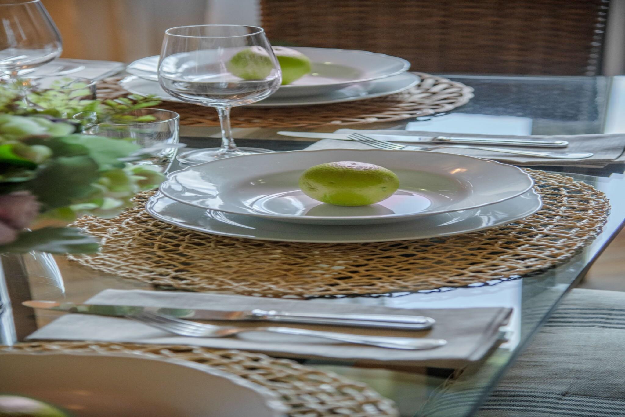 På 2. etage: (Køkken(elkedel, brødrister, kaffemaskine, ovn, mikrobølgeovn, opvaskemaskine , køleskab, fryser, Saftpresser, ), stue / spisestue(Fjernsyn, spisebord, sofahjørne), soveværelse(dobbeltseng), Soveværelse med badeværelse(dobbeltseng, bruser), badeværelse(bruser)) tørretumbler, tremmeseng, vaskemaskine, klimaanlæg, barnestol, strygejern, føntørrer