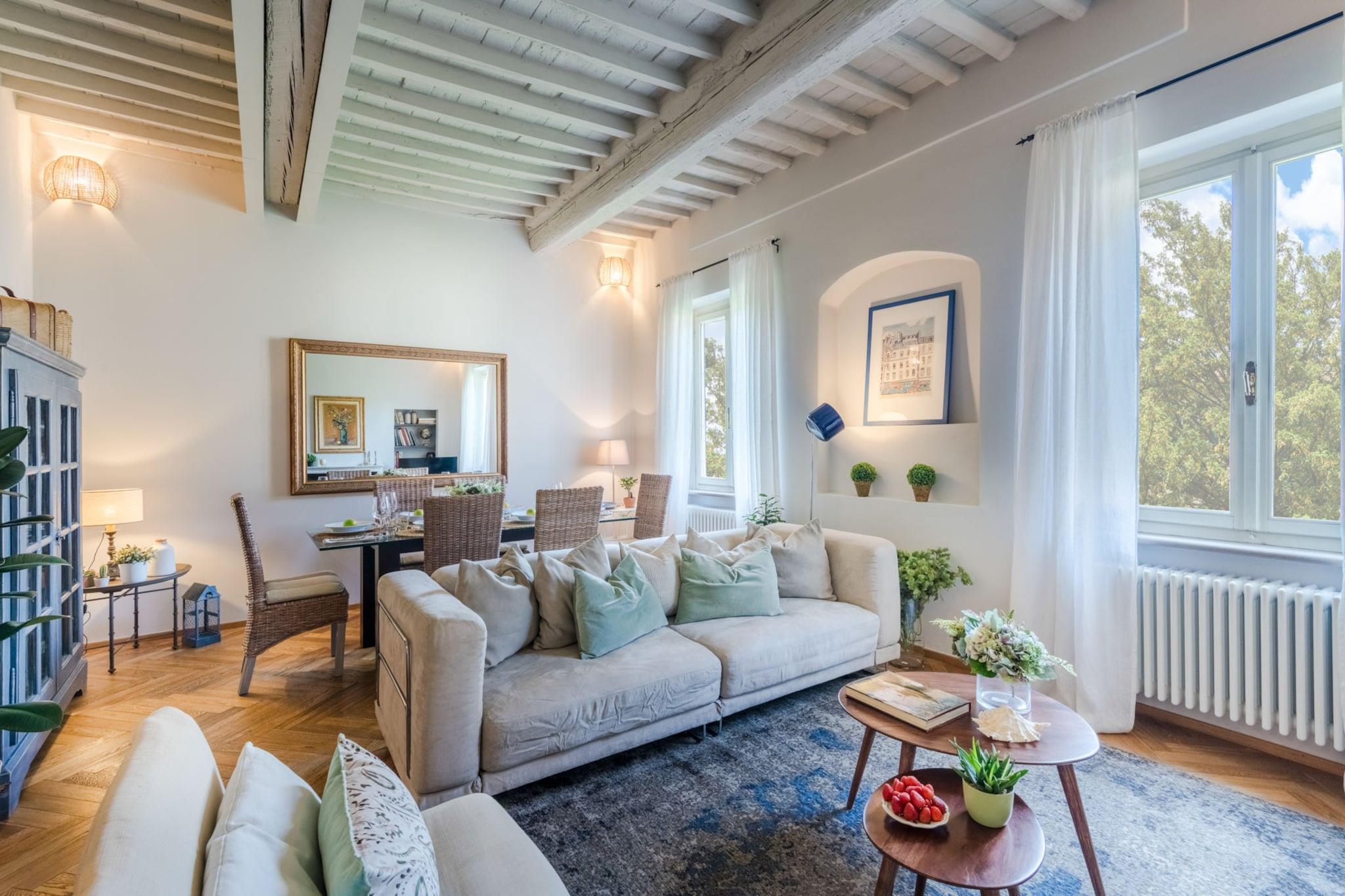 Velkommen til Garden Vista, en rolig og solrig lejlighed beliggende på anden sal inden for Luccas historiske bymure. Dette charmerende tilflugtssted har to smukt indrettede soveværelser og to moderne badeværelser, der tilbyder en perfekt blanding af antik karakter og moderne komfort. Med udsigt over en tidløs have tilbyder lejligheden en fredelig flugt i hjertet af byen. Indenfor er rummet fyldt med naturligt lys og omhyggeligt indrettet med en blanding af moderne bekvemmeligheder og håndplukkede vintagemøbler. Det fuldt udstyrede køkken indeholder alt, hvad der er nødvendigt for hjemmelavede måltider, mens den hyggelige opholds- og spisestue indbyder til afslapning efter en dag med udforskning. Aircondition, Wi-Fi, vaskemaskine og tørretumbler sikrer et behageligt og bekvemt ophold. Garden Vista ligger kun få skridt fra Via Fillungo, Luccas pulserende shopping- og spisegade, og tilbyder nem adgang til lokale markeder, caféer og kulturelle vartegn. Uanset om du nipper til kaffe med udsigt over haven eller slentrer gennem byens historiske gader, er denne lejlighed en ideel base for at opdage Toscanas skønhed og charme. Bemærk: Turistskat skal betales på ejendommen.