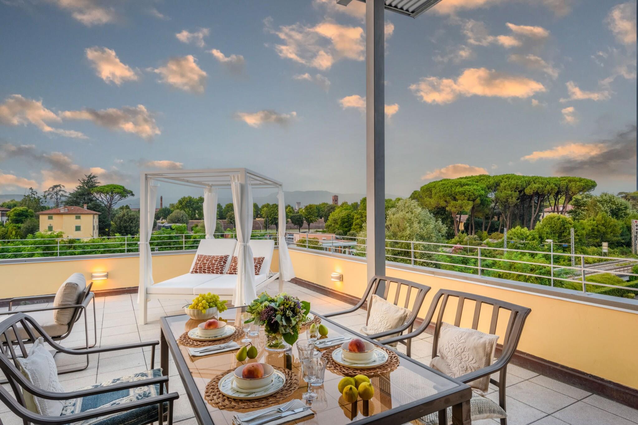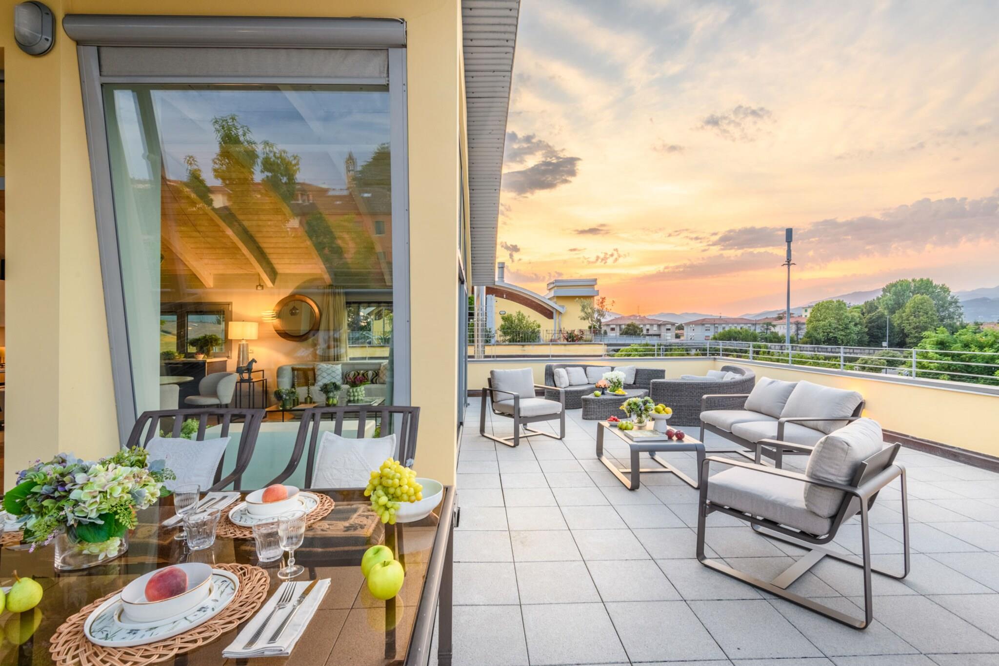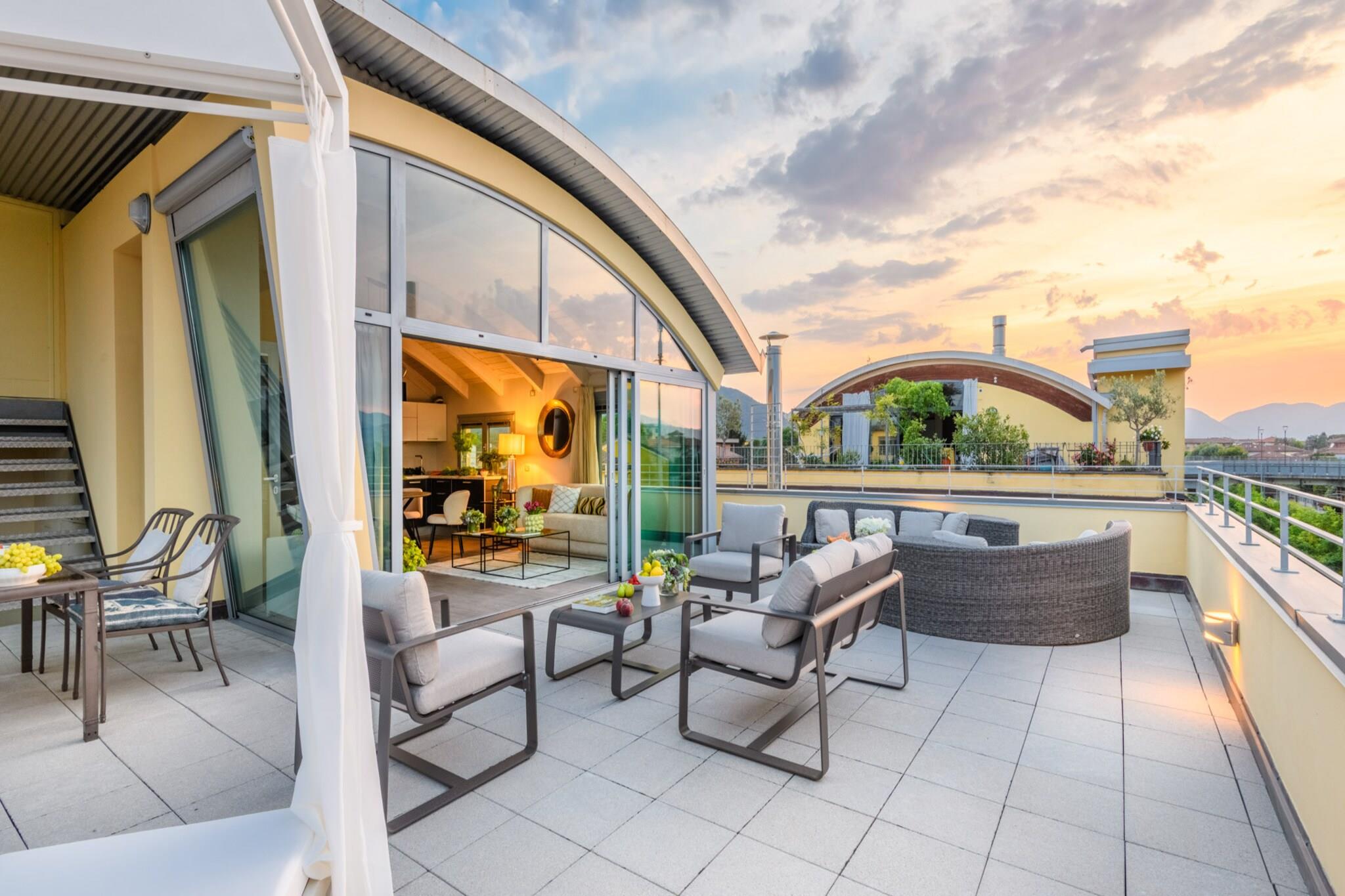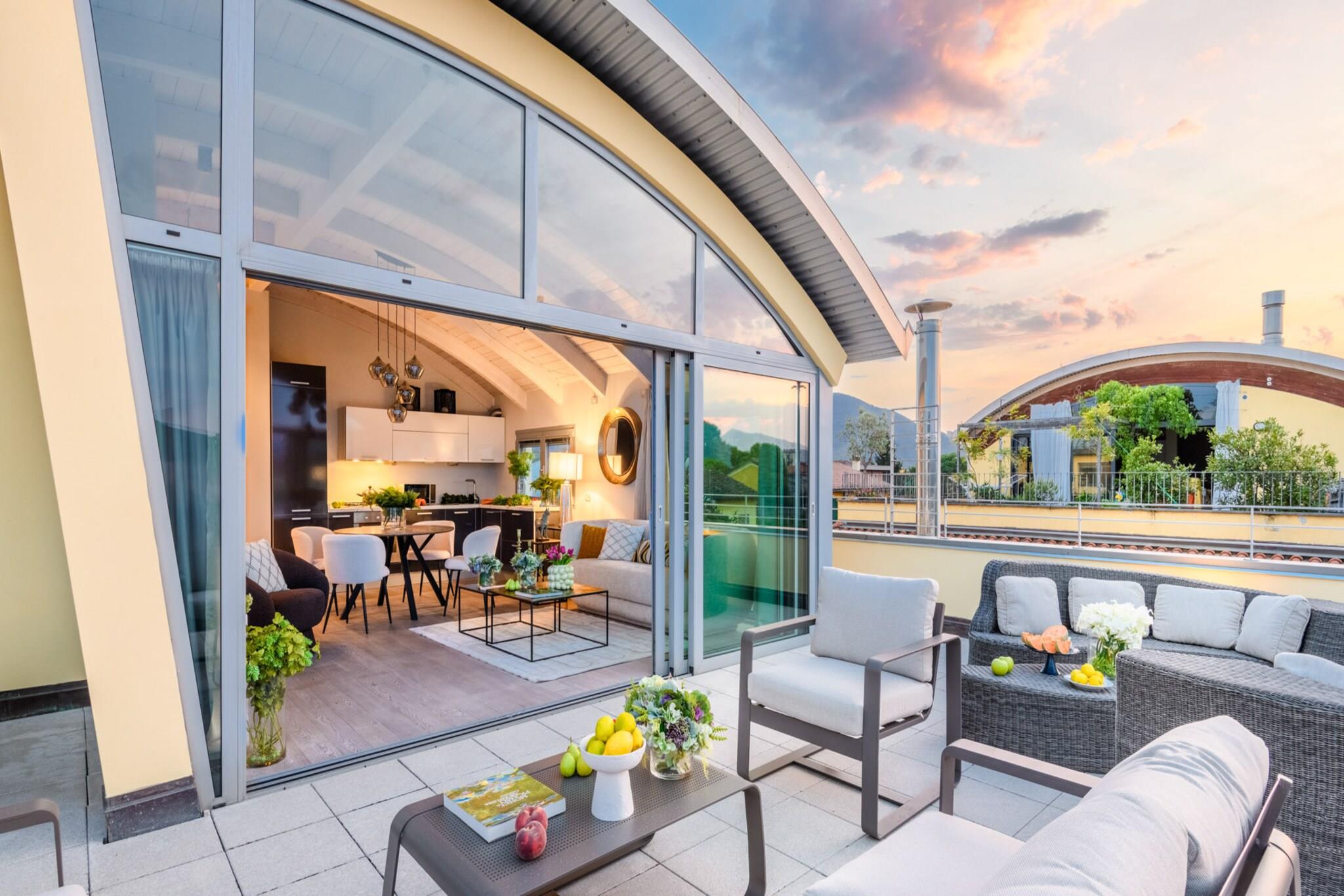 Forestil dig at vågne op i et solbeskinnet fristed over Luccas historiske mure, badet i gyldent lys gennem gulv-til-loft-glas. Denne moderne penthouse i rolige San Concordio tilbyder uovertruffen luksus og blander moderne design med Toscanas tidløse skønhed. Træd ind i et rummeligt, åbent opholdsrum, hvor elegante møbler møder naturligt lys. Glasvægge indrammer en betagende panoramaudsigt over Luccas gamle fæstningsværker og forbinder problemfrit indendørs elegance med udendørs pragt. Hjertet i denne penthouse er dens store terrasse - et privat fristed for morgenespresso eller solnedgangsvin over de toscanske bakker. Denne udendørs oase udvider dit opholdsrum, perfekt til udendørs spisning eller blot til at nyde byens rolige atmosfære. Indretningen omfatter en stue med spisestue og køkken, et soveværelse, et soveværelse med to enkeltsenge og et badeværelse med bruser. Beliggende på en fredelig gade med gratis parkering, kombinerer denne penthouse bekvemmelighed med ro. Oplev lokale skatte som håndværksbagerier, caféer og gelato-butikker kun få skridt væk. En fem minutters gåtur fra Lucca togstation giver nem adgang til Toscanas vidundere: Firenze, Chianti og Cinque Terre. Med elevatoradgang er det nemt at vende tilbage til dette luksuriøse tilflugtssted. Her møder moderne elegance Italiens vedvarende charme og skaber en uforglemmelig oplevelse. Bemærk: Turistafgiften skal betales på stedet.