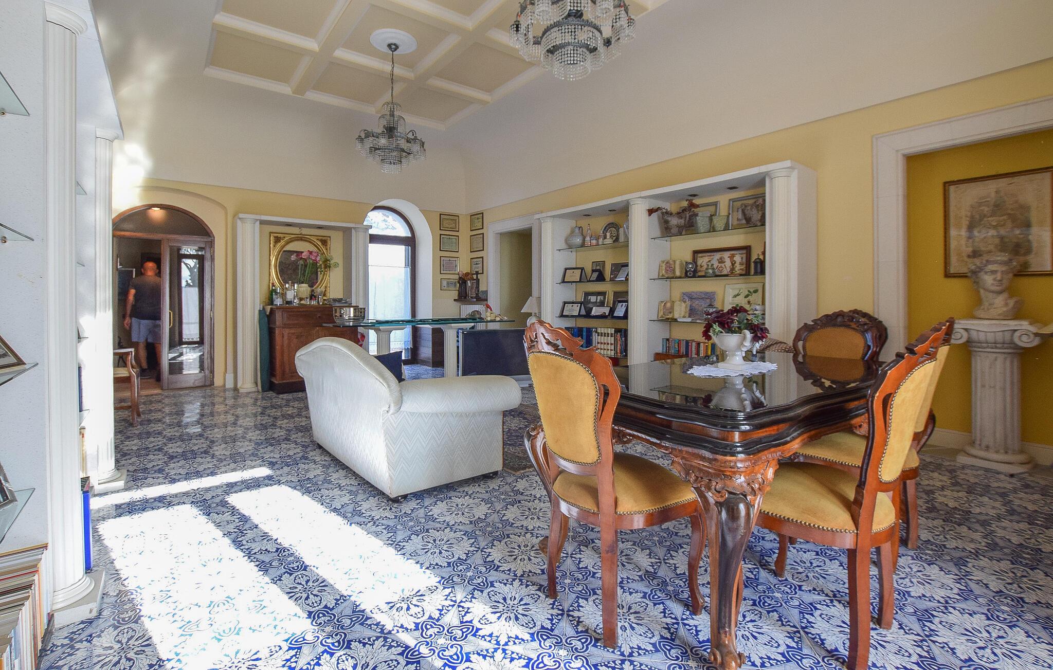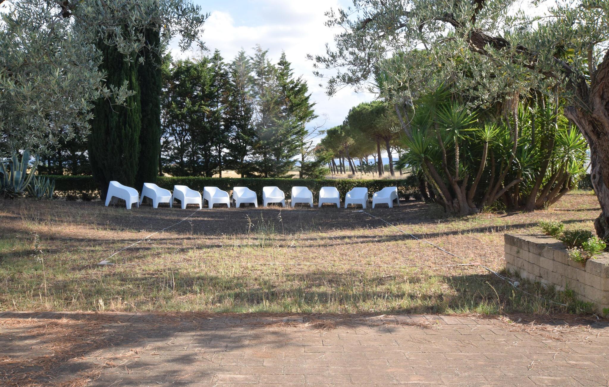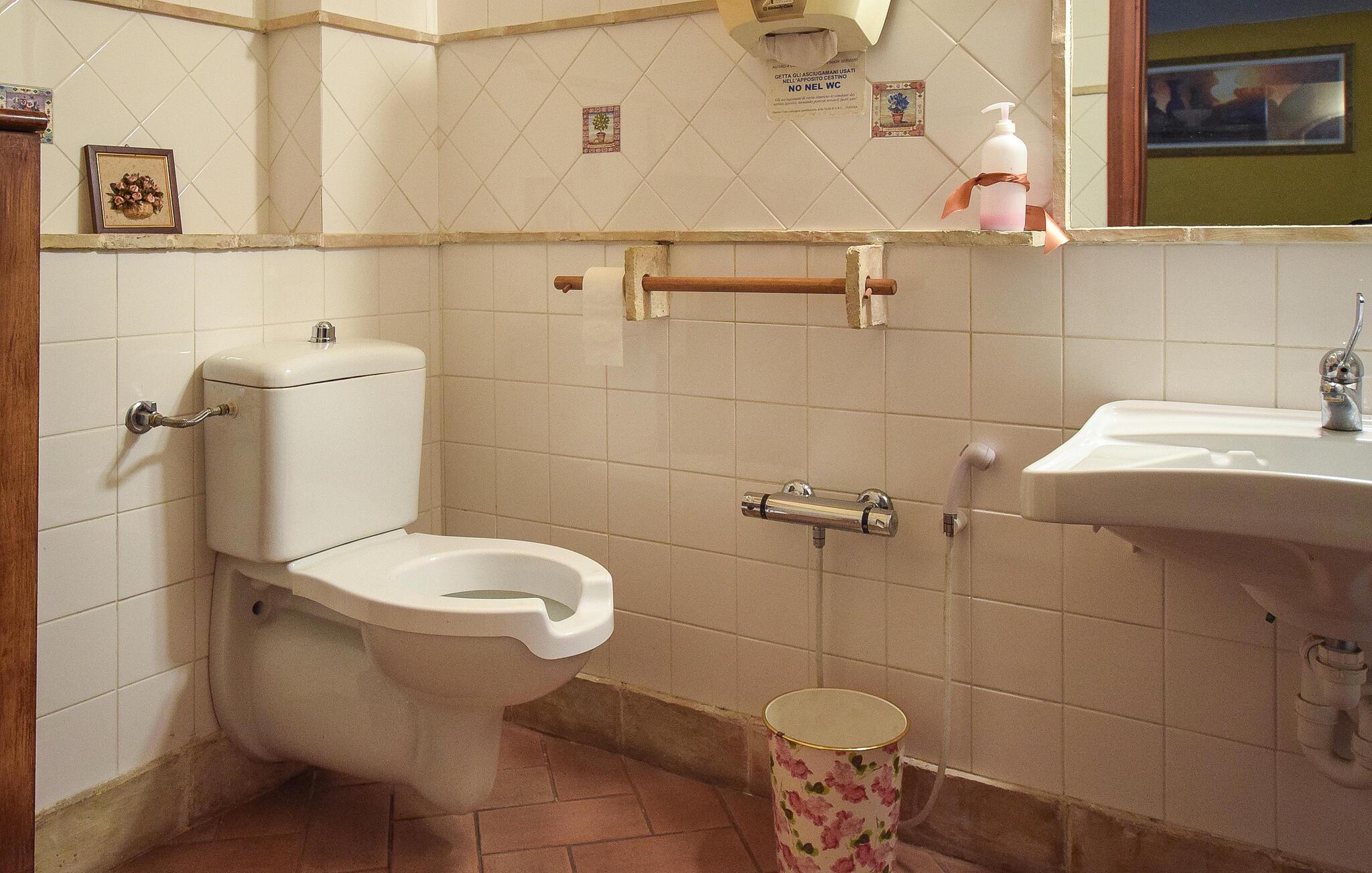 Velkommen til en rummelig ejendom nær Lucera, der er perfekt til en udvidet familie eller flere vennefamilier. Her kan I nyde farverige og kunstneriske møbler, der skaber en indbydende atmosfære. Vinkælderen lægger op til fornøjelige stunder, mens I også kan udforske adskillige andre rum for at nyde privatlivets fred og hyggestunder. Find jer godt til rette i sofaerne, lyt til musik eller udfordr jer selv til et spil billard.
