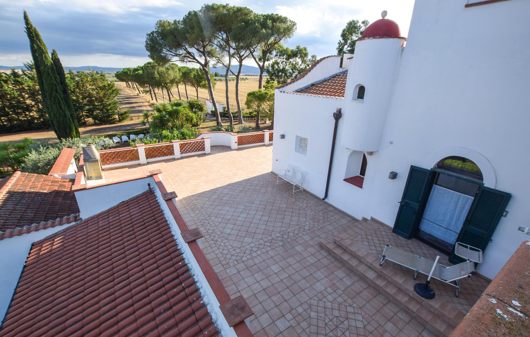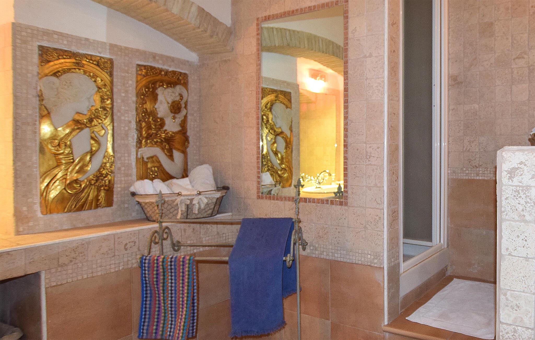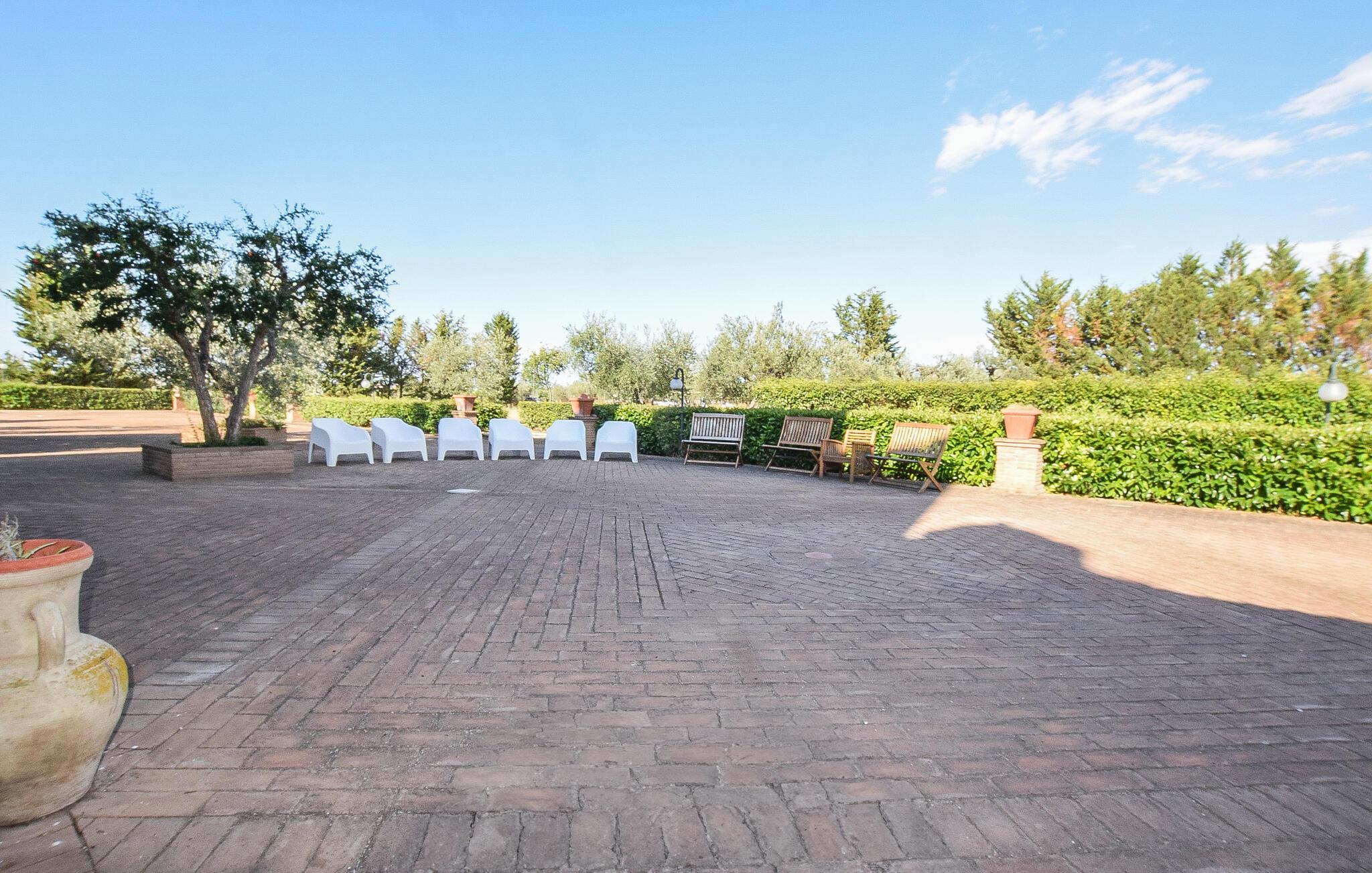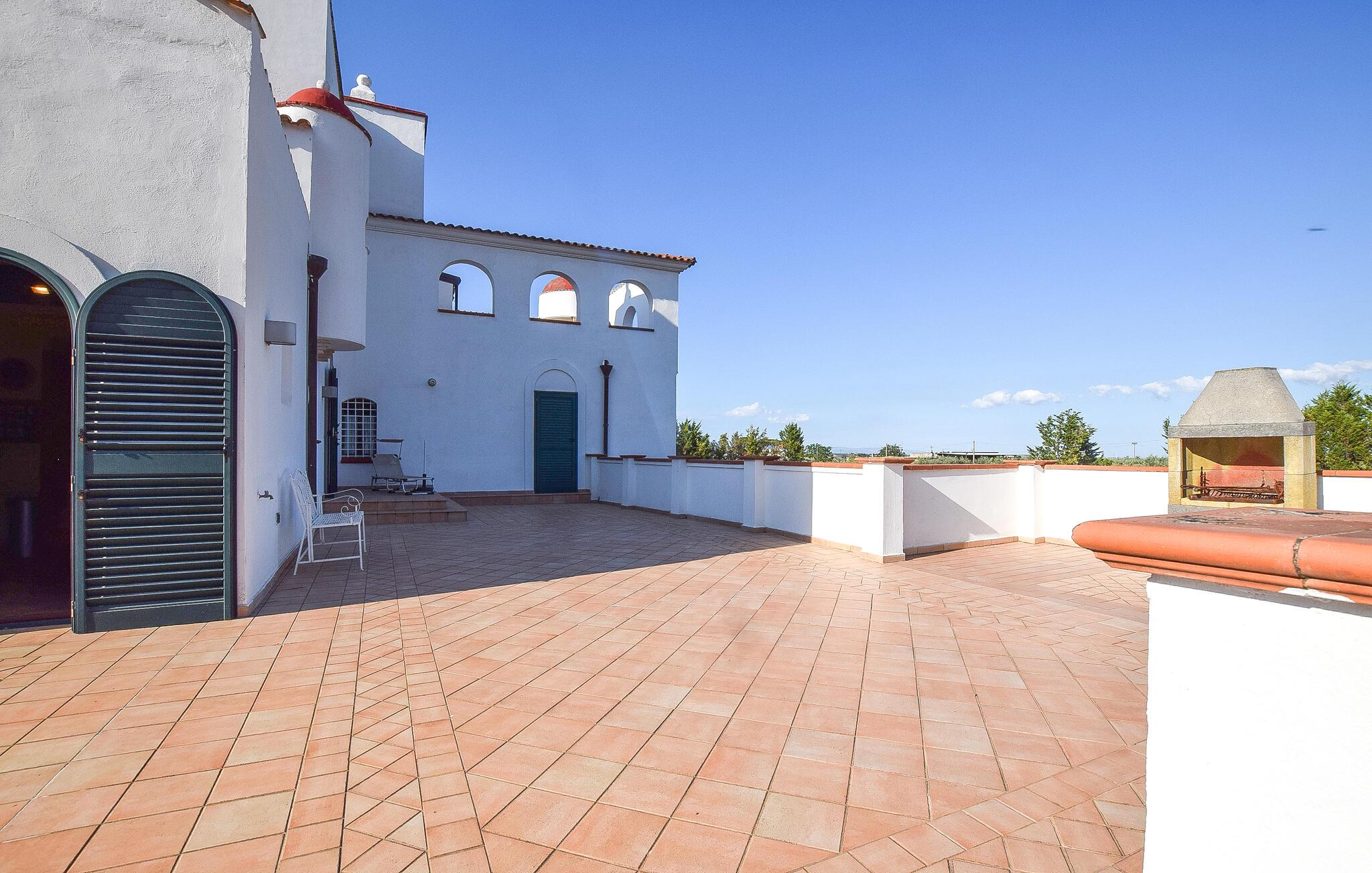Velkommen til en rummelig ejendom nær Lucera, der er perfekt til en udvidet familie eller flere vennefamilier. Her kan I nyde farverige og kunstneriske møbler, der skaber en indbydende atmosfære. Vinkælderen lægger op til fornøjelige stunder, mens I også kan udforske adskillige andre rum for at nyde privatlivets fred og hyggestunder. Find jer godt til rette i sofaerne, lyt til musik eller udfordr jer selv til et spil billard.