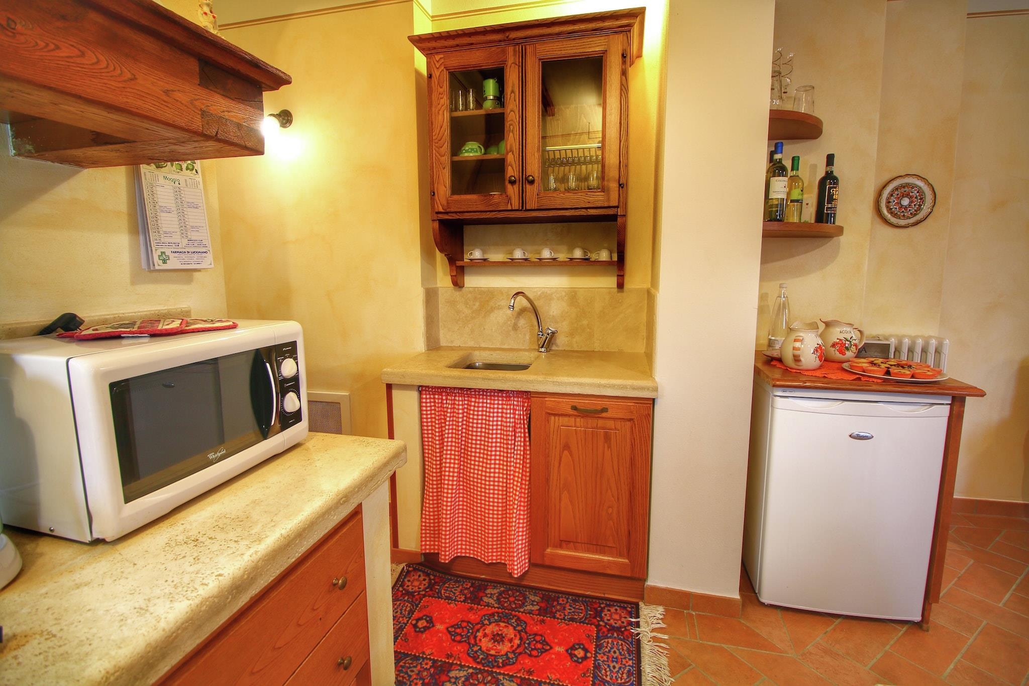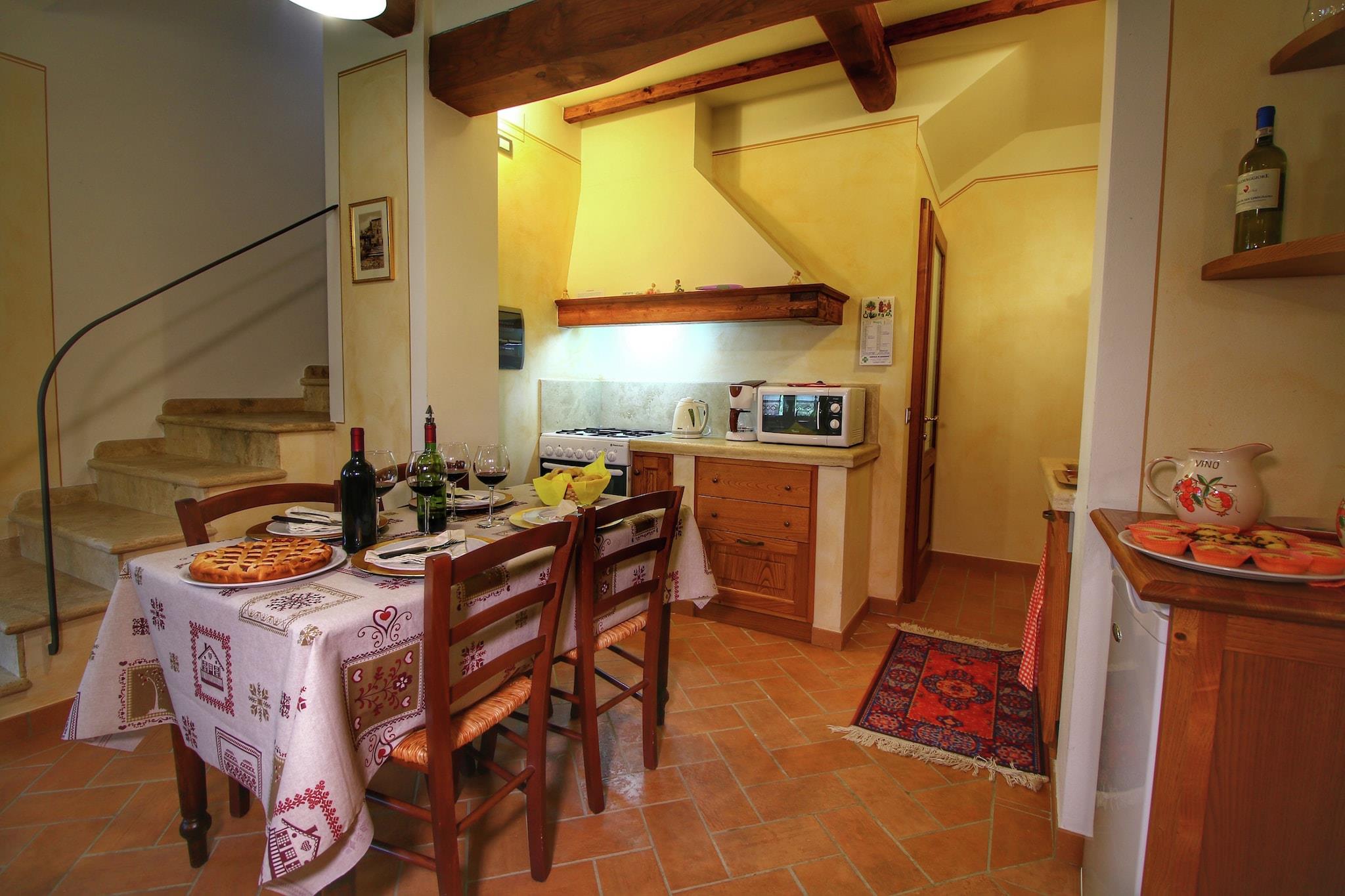 Beliggende nær Lucignano i hjertet af Toscana, tilbyder Apartment Noceto en fredelig flugt omgivet af natur. Dette charmerende sommerhus ligger kun en kort køretur fra Arezzo, Siena, Firenze og endda regionen Umbrien, hvilket gør det til en fremragende base for kulturelle dagsture. Indrettet i traditionel toscansk stil giver boligen en varm og indbydende atmosfære for op til 4 gæster, komplet med WiFi og aircondition. Huset er omgivet af en rummelig have fyldt med frugttræer og byder på en naturskøn udsigt over de bølgende toscanske bakker. Gæsterne kan slappe af ved den fælles, indhegnede swimmingpool eller nyde al fresco-måltider under lysthuset. En grillplads, havemøbler og et delvist indhegnet privat rum skaber de perfekte rammer for afslappede aftener. Ejerne, som bor på stedet, vedligeholder grillen dagligt og er glade for at tilbyde varm gæstfrihed året rundt. Indenfor byder boligen på en hyggelig stue med en dekorativ pejs, et veludstyret køkken, to soveværelser (et med dobbeltseng og det andet med to enkeltsenge) og to badeværelser, det ene med badekar og det andet med bruser. Gæsterne kan også nyde fritiden med et spil bordfodbold eller billard. For en særlig oplevelse kan olivenoliesmagninger og italienske madlavningskurser arrangeres direkte med husejeren.