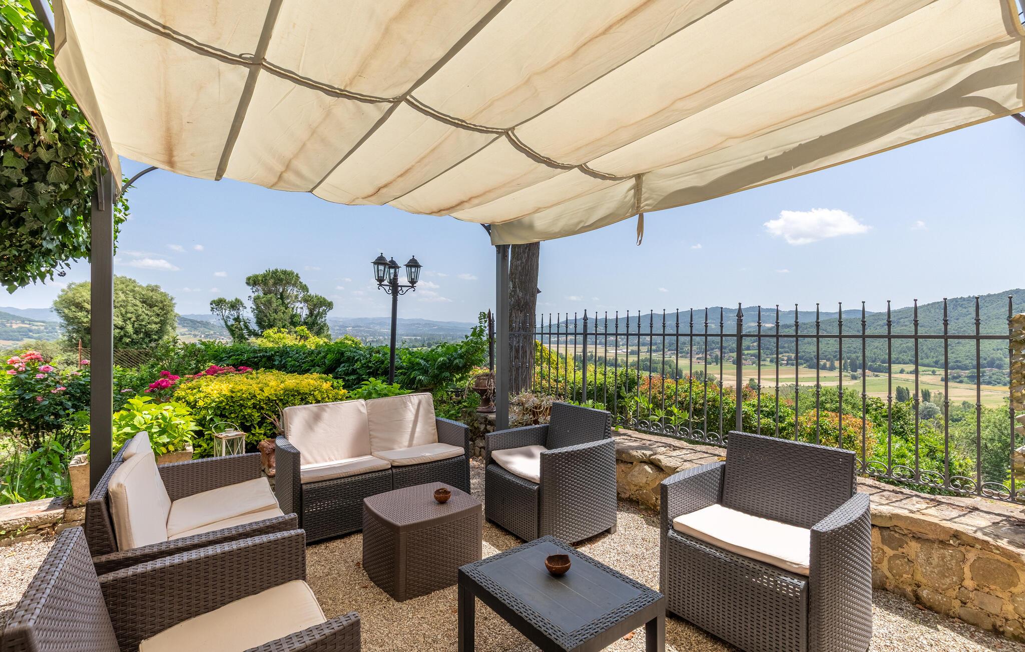 I udkanten af ??en middelalderlig bygning på en rolig bakke mellem Città di Castello (20 km) og Cortona (35 km) findes denne specielle del af et tofamiliehus. Stilfuldt restaureret med originale antikke møbler. I stueetagen åbnes porten til det høje indgangsparti med trapper, badeværelse, spiseplads og stort køkken. På 1. sal er der tre soveværelser, to stuer, et badeværelse og et andet badeværelse på 2. sal. I kan spise under pergolaen foran huset. Lidt nedenfor er det private poolområde med liggestole og en overdækket terrasse samt en parklignende havegrund med oliventræer, figner og kaktus - et lille paradis!