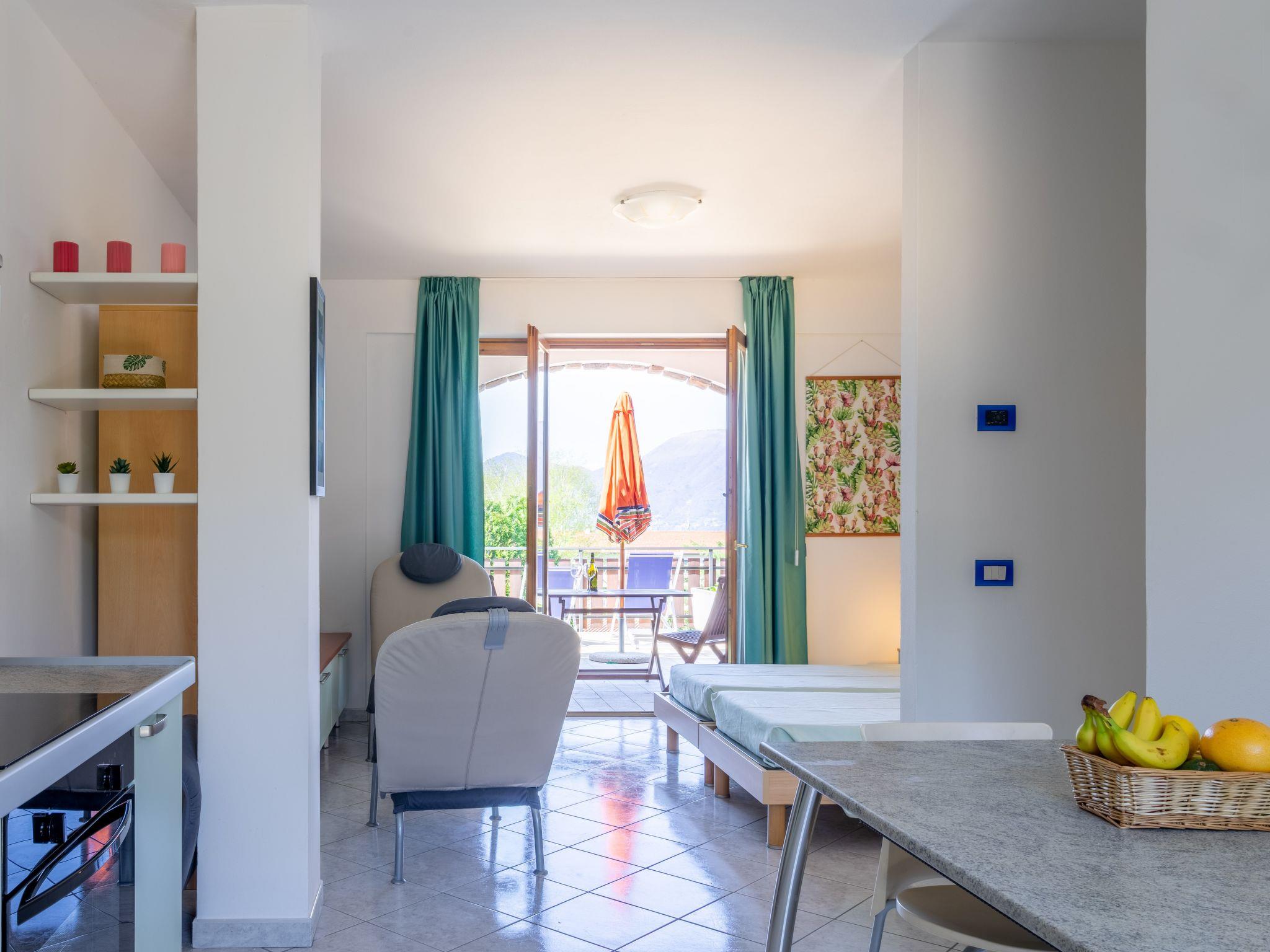 1-room studio 30 m2 on 1st floor. Practical furnishings: living/dining room with 2 beds and TV. Kitchenette (4 hot plates, oven, kettle). Shower/bidet/WC. Terrace 12 m2 partly roofed. Terrace furniture, deck chairs (2). Partial distant view of the lake. Facilities: hair dryer. Internet (WiFi, free). Please note: non-smoking house. IT012092B4ODIOQCQD