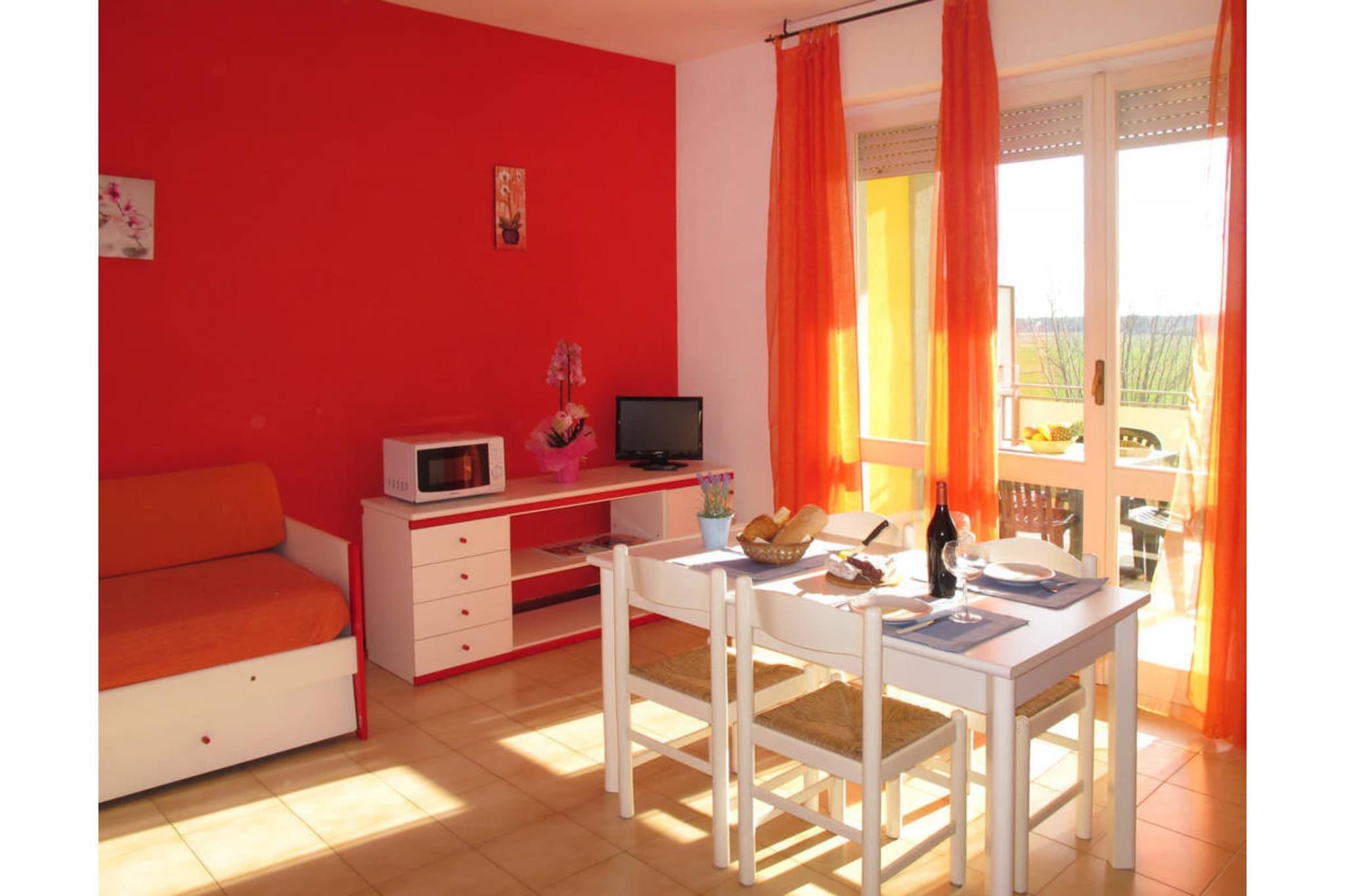 Residence Italia er beliggende i smukke grønne omgivelser i udkanten af det arkæologiske område Luni Mare, beliggende mellem foden af de toscanske alper og den liguriske kyst. Det velholdte lejlighedskompleks ligger i en privat park på cirka 7.000 m² med skyggefulde eukalyptus-, fyrre- og poppeltræer – et ideelt tilflugtssted for familier, der ønsker at kombinere afslapning med nærhed til stranden. Komplekset er roligt beliggende, omkring 900 meter fra havet og strandene. Byens centrum med barer og restauranter ligger kun 200 meter væk, og en togstation og større butikker er omkring seks kilometer væk. Lejlighederne er komfortabelt indrettede og har alle balkon, badeværelse med bruser eller badekar og toilet, satellit-tv, direkte telefon, hårtørrer og et lille tekøkken med el-ovn og gaskomfur. Lejligheden byder på cirka 45 m² boligareal og består af et soveværelse med dobbeltseng og en rummelig stue med en sofa, der kan laves om til to enkeltsenge. Boligen kombinerer at bo tæt på naturen med nærhed til stranden og er særdeles velegnet til familier med børn, der søger både ro og underholdning på deres ferie.