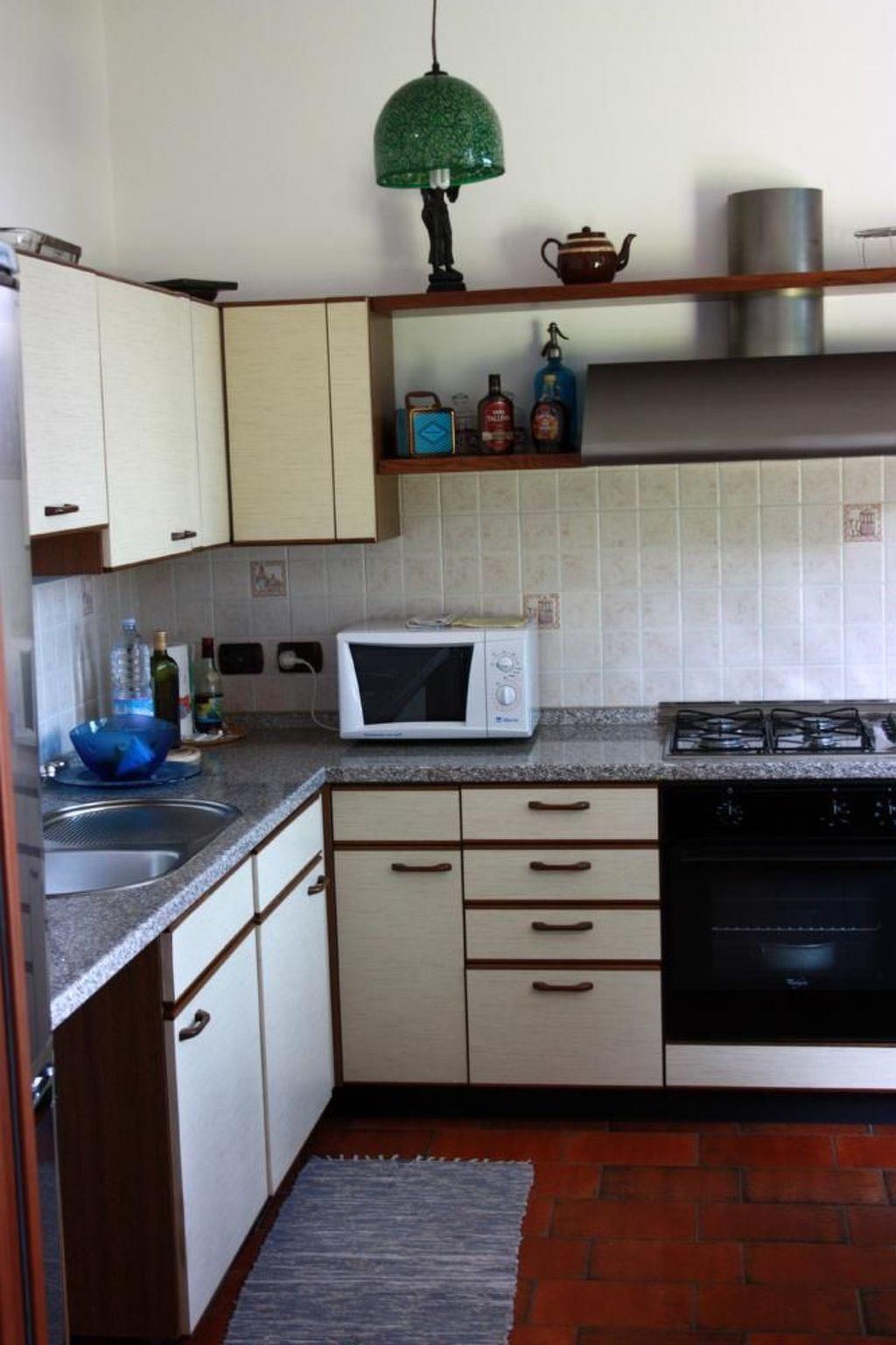 The flat is composed of: a large living room with fireplace, sofa for 4-5 persons and dining area; kitchen equipped with gas cooker and oven, toaster, microwave. The sleeping area consists of a bedroom with two single beds, a bedroom with a double bed and a bathroom with bidet as well as a separate bath and shower. The total area of the flat is about 100sqm, completely surrounded by the garden.