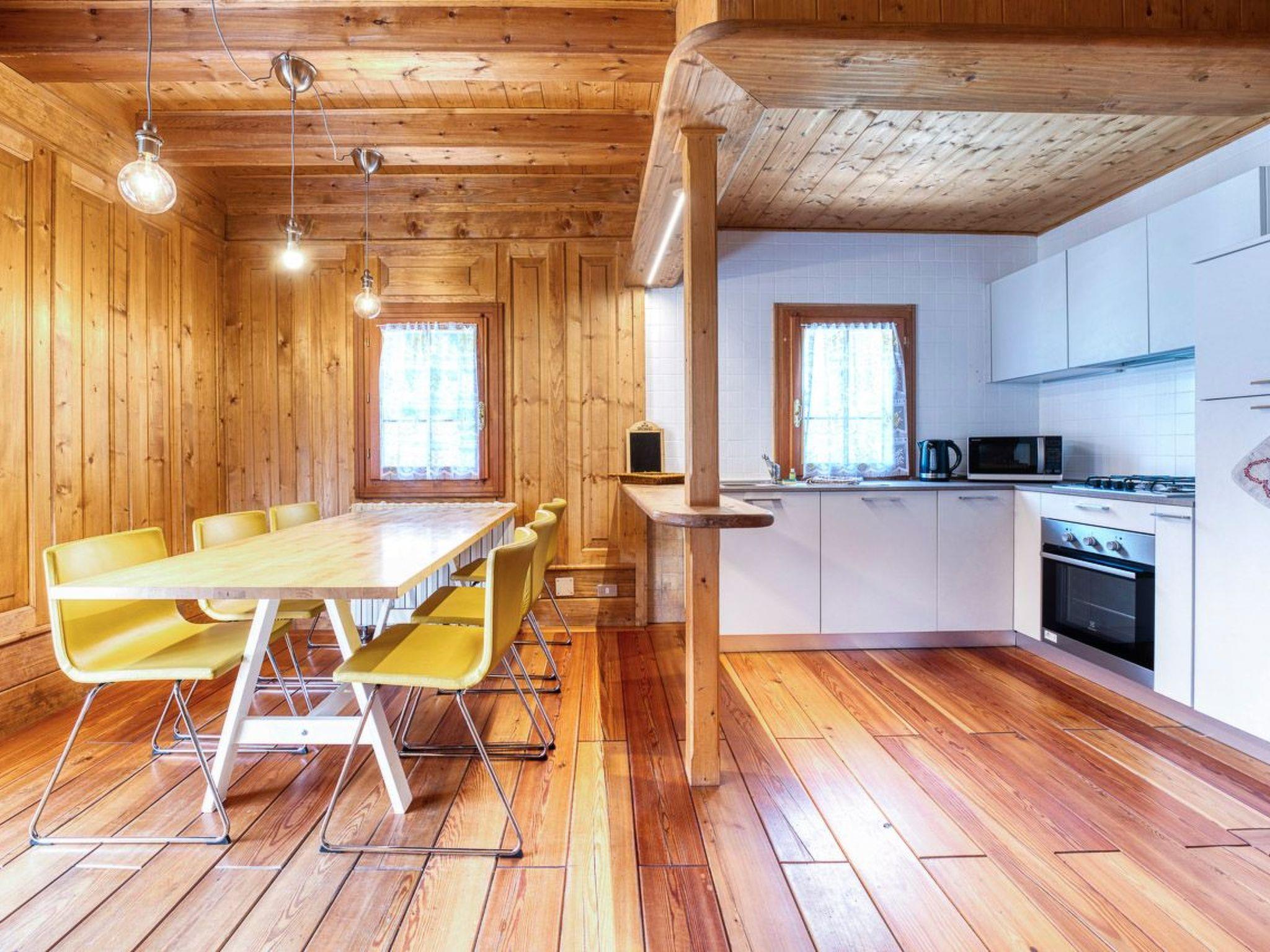 - Living room, with large table and open kitchen;