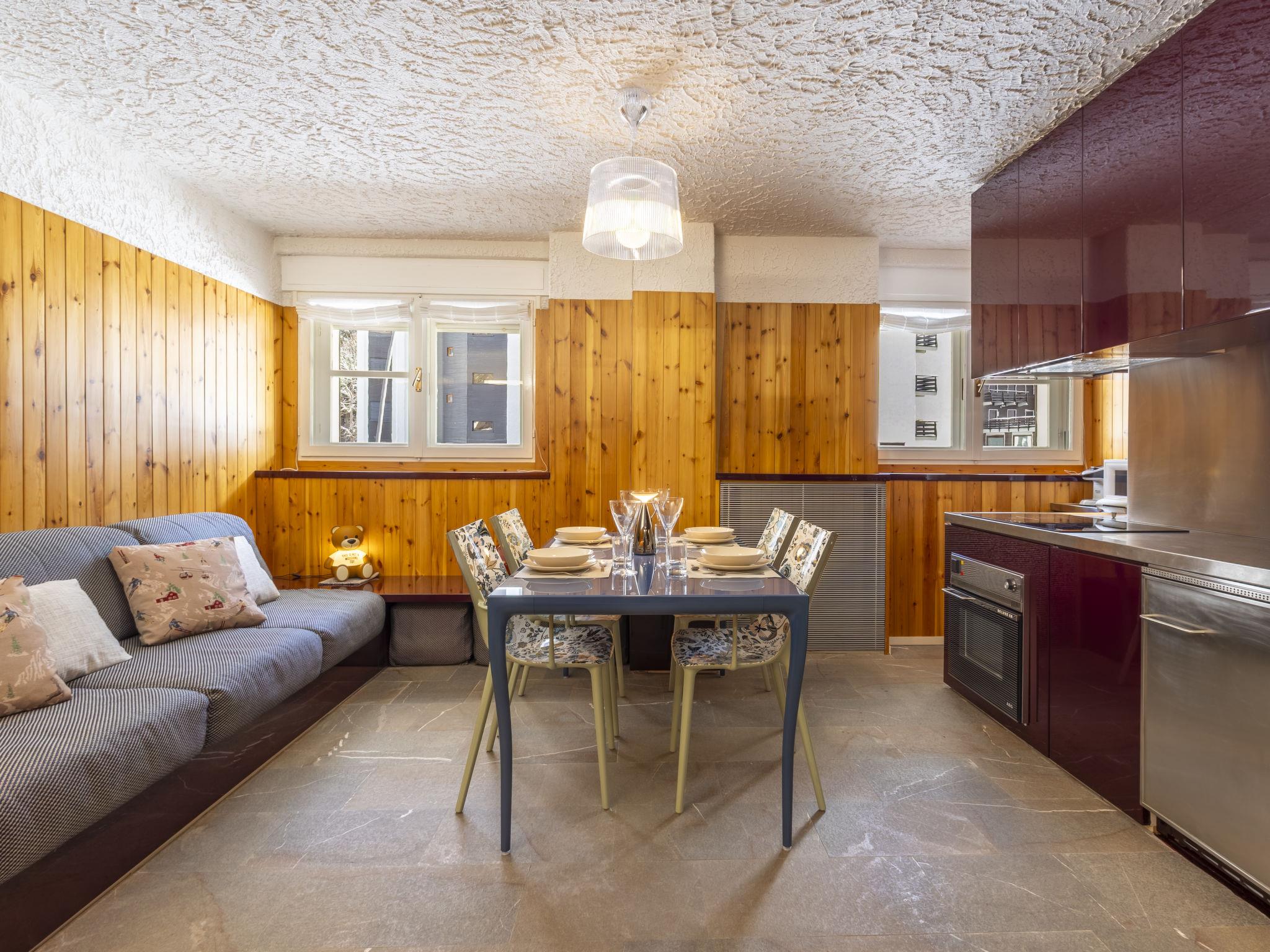 "MadeSki Apartment", 2-room apartment 60 m2 on 1st floor. Practical and comfortable furnishings: living/dining room with dining table and TV. 1 room with 1 x 2 bunk beds, 1 double bed. Kitchenette (oven, dishwasher, 4 induction hot plates, toaster, kettle, microwave, electric coffee machine, Capsules for coffee machine (Uno System) free). Shower/bidet/WC. Heating, boiler (100 litres). Partial view of the mountains. Facilities: children's high chair, baby cot, hair dryer. Internet (WiFi, free). Garage. Please note: non-smoking house. Maximum 1 pet/ dog allowed. IT014035C2VLE7A6EU