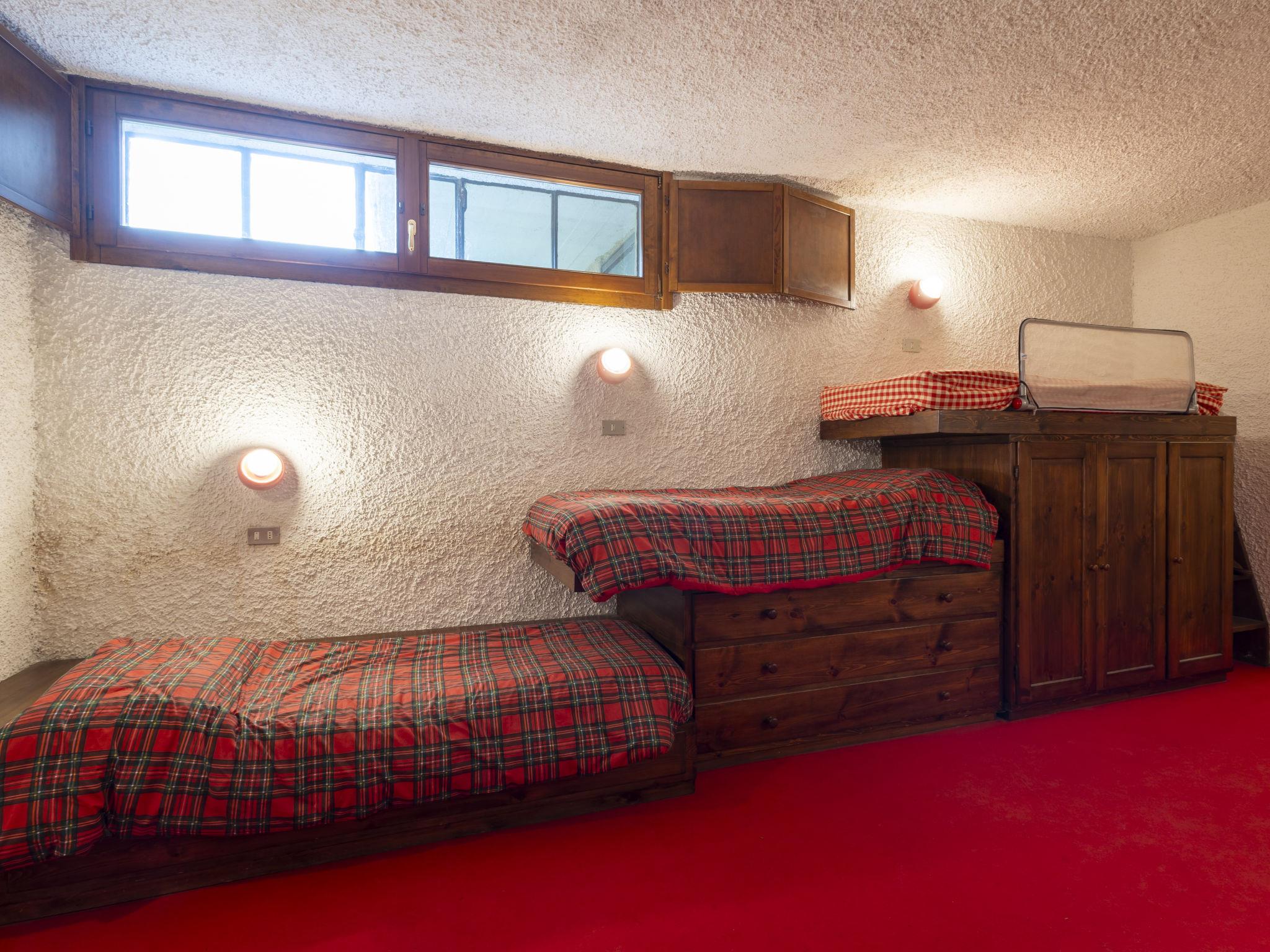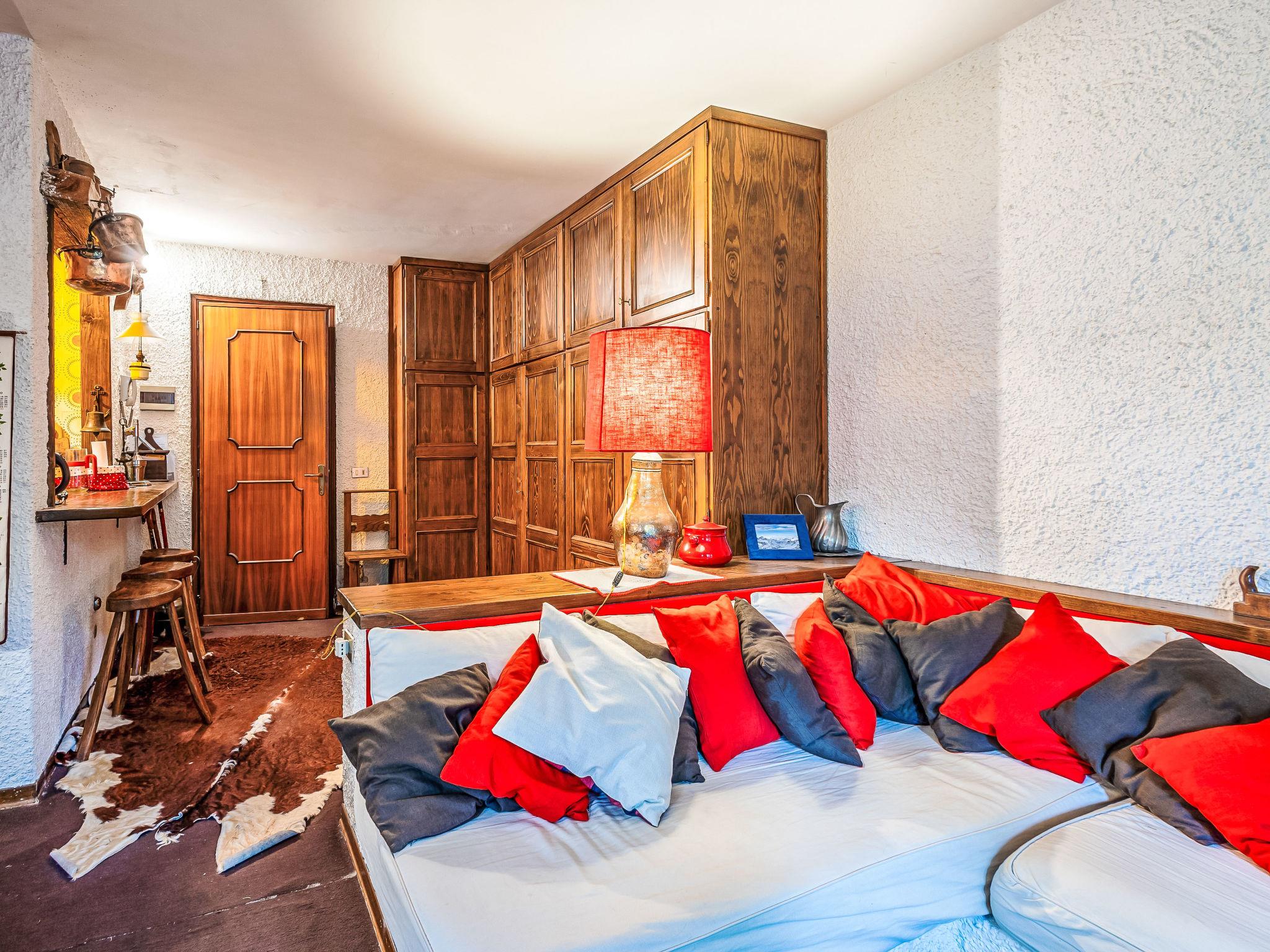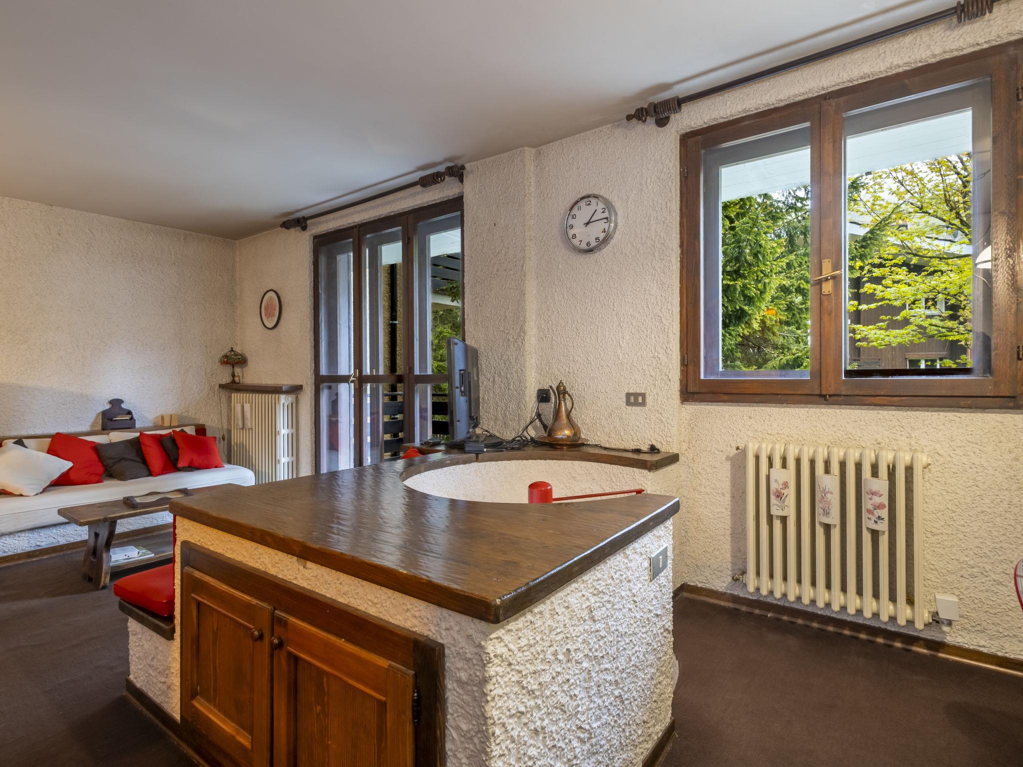 2-room apartment 60 m2 on 2 levels, on the upper ground floor, east facing position. Practical and comfortable furnishings: large living/dining room with dining table and TV. Exit to the garden, to the terrace. Small, open kitchen (oven, 4 gas rings, toaster, kettle, electric coffee machine, Capsules for coffee machine (Nespresso) free). Bath/bidet/WC. On the lower ground floor: (spiral staircase), 1 large room with 1 double sofabed (160 cm, length 190 cm), 1 x 3 bunk beds, shower/WC. Carpet. Large terrace. Terrace furniture, deck chairs (4). View of the mountains and the garden. Facilities: children's high chair, baby cot, hair dryer. Internet (WiFi, free). Please note: non-smoking house. Maximum 1 pet/ dog allowed. Smoke alarm, fire extinguisher. IT014035C2HGWFNX3G