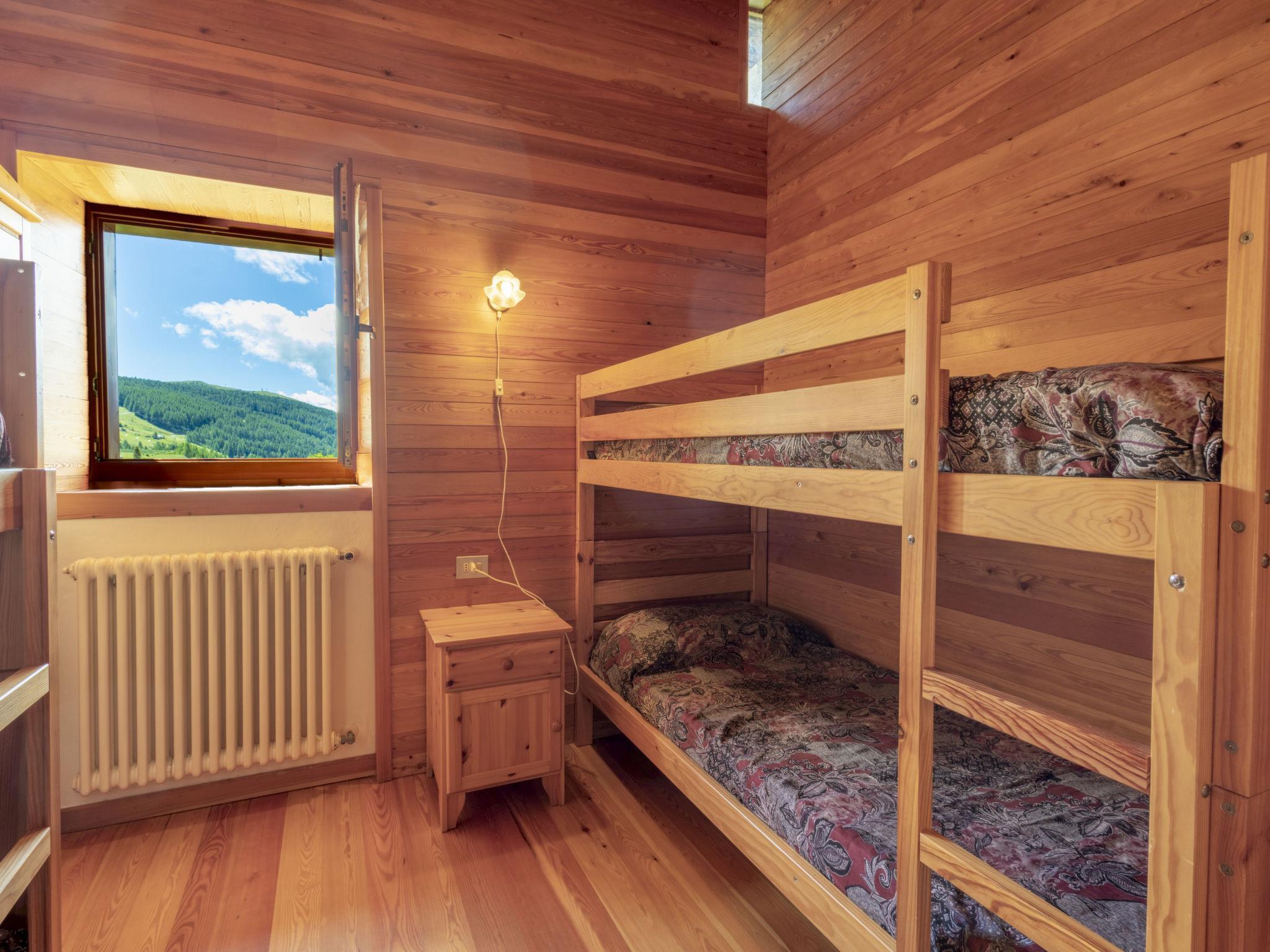 5-room chalet 150 m2, south facing position. Spacious, practical and wooden furniture furnishings: large living/dining room with Scandinavian wood stove (only for decoration), dining table and TV. Exit to the garden. Open kitchen (oven, 4 gas rings, toaster, kettle, microwave). Shower, sep. WC. Upper floor: 1 room with 1 x 2 bunk beds. 1 room with 1 x 1 bunk beds. 1 room with 2 beds. 1 room with 2 beds. Shower/bidet/WC, sep. WC. Heating. Parquet floors. Large garden. Terrace furniture, barbecue, deck chairs (4). Very beautiful panoramic view of the mountains, the valley and the garden. Facilities: washing machine, children's high chair, baby cot, hair dryer. Internet (WiFi, free). IT014035B4W4LNNAMT