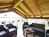Dit sommerhus har et skønt, overdækket terrasseområde med udekøkken og spiseplads. Tilbered om aftenen et lækkert måltid til de andre gæster og afslut dagen i godt selskab i loungemøblerne.