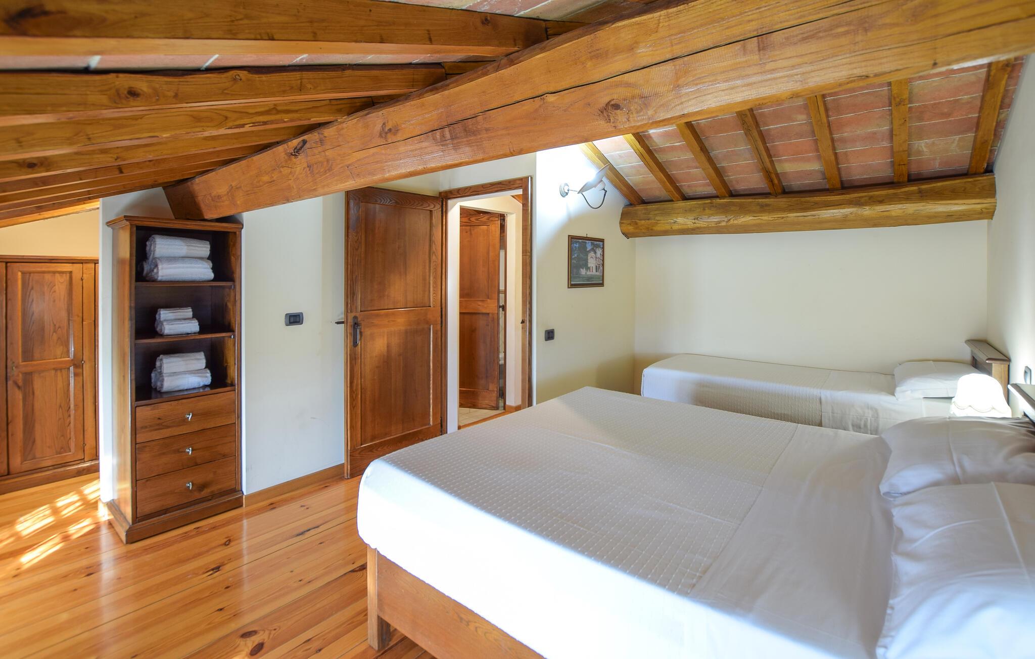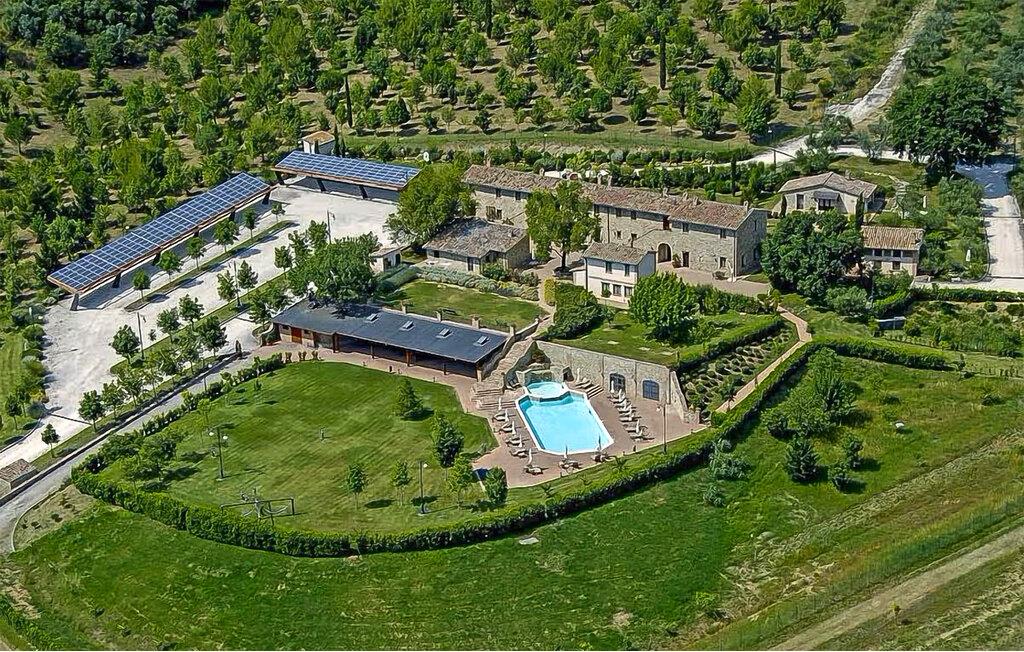 Denne flotte villa ligger smukt placeret i Italiens grønne hjerte, blot et par kilometer fra Trasimeno-søen. Boligen emmer af varme og en rustik atmosfære, hvor I ikke kan undgå at slappe og hygge jer med familien. I den åbne stue kan I nyde dagens måltider, og udendørs står den på rendyrket nydelse. Børnene kan boltre sig på deres private legeplads, mens I lægger jer godt til rette i liggestolene med udsigt over Umbriens frodige landskab. Når børnene har leget sig trætte, kan de køle sig ned og plaske rundt i den forfriskende pool.