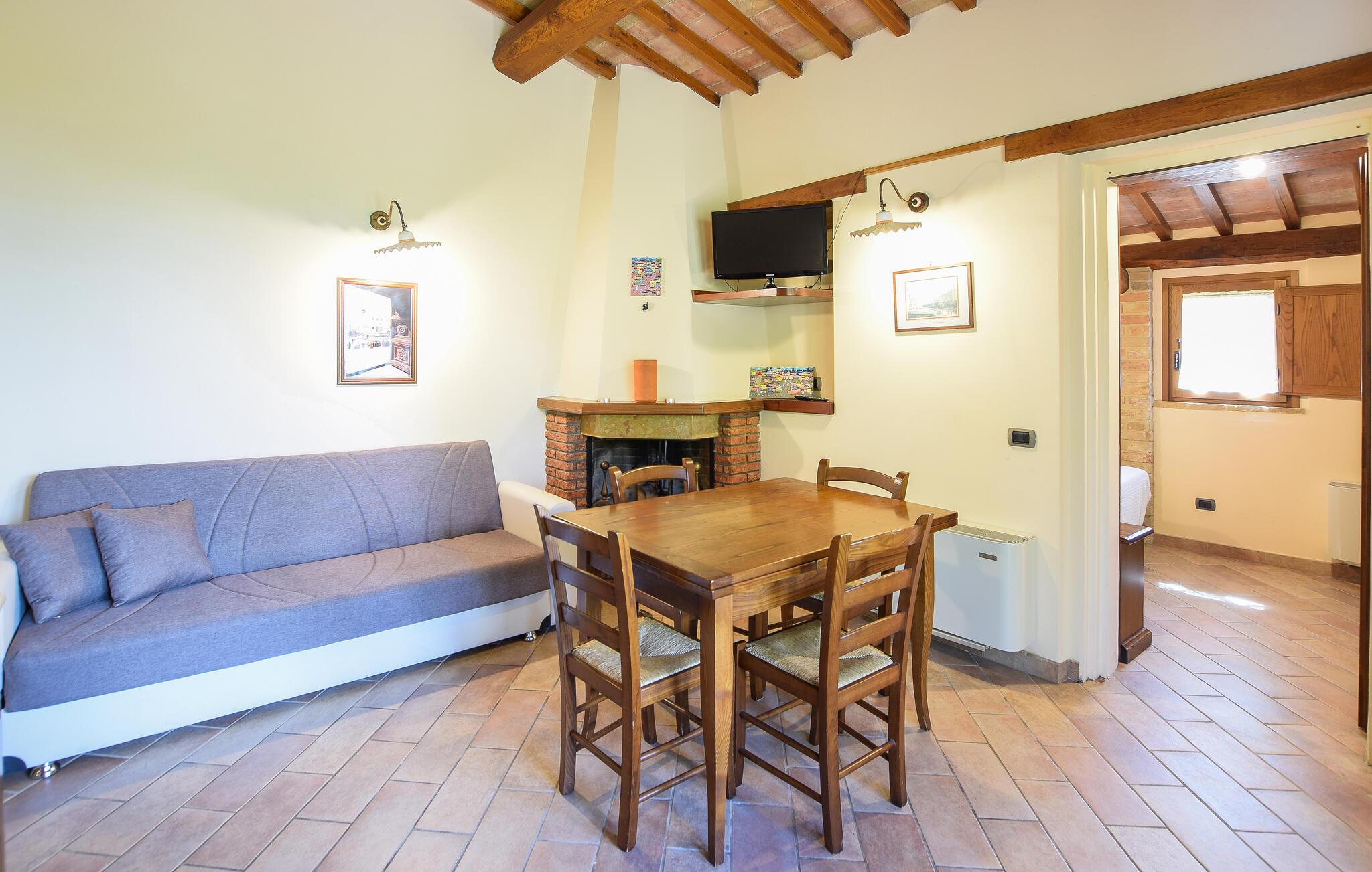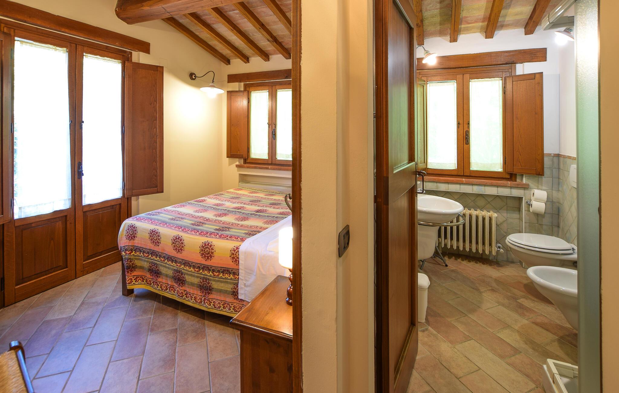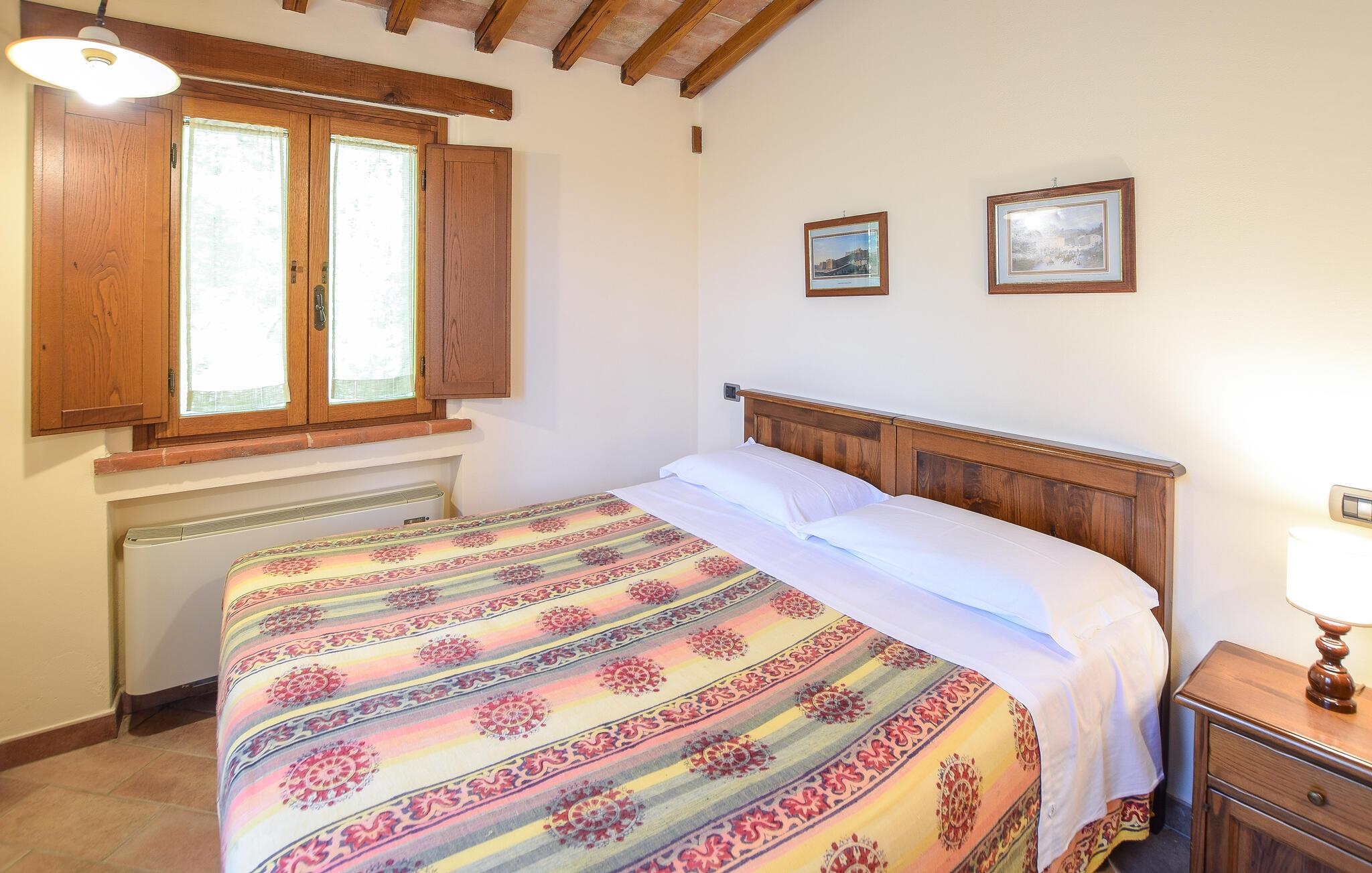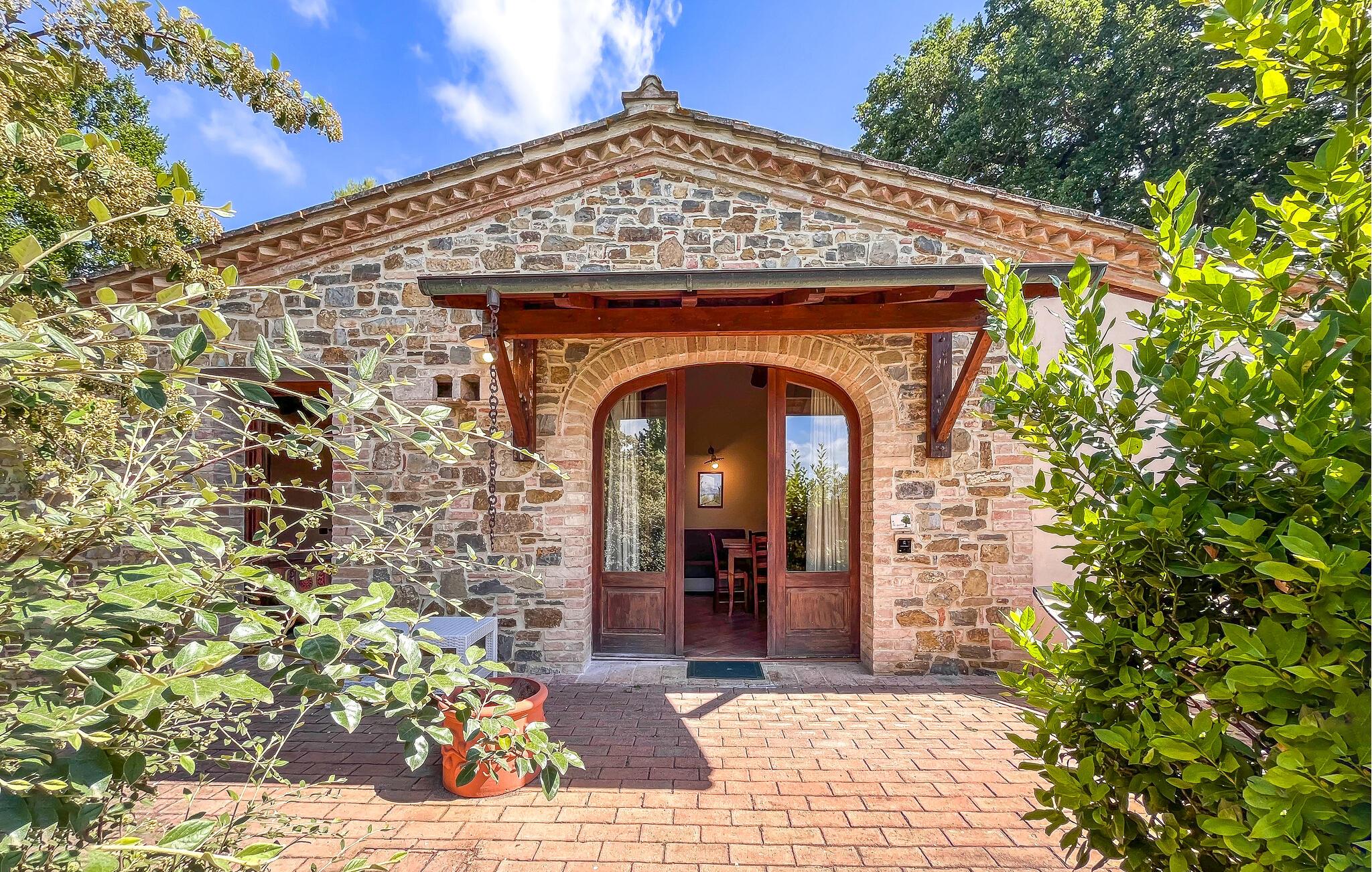 Tag familien under armen og rejs til Magione, hvor I tæt på Trasimenosøen finder en skøn base i dette indbydende hus, der tidligere var stuehuset på en bondegård. Huset ligger i smukke, grønne omgivelser og er indrettet med alt, I behøver for et helt og aldeles bekymringsfrit ophold. Køkkenet er rummeligt og veludstyret, så I kan roligt gøre madlavningen til et fornøjeligt fællesprojekt, inden I dækker op til den store middag ved spisebordet. Efter aftensmaden kan I rykke over i sofaen med lækre snacks og en god film på tv'et, mens I lægger planer for de kommende dage.
