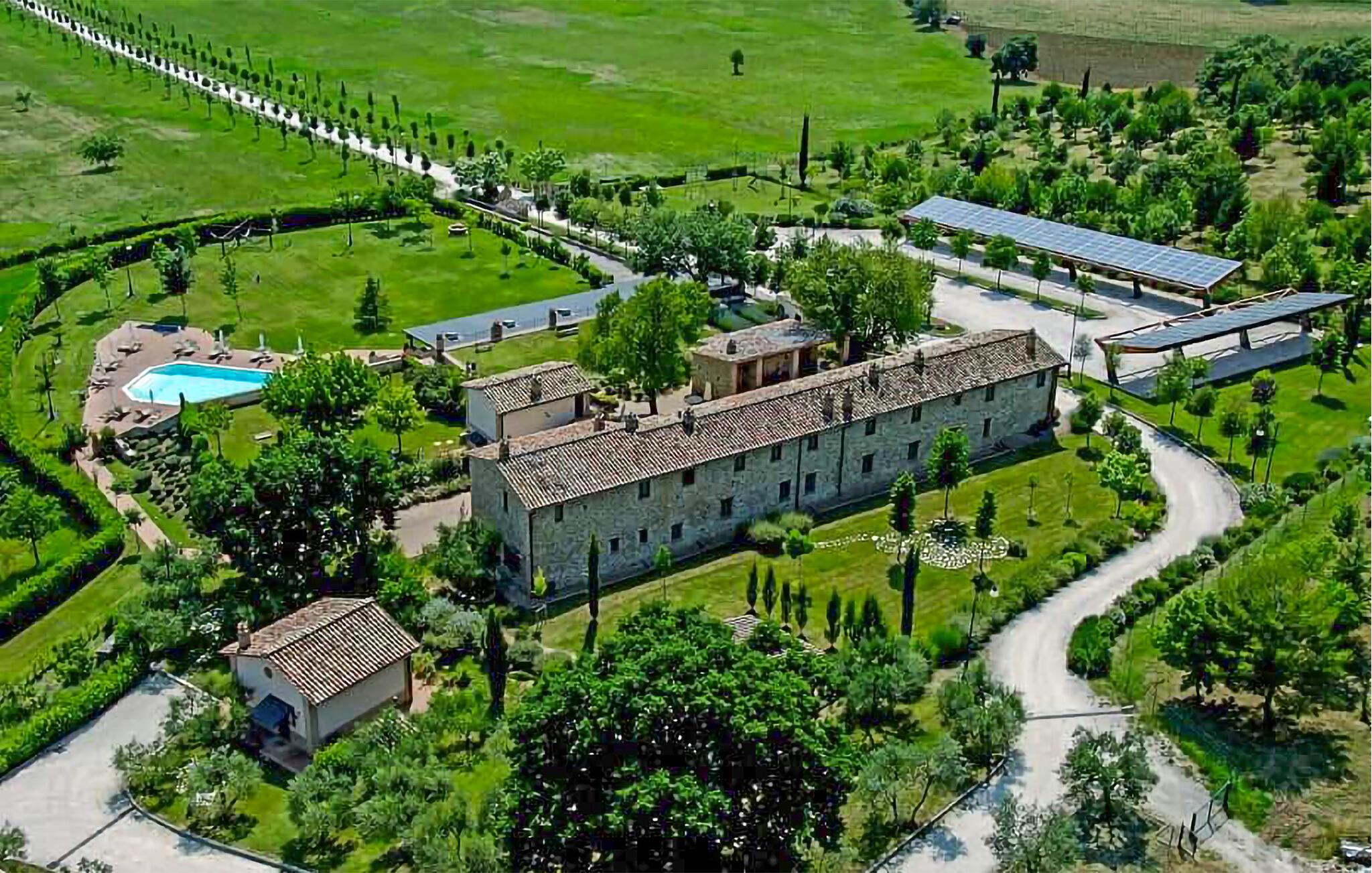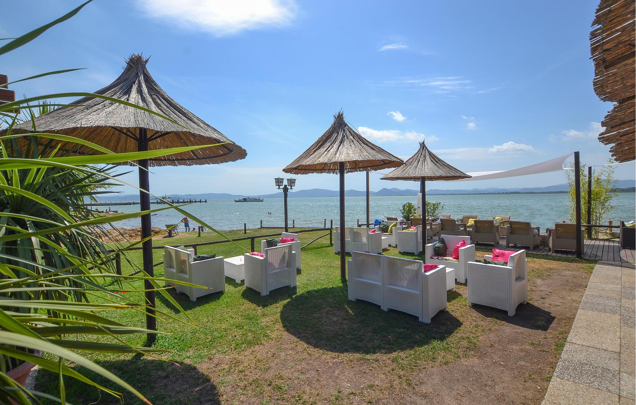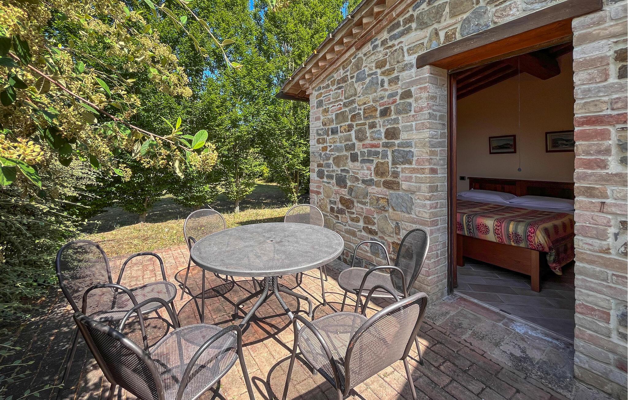 Prikken over i'et er udearealet, der byder på en stor, parklignende have med flere bænke, hvor I kan nyde morgenkaffen og udsigten over det smukke landskab. Når varmen har bagt jer godt igennem, kan I køle jer af med hele familien i den rummelige pool, inden I tager på udflugt.