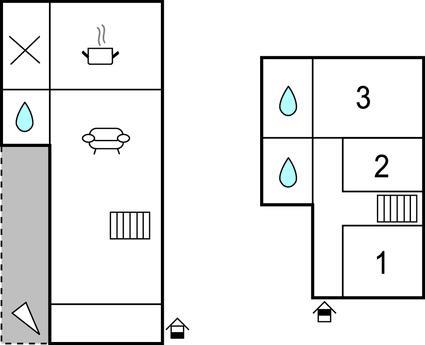 Soveværelse (nr. 2) - 1 Soveplads. (Enkeltseng(e)). 2 Sovepladser. (Dobbeltseng(e)).