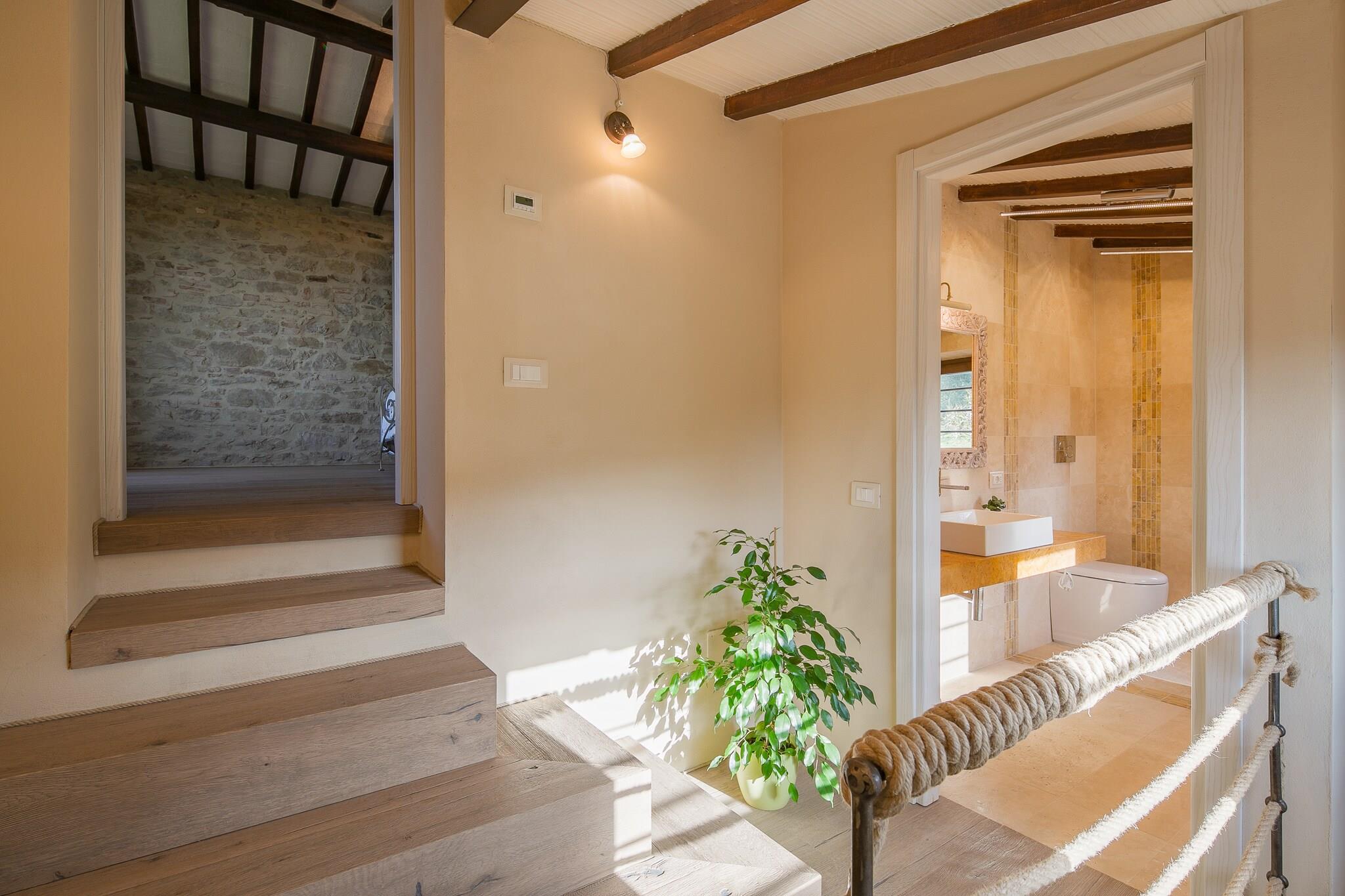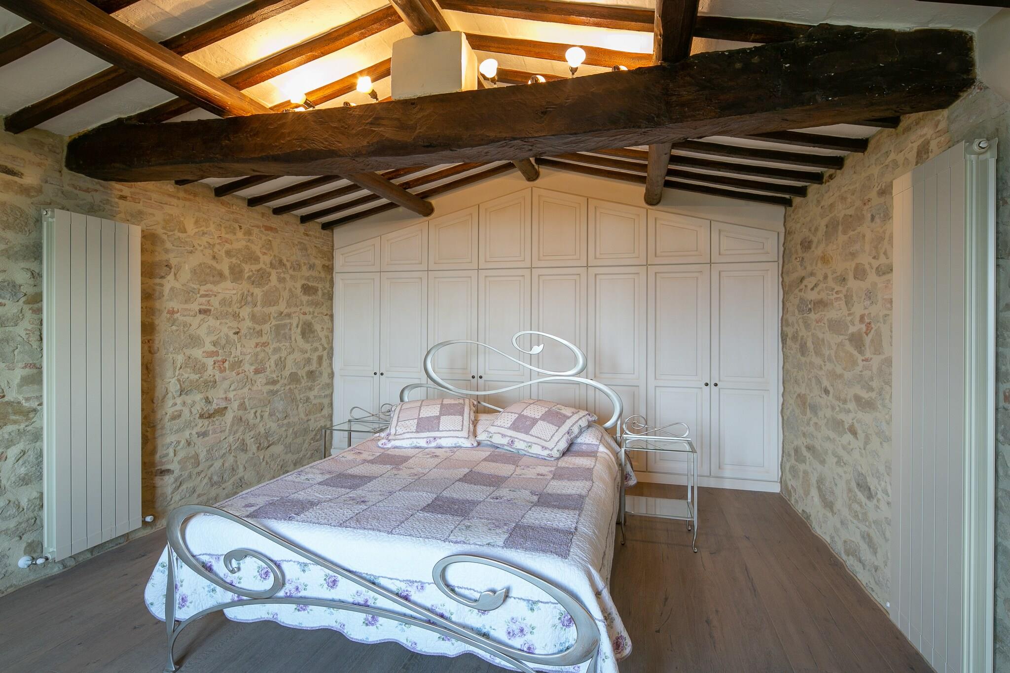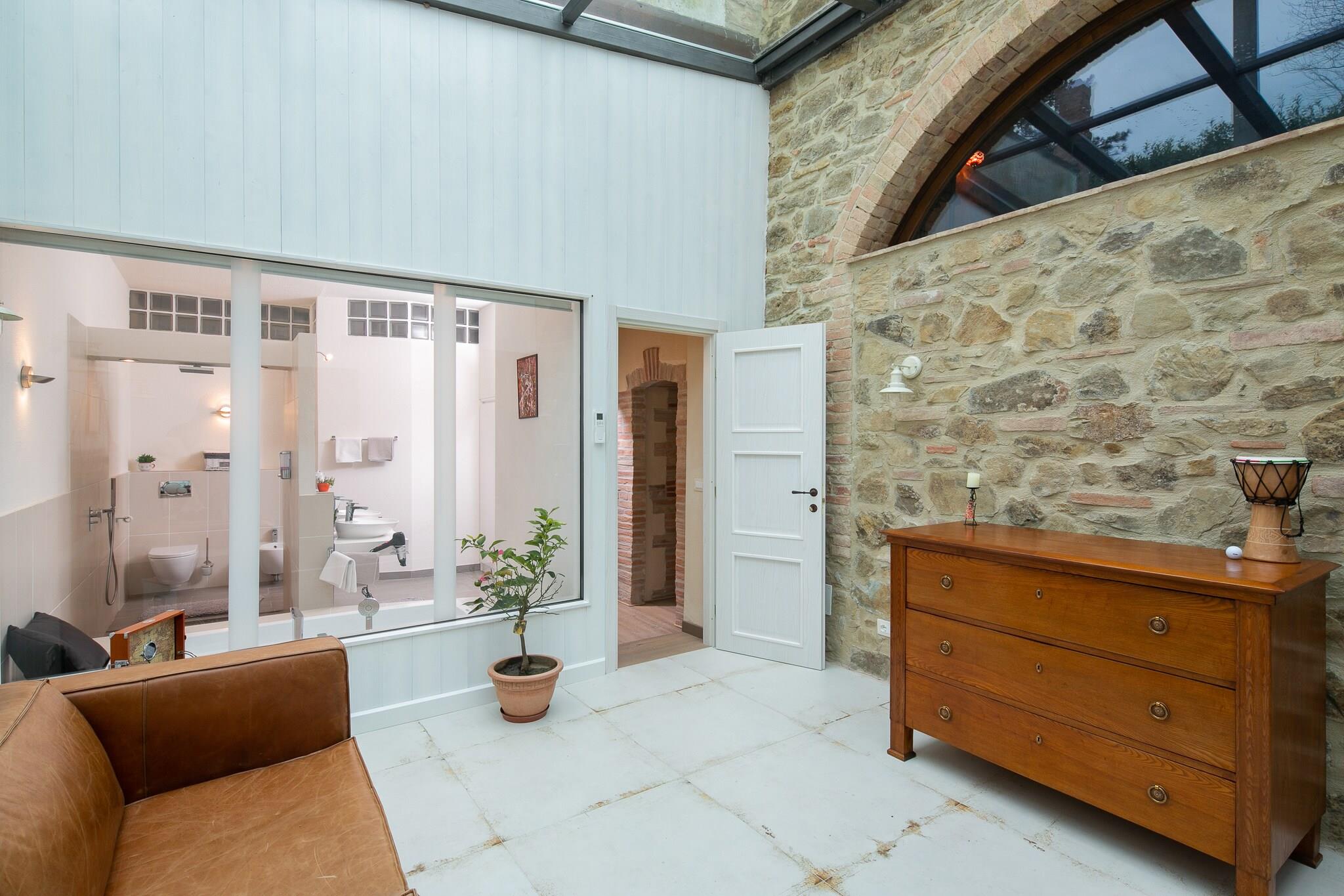 Denne historiske villa med 9 soveværelser i Cortona ligger midt i de bølgende toscanske bakker og tilbyder et uforglemmeligt ophold for op til 8 gæster, hvilket gør den ideel til store familier eller vennegrupper. Den fritliggende ejendom blander antik charme med moderne komfort, komplet med en privat swimmingpool (åben maj til oktober) og en tennisbane på stedet. Bare 500 meter fra den fortryllende by Cortona kan gæsterne slentre gennem dens brostensbelagte gader med caféer, butikker og historisk arkitektur. Restauranter ligger inden for 1 km, mens dagsture til de ikoniske byer Firenze, Siena og Perugia tilbyder kulturel fordybelse og kunstneriske vidundere. Trasimenosøen, perfekt til svømning, sejlads eller picnics ved søen, ligger også i nærheden. Inde i villaen kan gæsterne slappe af ved pejsen, nyde satellit-tv og tilberede fællesmåltider i de rummelige spiseområder. Den fredelige have giver plads til afslapning og naturskønne udsigter. Et kæledyr er velkommen til at deltage i jeres toscanske flugt. Uanset om du spiller golf på Perugia Golf Club (17,4 km), slapper af på Zocco Beach (3,2 km) eller udforsker landskabet med båd fra Passignano (10 km), er denne villa perfekt placeret til både hvile og rekreation.