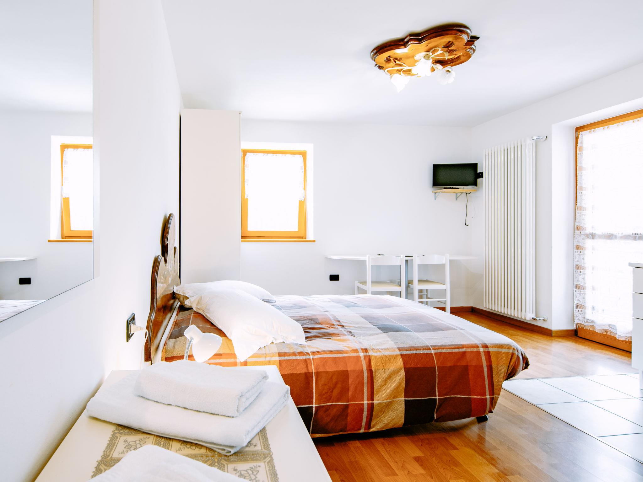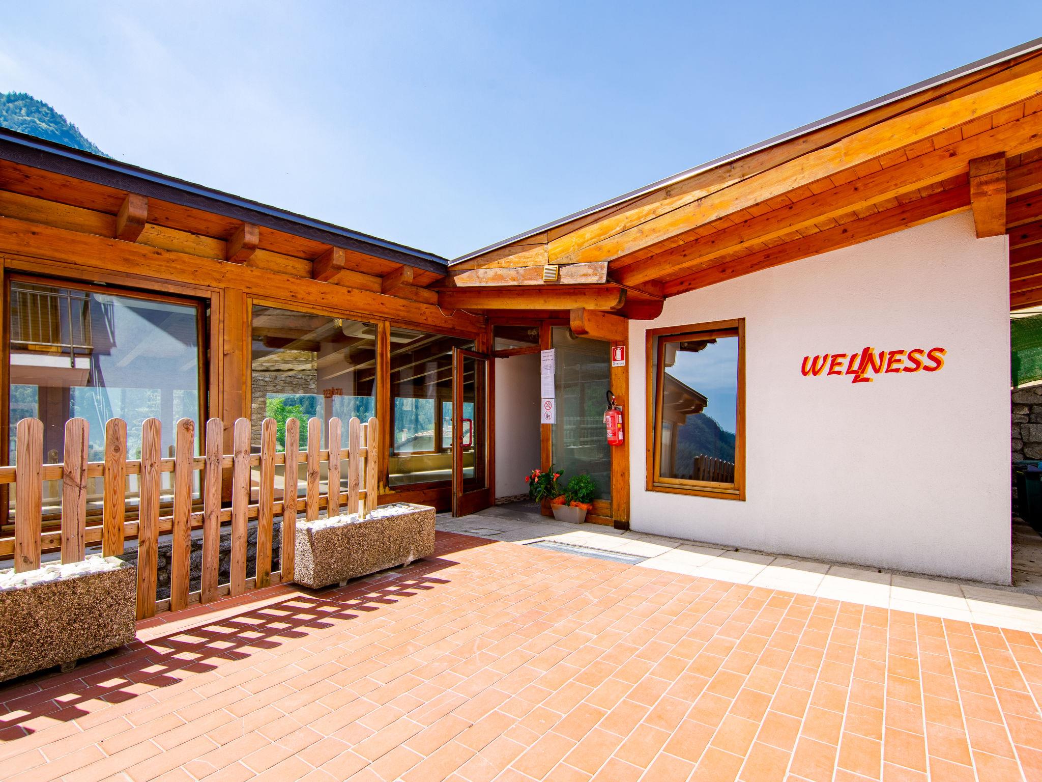 Val di Sole: Small, comfortable residence "Al Pescatore", 3 storeys, surrounded by trees and fields. 15 apartments in the residence. In the hamlet Tozzaga 4 km from the centre of Caldes, 7 km from the centre of Malè, in a quiet position on a slope. For shared use: garden, swimming pool, indoor pool heated (4 x 10 m, depth 130 cm, seasonal availability: 01.Jun. - 15.Sep. pool opening hours: 10:00-19:00). Terrace, garden furniture. In the complex: restaurant, bar, WiFi, sauna, steam room, solarium, hot tub, storage room for skis, central heating system. Stepped path to the house. Parking (limited number of spaces) at the house, communal covered parking (extra) at the house. Shop, restaurant 50 m, bus stop 100 m, railway station "Tozzaga" 500 m, park "Parco Nazionale dello Stelvio" 28 km. Slopes 15 km. Nearby attractions: Folgarida 19 km, Marilleva 25 km, Trento 50 km, Merano 58 km. Well-known lakes can easily be reached: Lago di Garda (Riva Del Garda) 87 km. Please note: the owner lives on the same property. Railway line 100 m from the property. Please note: Trentino Guest Card free for all guests.