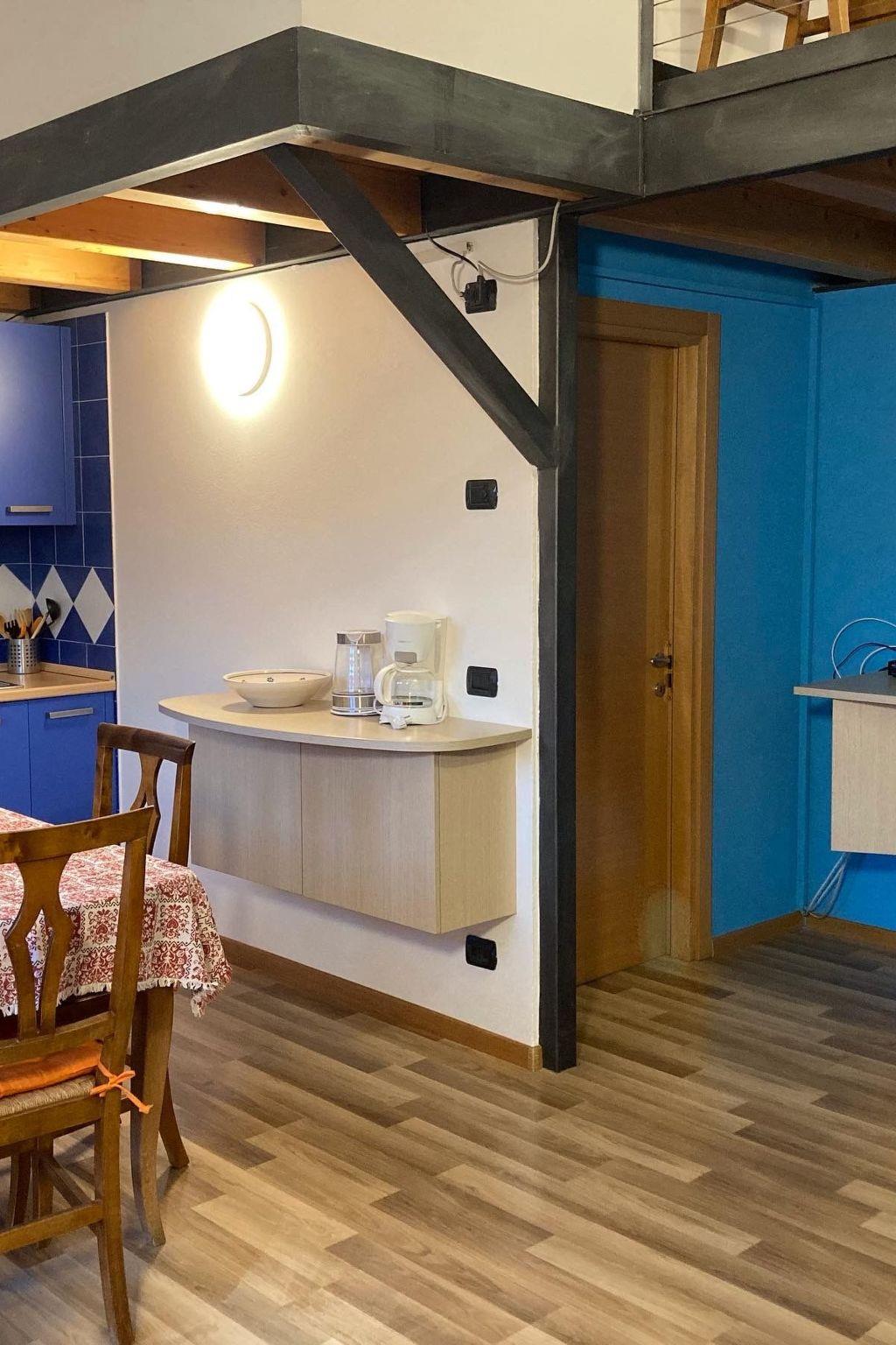 Three-room apartment no. 5 has all the comforts. ideal for 4 people, it consists of: a complete kitchen with living room, bathroom with shower, balcony with lake view, two loft rooms, one with two single beds and one with a double bed.