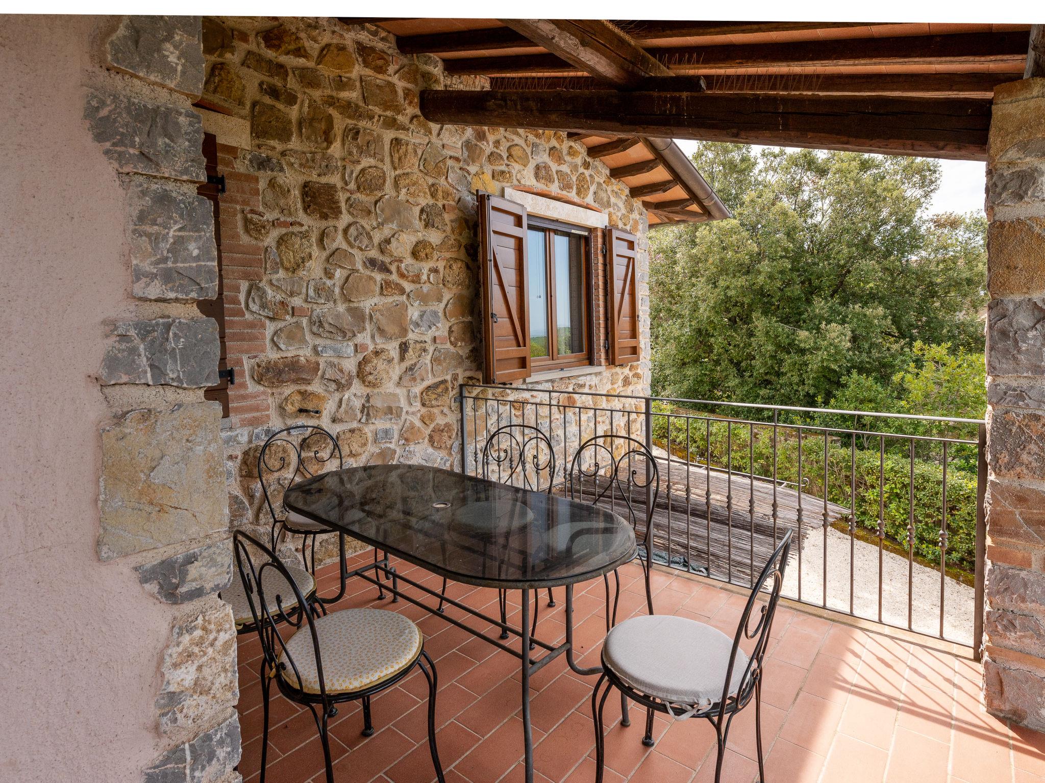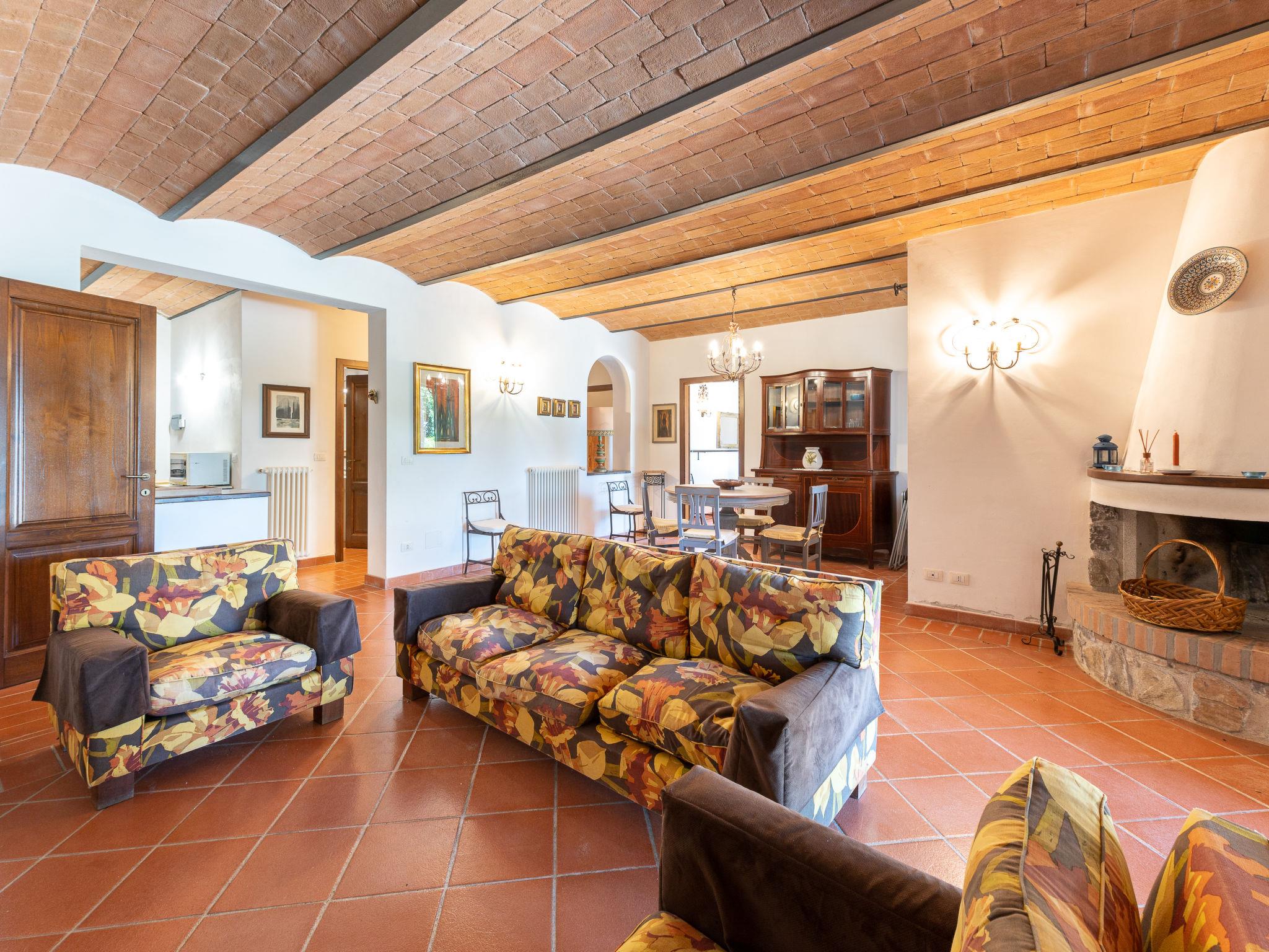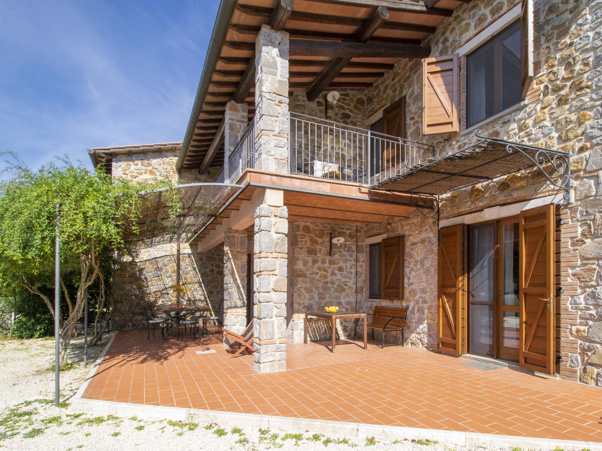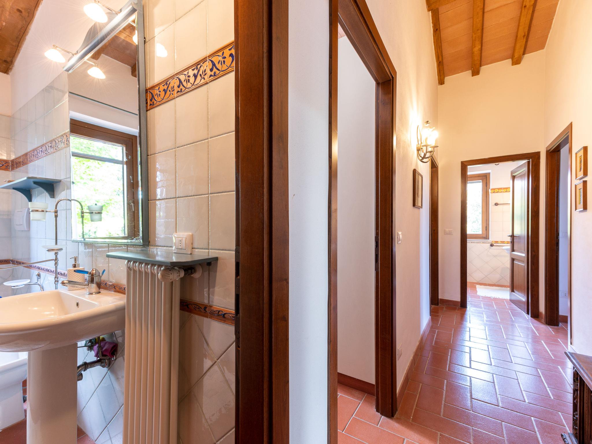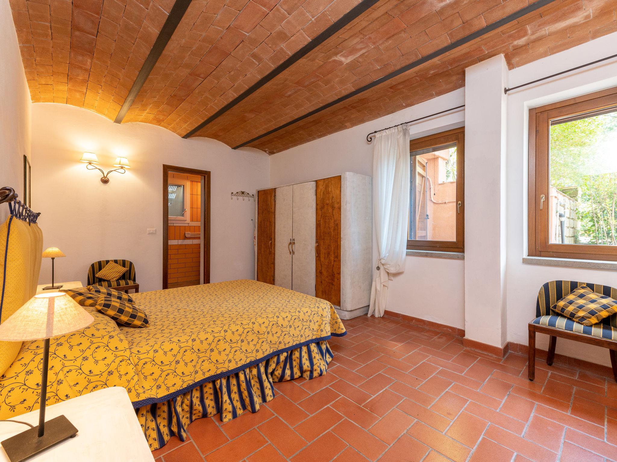 "La Gattaiola Piccola", 8-room house 240 m2 on 2 levels. Spacious, rustic and cosy furnishings: large living/dining room with open-hearth fireplace and TV (flat screen). Exit to the garden, to the loggia, to the swimming pool. 1 room with 1 double bed (160 cm), shower/bidet/WC. 1 room with 2 beds. Exit to the garden, pergola. 1 small room with 2 beds. Open kitchen (dishwasher, 4 gas rings, toaster, kettle, microwave, electric coffee machine). Shower/bidet/WC. Upper floor: living/dining room with open-hearth fireplace and kitchen corner. Exit to the terrace. 2 rooms, each room with 1 double bed (160 cm), fan. 1 room with 2 beds and fan. Open kitchen (oven, dishwasher, 4 gas rings, microwave). Bath/bidet/WC, shower/bidet/WC, hydro massage bath. Gas heating. Heating available only from 15.10. to 15.04. Large terrace roofed, patio. Terrace furniture, barbecue, deck chairs. Marvellous panoramic view of the sea, the valley and the countryside. Facilities: washing machine, iron, mosquito net, baby cot for up to 2 year olds, hair dryer. Internet (WiFi, free). Please note: non-smokers only. Maximum 2 small pets/ dogs allowed. Private entrance. IT053014C2FQABCUJF