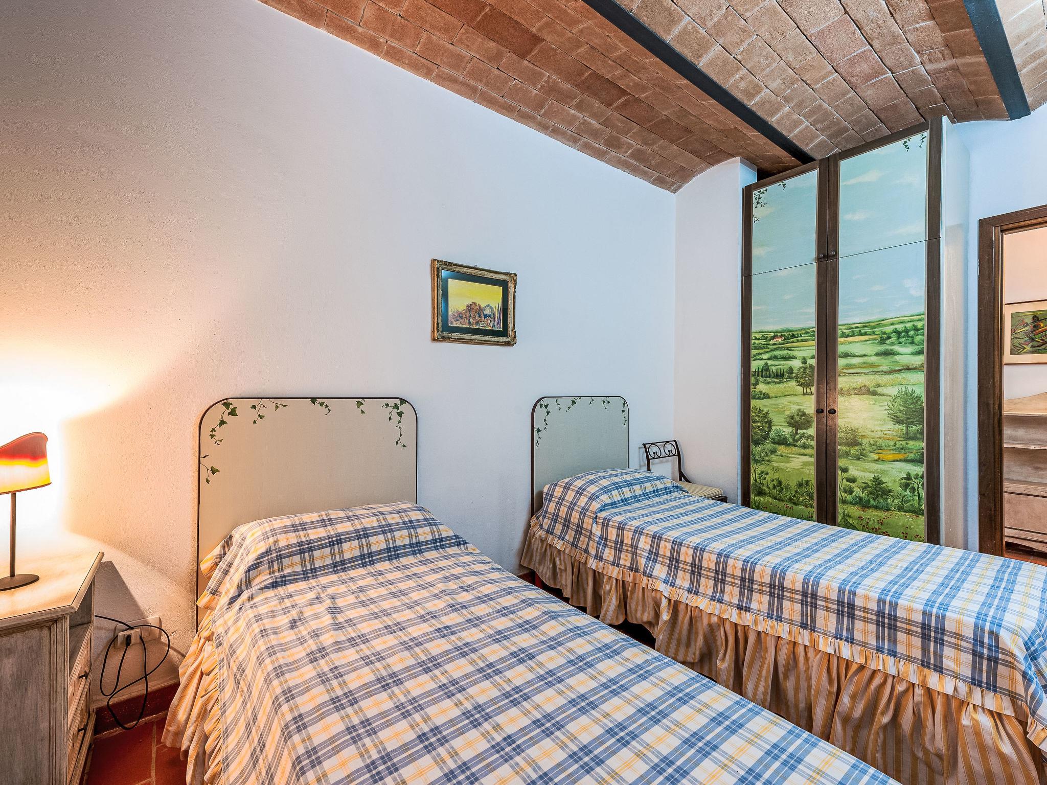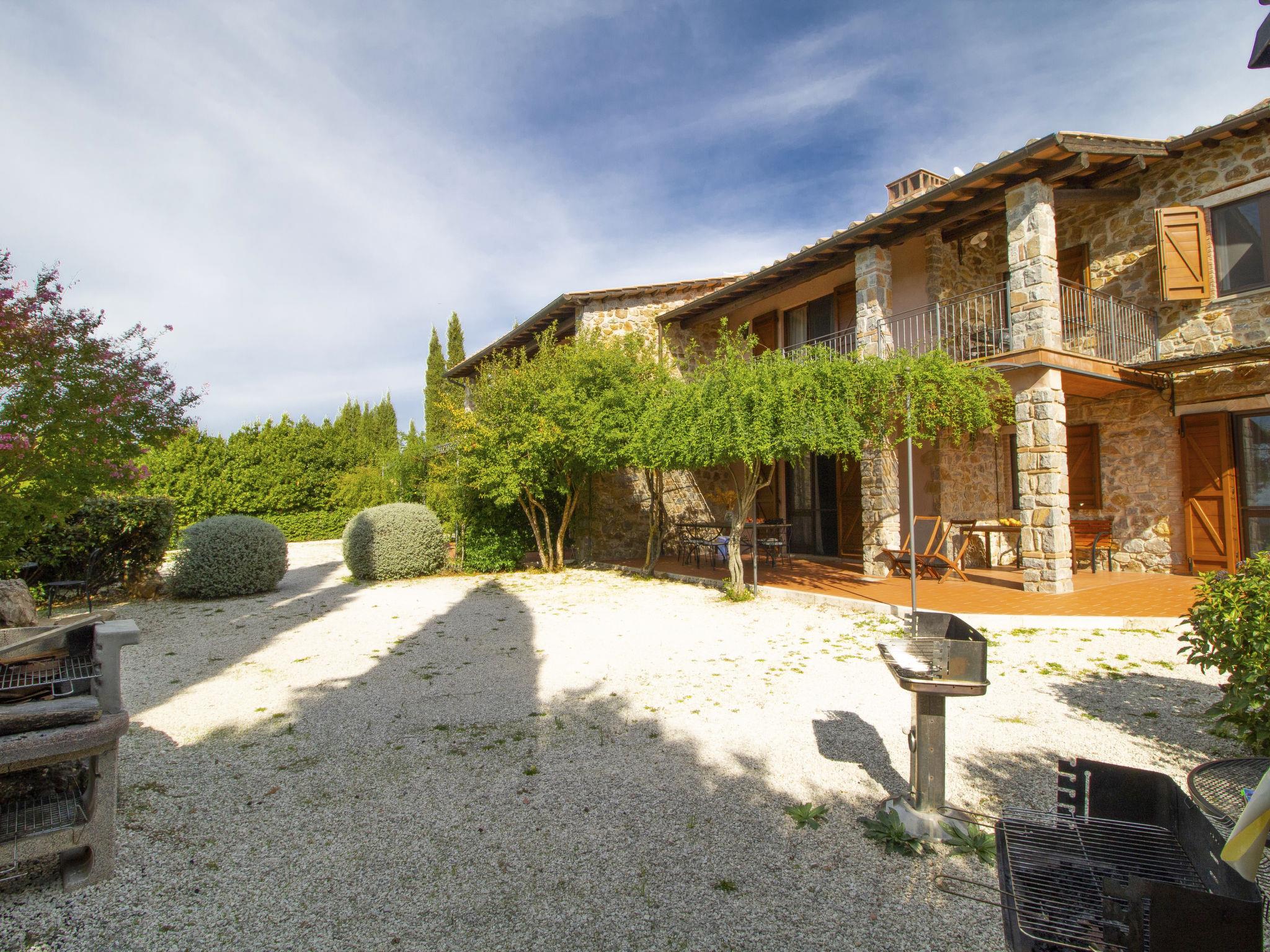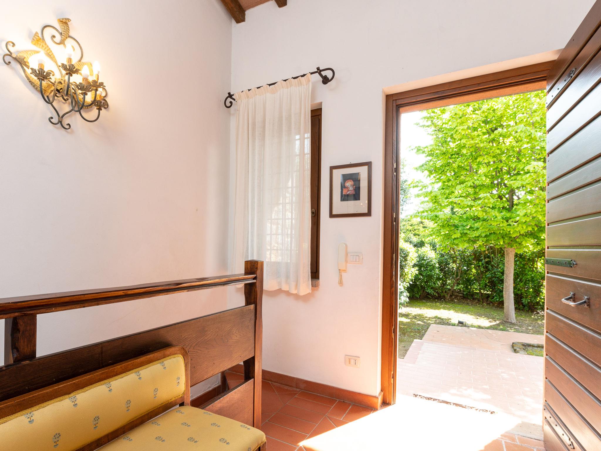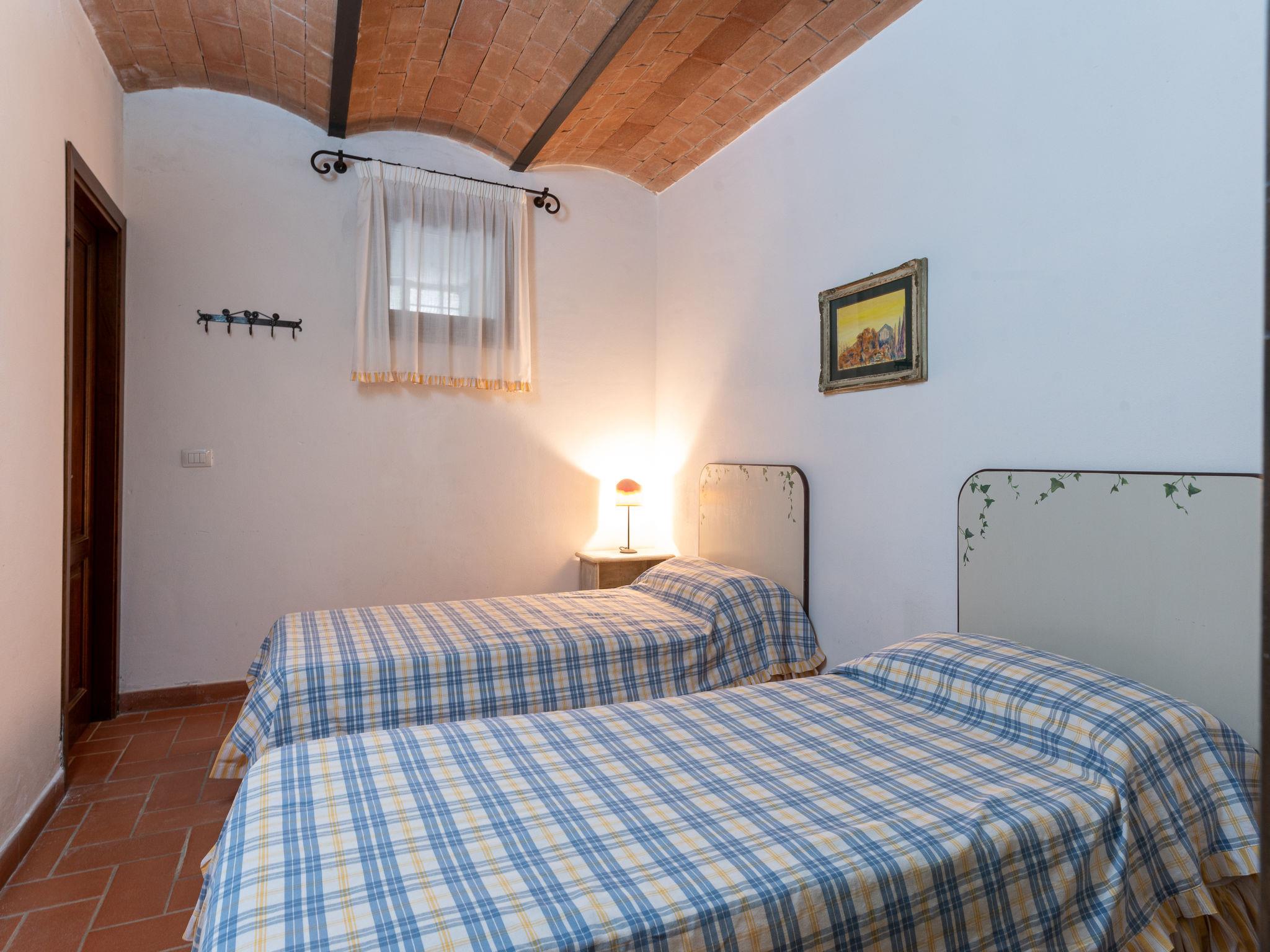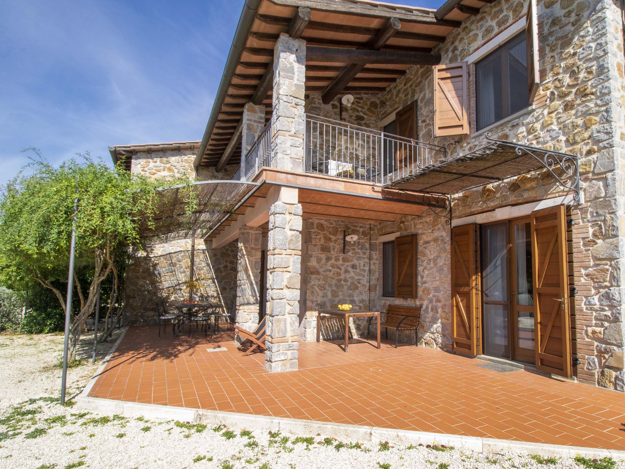 "La Gattaiola Piccola", 8-room house 240 m2 on 2 levels. Spacious, rustic and cosy furnishings: large living/dining room with open-hearth fireplace and TV (flat screen). Exit to the garden, to the loggia, to the swimming pool. 1 room with 1 double bed (160 cm), shower/bidet/WC. 1 room with 2 beds. Exit to the garden, pergola. 1 small room with 2 beds. Open kitchen (dishwasher, 4 gas rings, toaster, kettle, microwave, electric coffee machine). Shower/bidet/WC. Upper floor: living/dining room with open-hearth fireplace and kitchen corner. Exit to the terrace. 2 rooms, each room with 1 double bed (160 cm), fan. 1 room with 2 beds and fan. Open kitchen (oven, dishwasher, 4 gas rings, microwave). Bath/bidet/WC, shower/bidet/WC, hydro massage bath. Gas heating. Heating available only from 15.10. to 15.04. Large terrace roofed, patio. Terrace furniture, barbecue, deck chairs. Marvellous panoramic view of the sea, the valley and the countryside. Facilities: washing machine, iron, mosquito net, baby cot for up to 2 year olds, hair dryer. Internet (WiFi, free). Please note: non-smokers only. Maximum 2 small pets/ dogs allowed. Private entrance. IT053014C2FQABCUJF