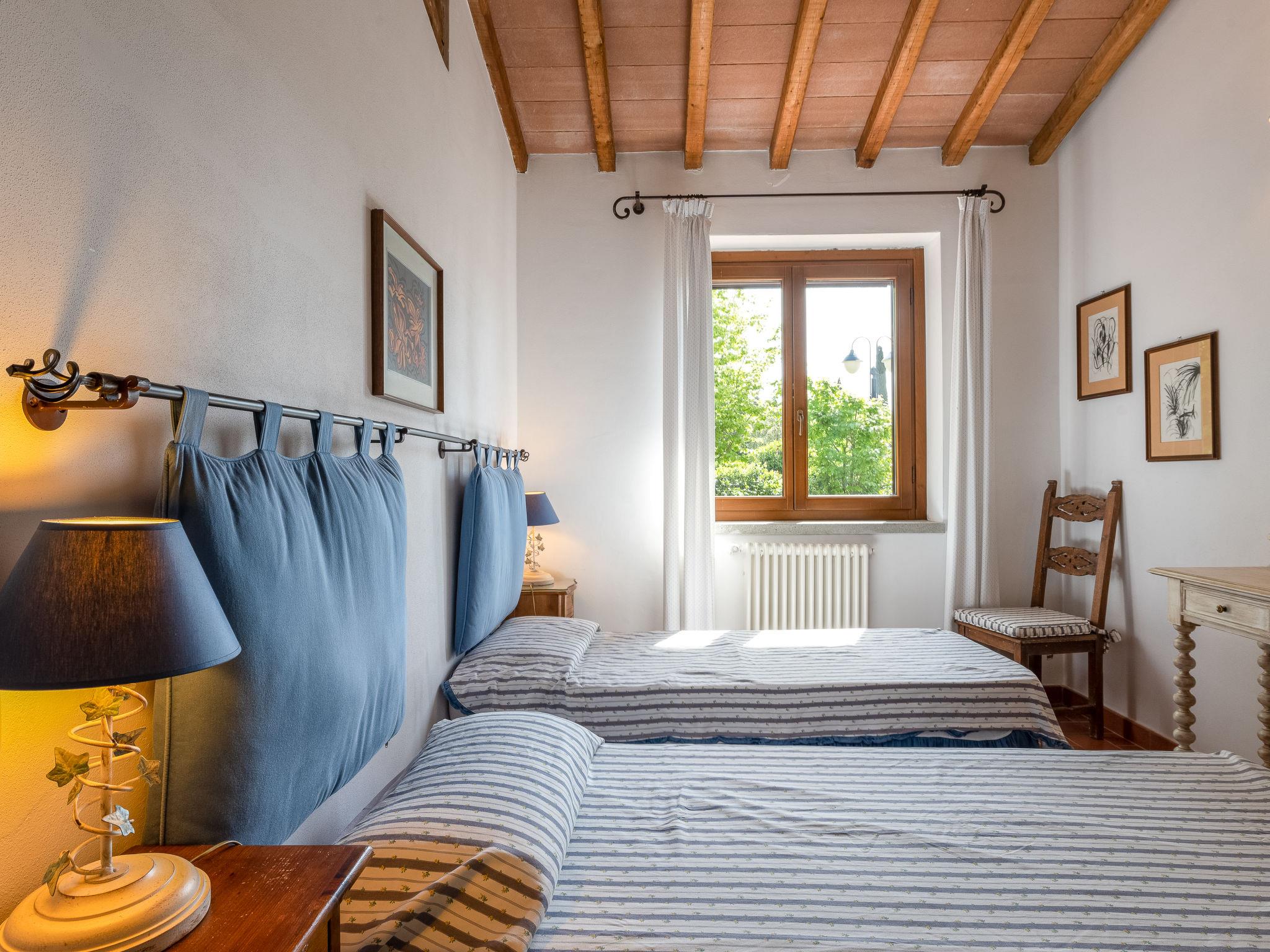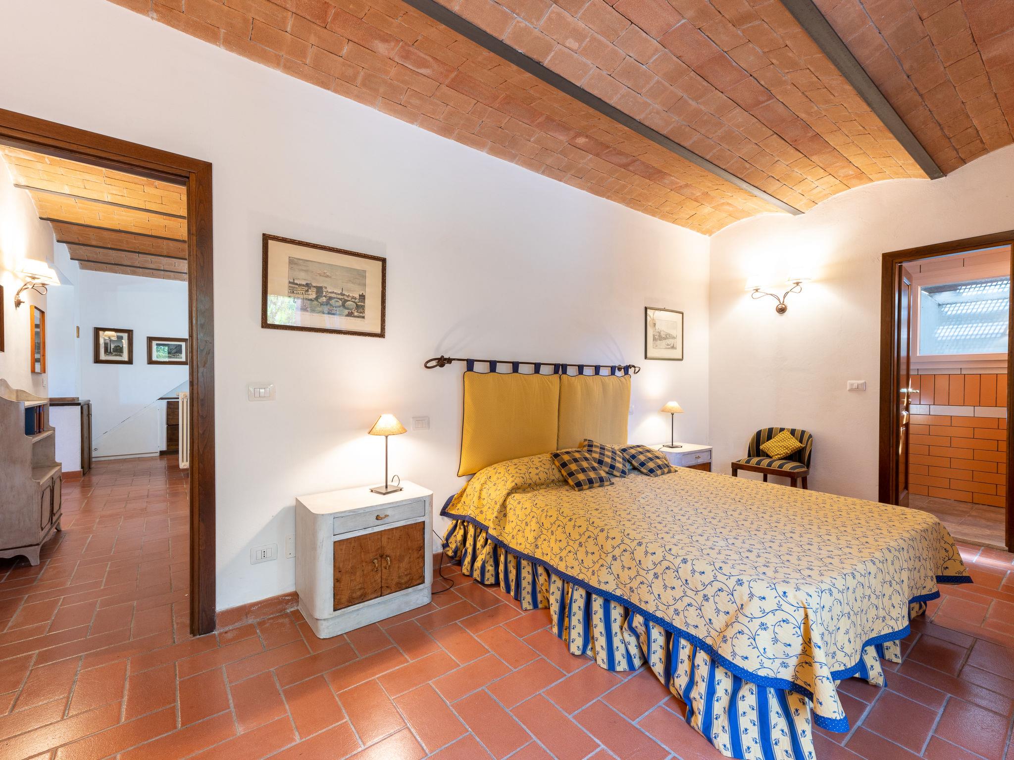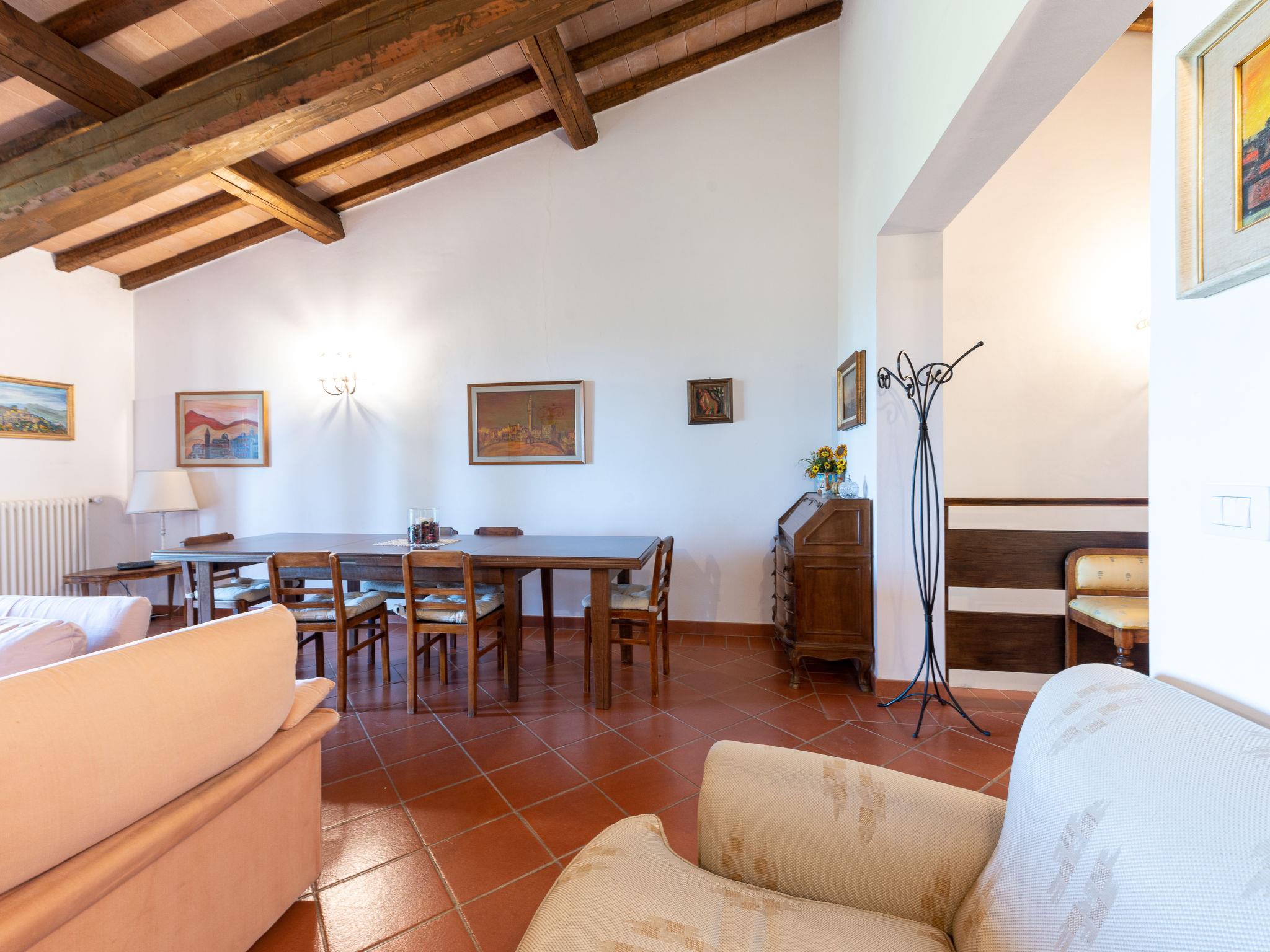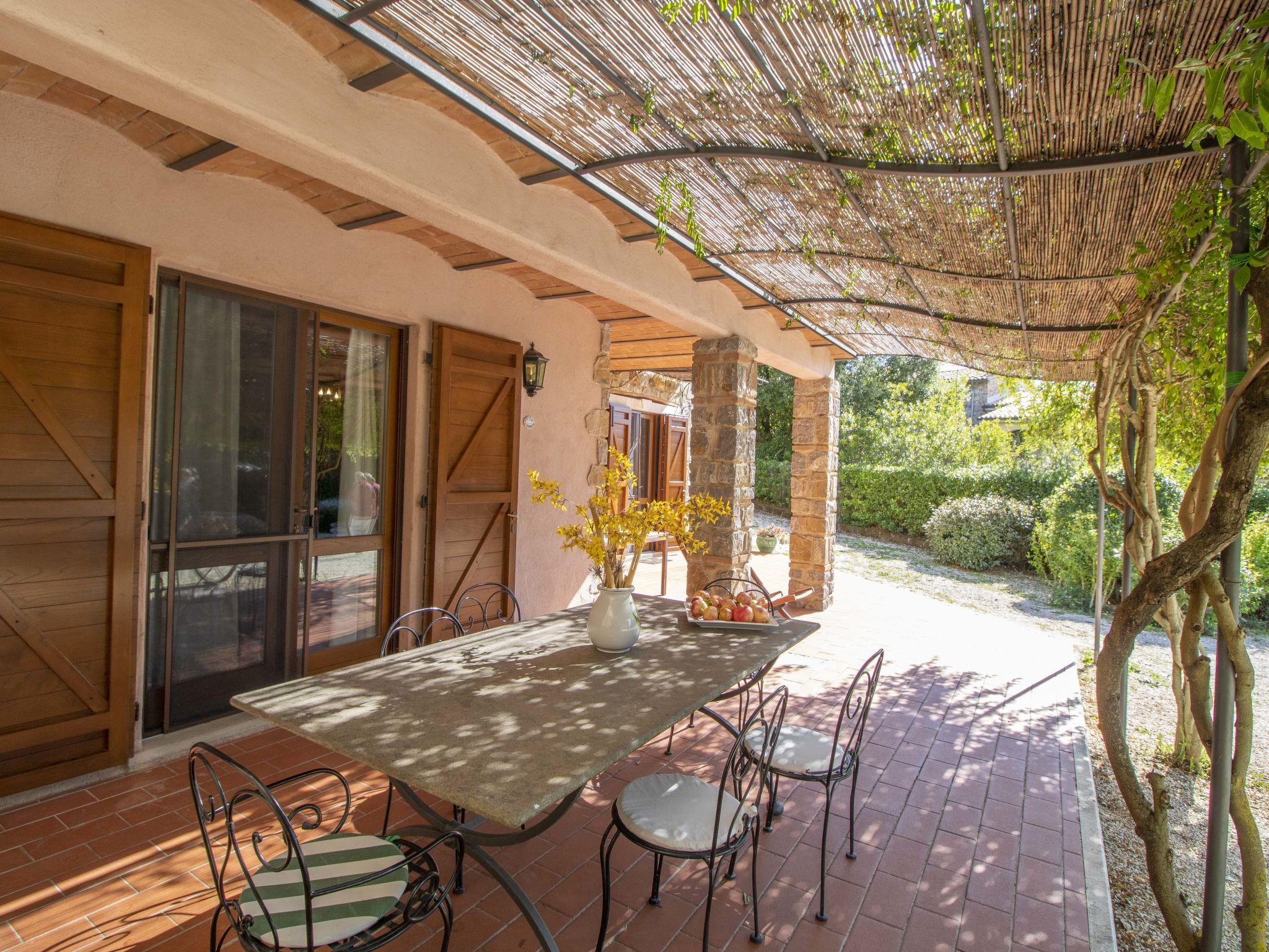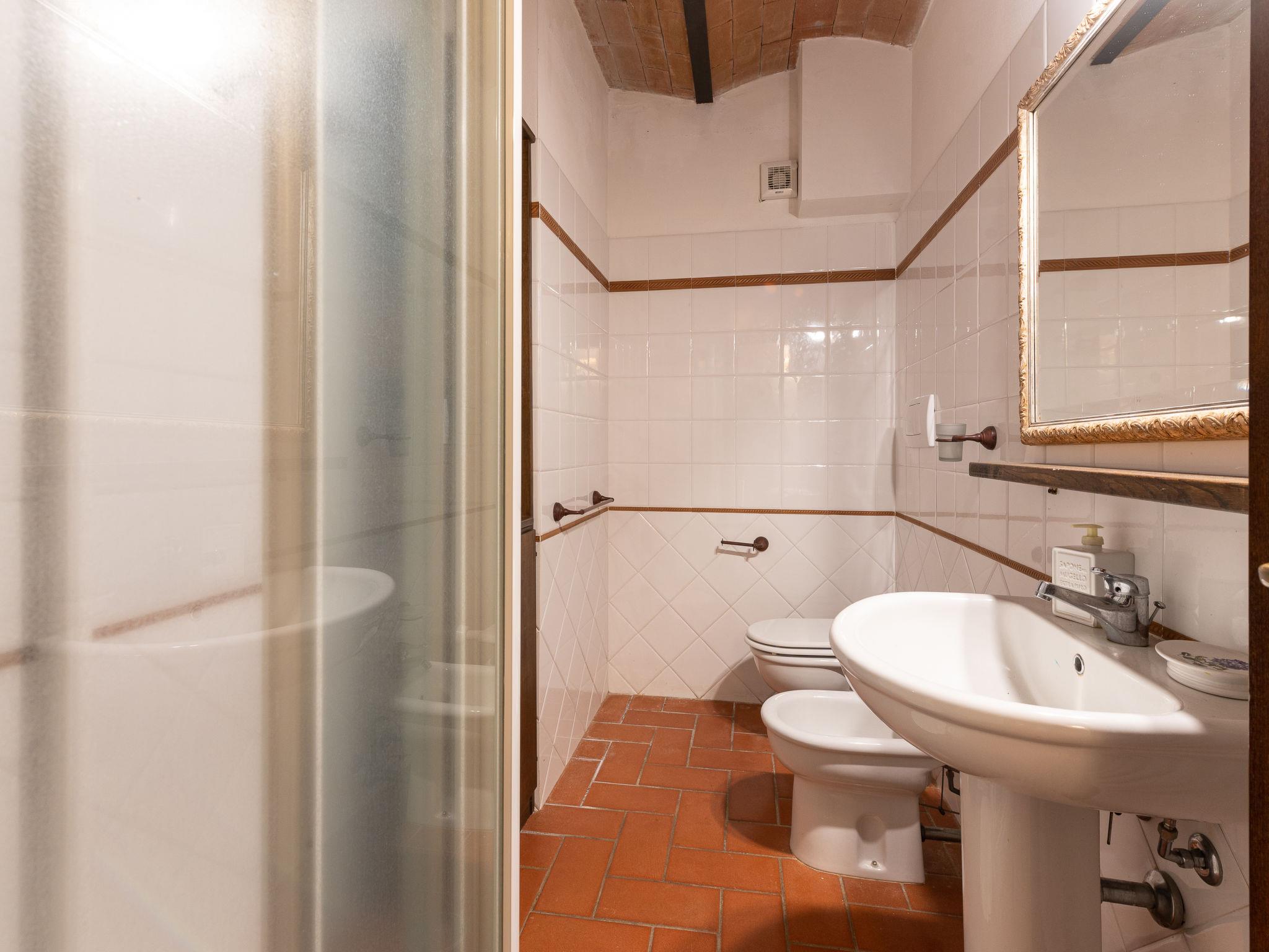 "La Gattaiola Piccola", 8-room house 240 m2 on 2 levels. Spacious, rustic and cosy furnishings: large living/dining room with open-hearth fireplace and TV (flat screen). Exit to the garden, to the loggia, to the swimming pool. 1 room with 1 double bed (160 cm), shower/bidet/WC. 1 room with 2 beds. Exit to the garden, pergola. 1 small room with 2 beds. Open kitchen (dishwasher, 4 gas rings, toaster, kettle, microwave, electric coffee machine). Shower/bidet/WC. Upper floor: living/dining room with open-hearth fireplace and kitchen corner. Exit to the terrace. 2 rooms, each room with 1 double bed (160 cm), fan. 1 room with 2 beds and fan. Open kitchen (oven, dishwasher, 4 gas rings, microwave). Bath/bidet/WC, shower/bidet/WC, hydro massage bath. Gas heating. Heating available only from 15.10. to 15.04. Large terrace roofed, patio. Terrace furniture, barbecue, deck chairs. Marvellous panoramic view of the sea, the valley and the countryside. Facilities: washing machine, iron, mosquito net, baby cot for up to 2 year olds, hair dryer. Internet (WiFi, free). Please note: non-smokers only. Maximum 2 small pets/ dogs allowed. Private entrance. IT053014C2FQABCUJF