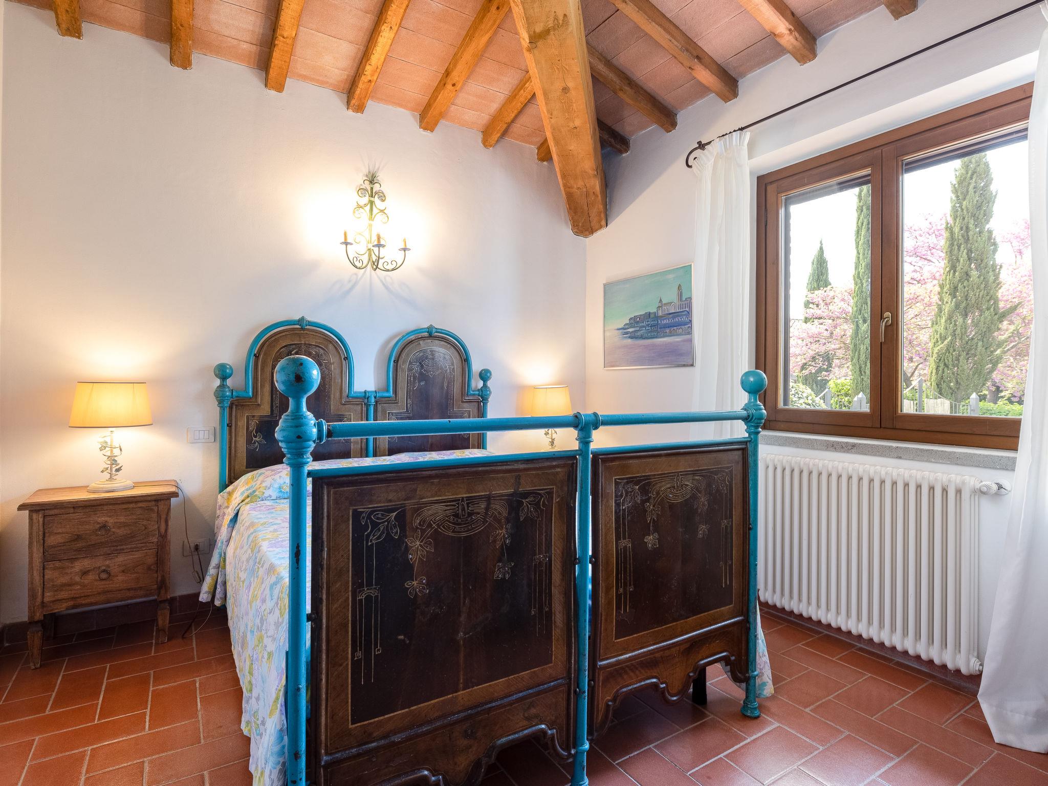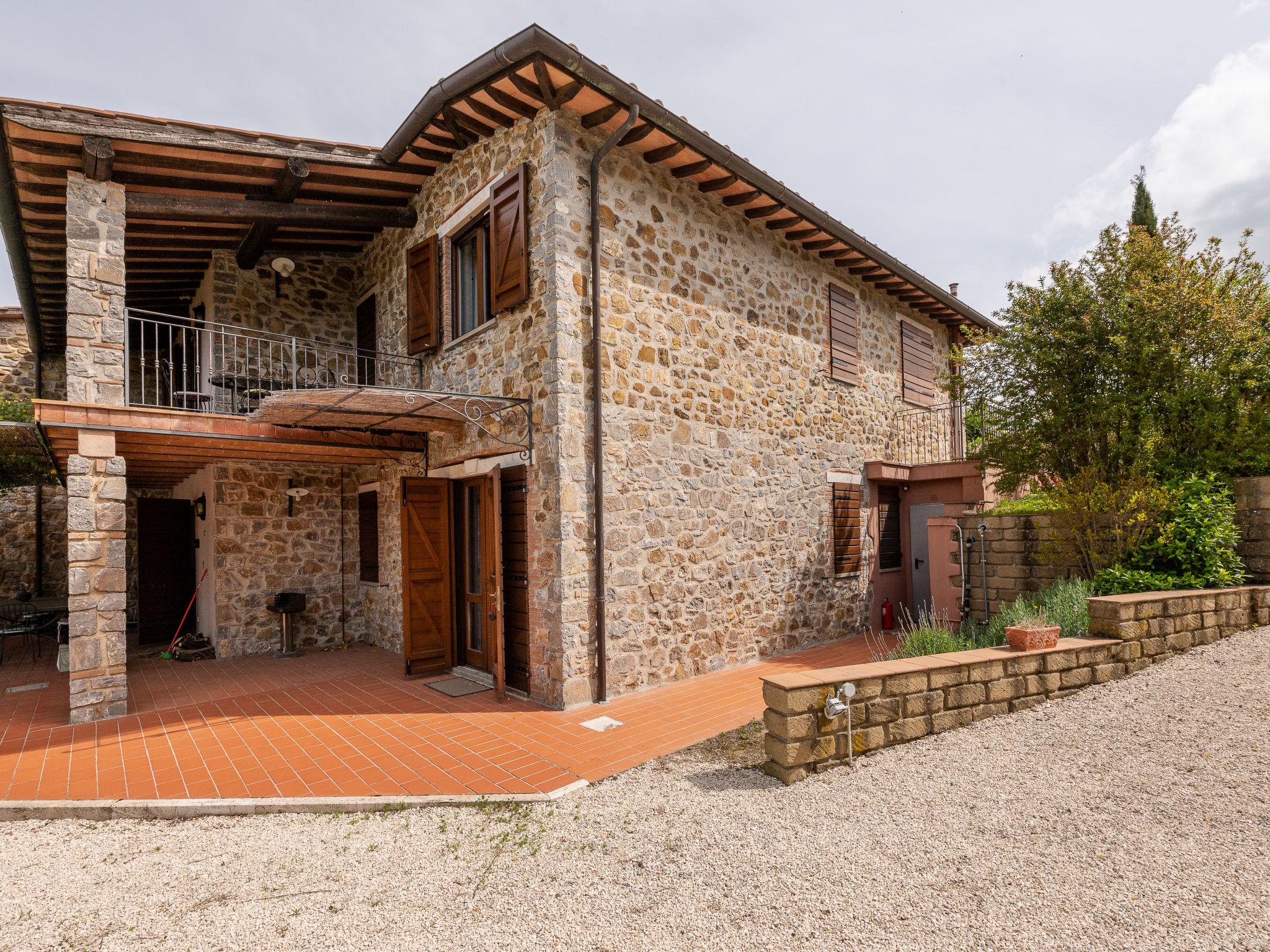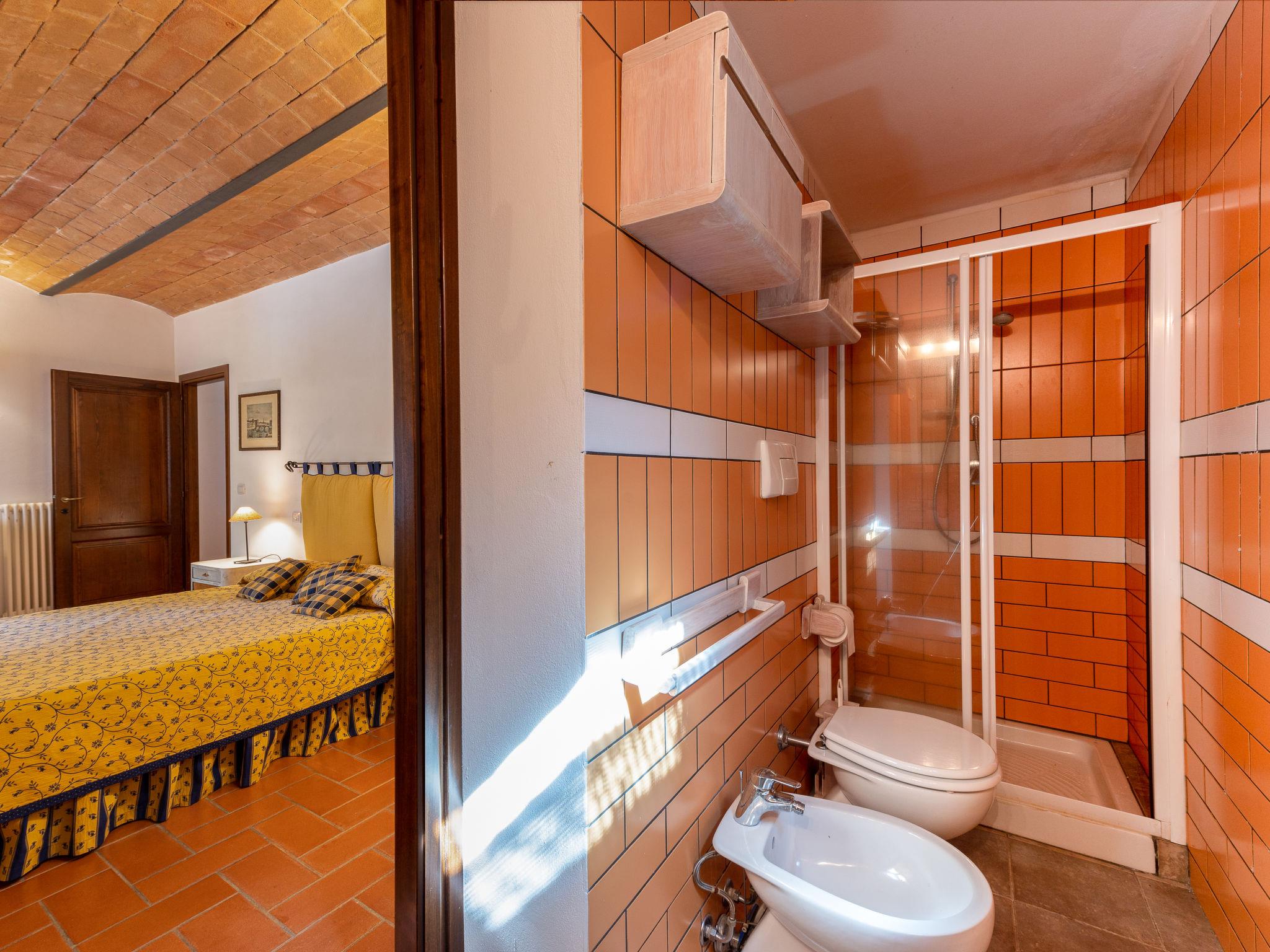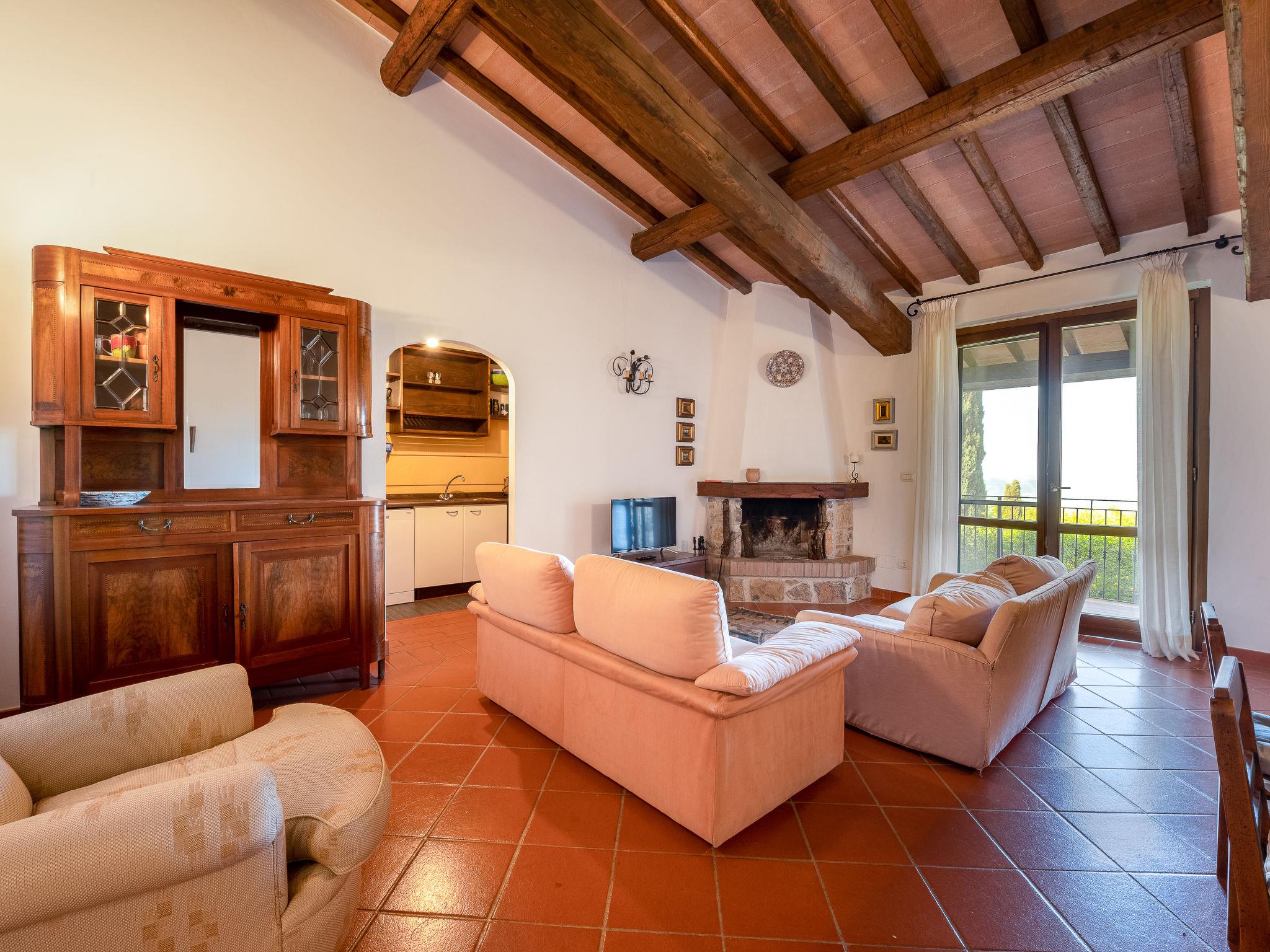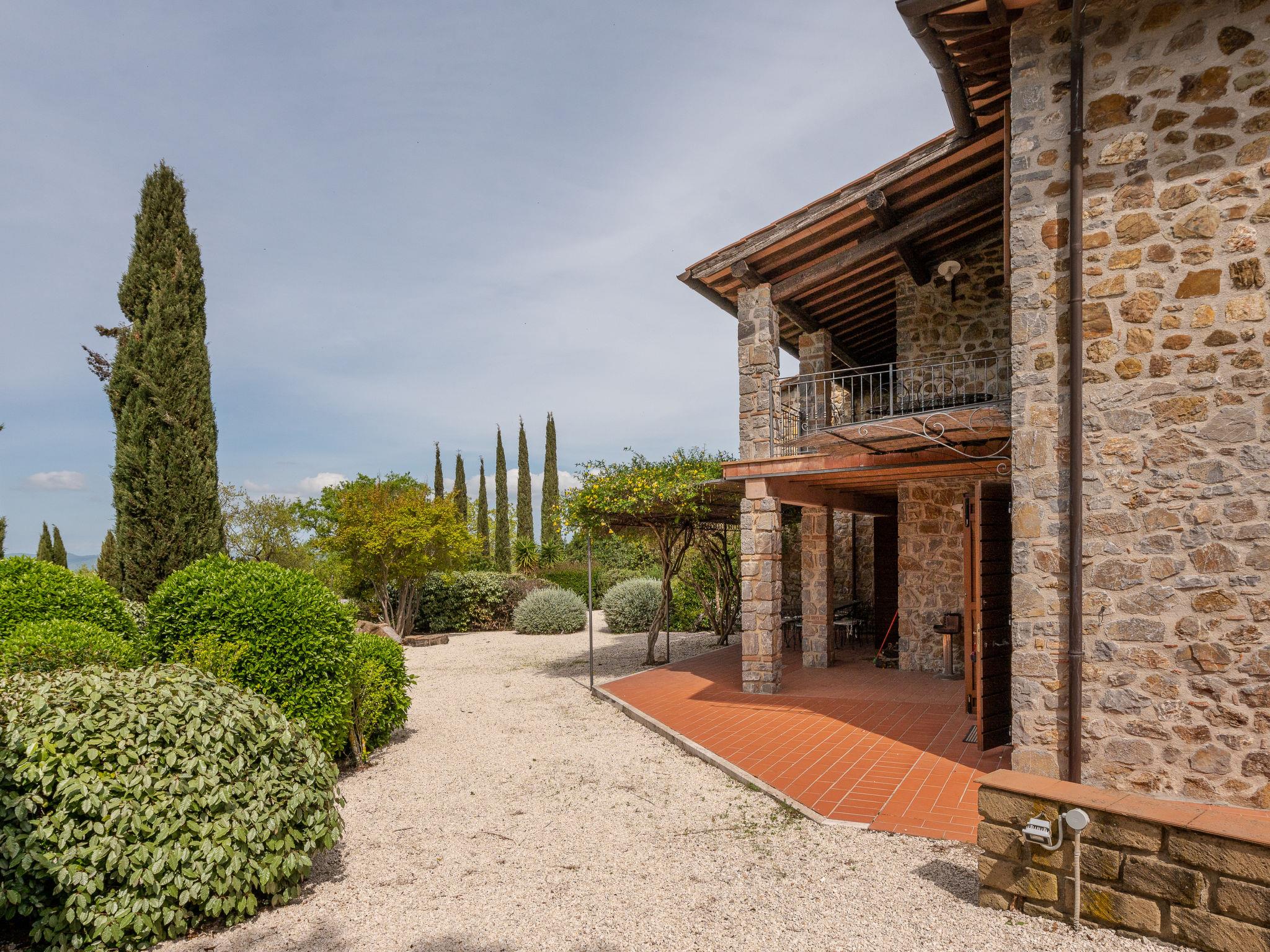 "La Gattaiola Piccola", 8-room house 240 m2 on 2 levels. Spacious, rustic and cosy furnishings: large living/dining room with open-hearth fireplace and TV (flat screen). Exit to the garden, to the loggia, to the swimming pool. 1 room with 1 double bed (160 cm), shower/bidet/WC. 1 room with 2 beds. Exit to the garden, pergola. 1 small room with 2 beds. Open kitchen (dishwasher, 4 gas rings, toaster, kettle, microwave, electric coffee machine). Shower/bidet/WC. Upper floor: living/dining room with open-hearth fireplace and kitchen corner. Exit to the terrace. 2 rooms, each room with 1 double bed (160 cm), fan. 1 room with 2 beds and fan. Open kitchen (oven, dishwasher, 4 gas rings, microwave). Bath/bidet/WC, shower/bidet/WC, hydro massage bath. Gas heating. Heating available only from 15.10. to 15.04. Large terrace roofed, patio. Terrace furniture, barbecue, deck chairs. Marvellous panoramic view of the sea, the valley and the countryside. Facilities: washing machine, iron, mosquito net, baby cot for up to 2 year olds, hair dryer. Internet (WiFi, free). Please note: non-smokers only. Maximum 2 small pets/ dogs allowed. Private entrance. IT053014C2FQABCUJF
